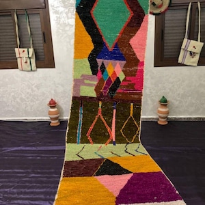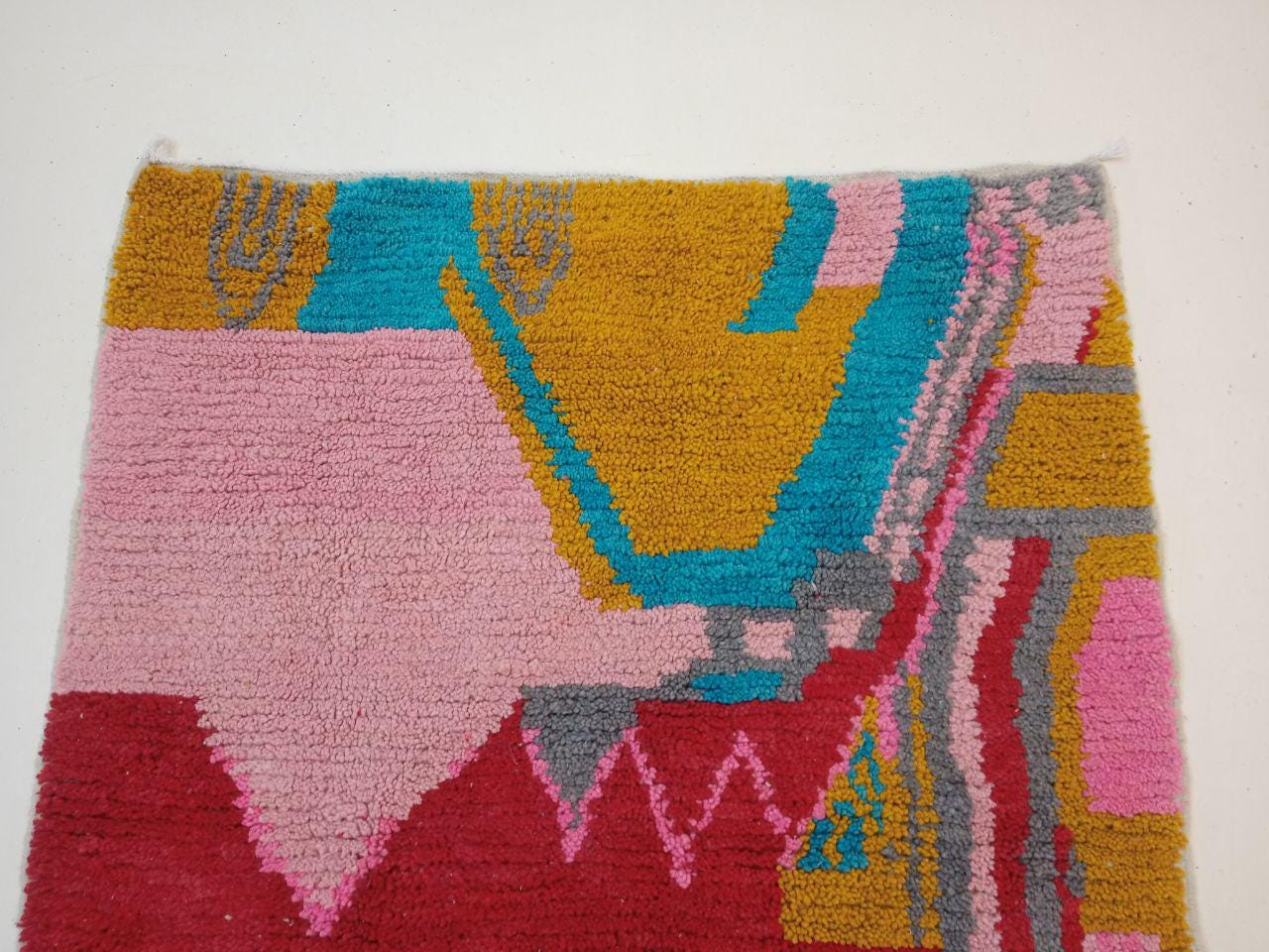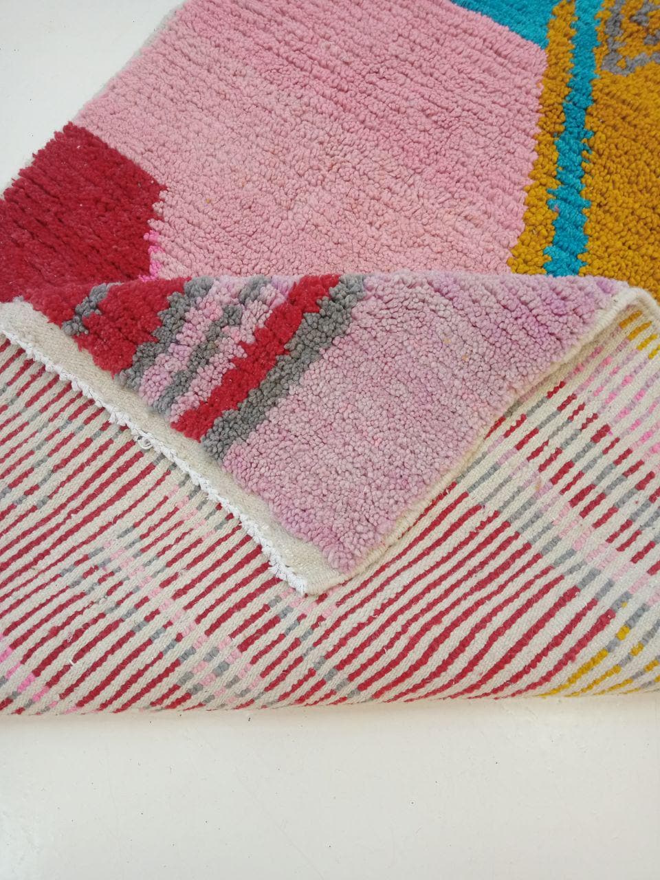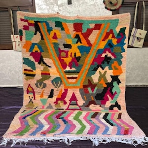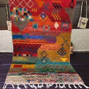 A Moroccan Berber Colorful rug is a traditional handwoven floor covering that originates from the indigenous Berber people of Morocco. These rugs are known for their intricate patterns and bold, geometric designs, which are created using a variety of natural dyes and High-quality Wool. Moroccan boujad rugs are versatile and can be used to add a touch of bohemian chic to any room, from a living room or bedroom to a home office or entryway. They are durable and easy to maintain, making them a practical choice for high-traffic areas. Whether you're looking to add a pop of color to your space or create a warm and welcoming atmosphere, a Moroccan Berber rug is a great choice. 📌 Shipping: insured, trackable, Fast, and FREE Worldwide by FedEx or DHL (2 to 5 days delivery). ❖ Cleaning: all rugs are carefully cleaned before shipping. ❖ Colors: Please take a look at the pictures. ❖ Texture: Moroccan / soft / Shag. ❖ Technique: Hand-Knotted ❖ Construction: Handmade ❖ Location: Indoor Use Only ❖ Material: Your order is made entirely by hand from natural wool, which means there will be natural (and beautiful) variations in pattern and color. Wool shrinks. ❖ Pattern: Because the product is handcrafted, the pattern and Colors may vary slightly from one piece to another. ❖ Size: While we try our best to ensure consistent sizing, it is possible for final sizes to vary by a few inches more or less. ❖ Tassels: One side is the Traditional way of making the rugs. 📌Ships tightly rolled in a protective bag. Any slight creasing will disappear within a few days. Shedding loose fibers is normal with new rugs. Shedding will diminish with regular vacuuming. If you have any questions or queries, please feel free to contact me via messages.