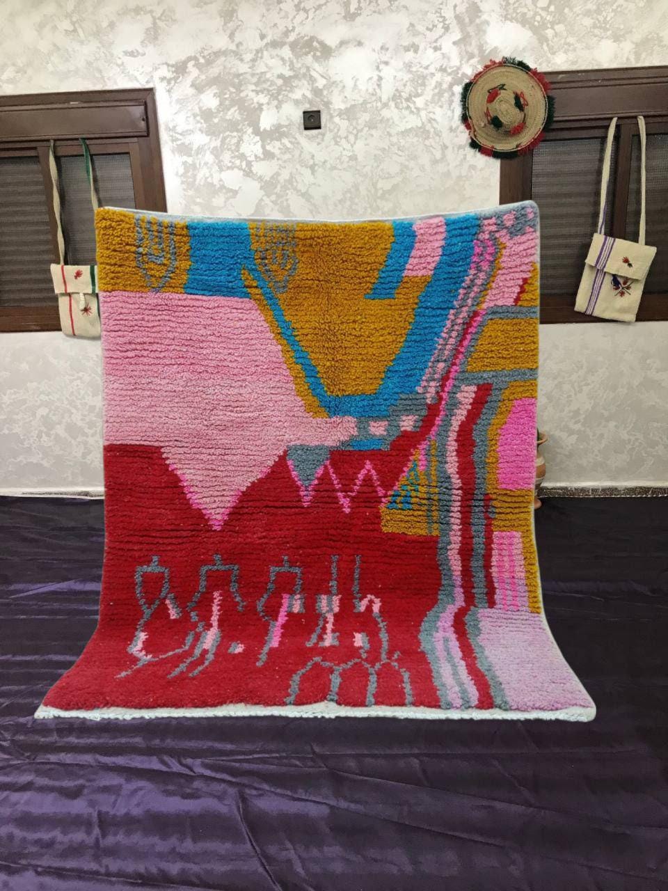 Handmade Red & Pink Moroccan Berber Wool Rug - Amazigh Design,orange and pink rug,colored rug,200x300 cm Area Rug
