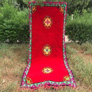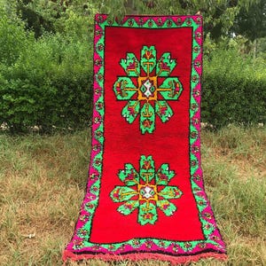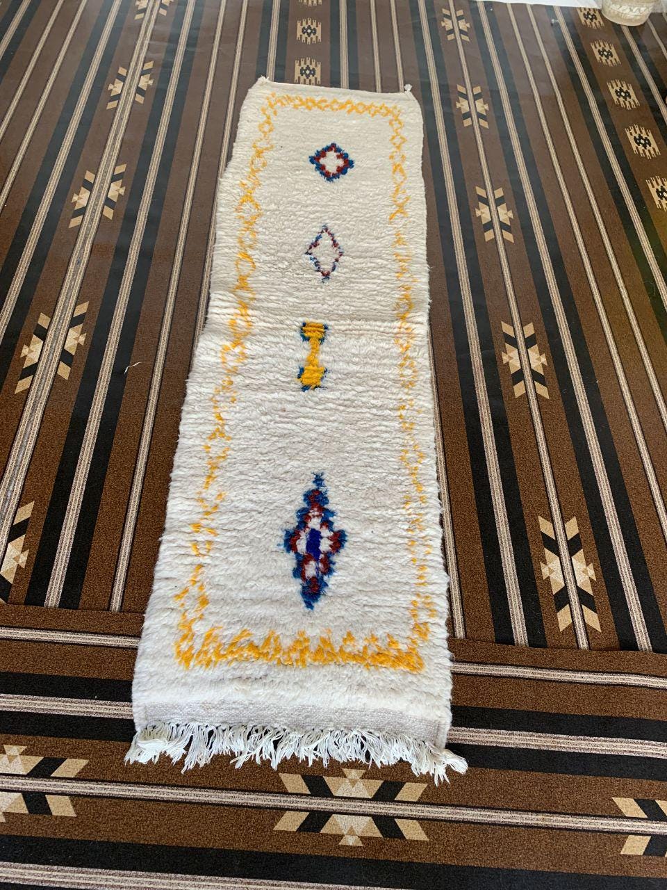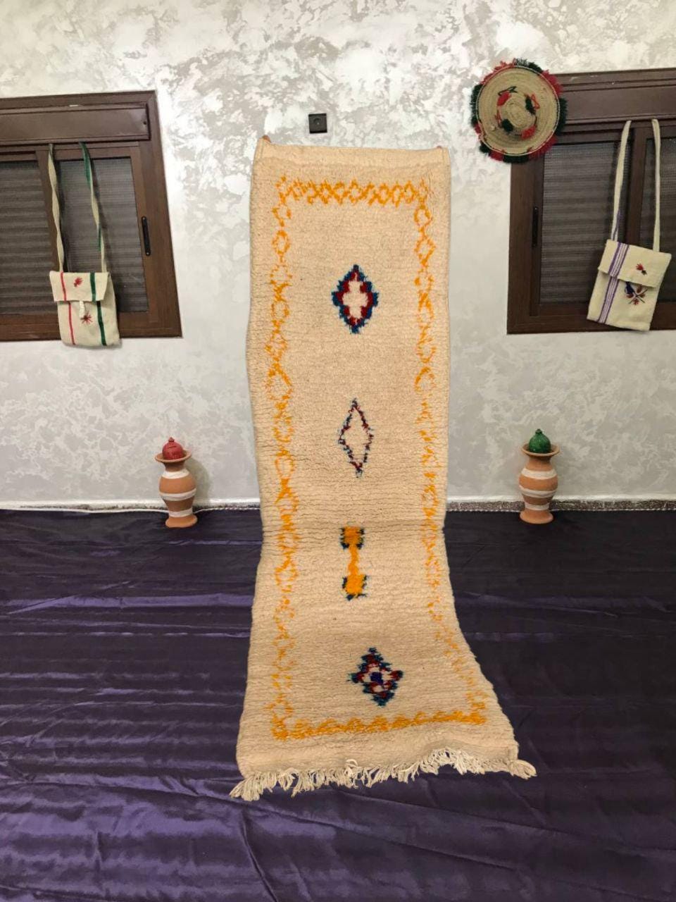 A Moroccan Berber Colorful rug is a traditional handwoven floor covering that originates from the indigenous Berber people of Morocco. These rugs are known for their intricate patterns and bold, geometric designs, which are created using a variety of natural dyes and High-quality Wool. Moroccan boujad rugs are versatile and can be used to add a touch of bohemian chic to any room, from a living room or bedroom to a home office or entryway. They are durable and easy to maintain, making them a practical choice for high-traffic areas. Whether you're looking to add a pop of color to your space or create a warm and welcoming atmosphere, a Moroccan Berber rug is a great choice. 📌 Shipping: insured, trackable, Fast, and FREE Worldwide by FedEx or DHL (2 to 5 days delivery). ❖ Cleaning: all rugs are carefully cleaned before shipping. ❖ Colors: Please take a look at the pictures. ❖ Texture: Moroccan / soft / Shag. ❖ Technique: Hand-Knotted ❖ Construction: Handmade ❖ Location: Indoor Use Only ❖ Material: Your order is made entirely by hand from natural wool, which means there will be natural (and beautiful) variations in pattern and color. Wool shrinks. ❖ Pattern: Because the product is handcrafted, the pattern and Colors may vary slightly from one piece to another. ❖ Size: While we try our best to ensure consistent sizing, it is possible for final sizes to vary by a few inches more or less. ❖ Tassels: One side is the Traditional way of making the rugs. 📌Ships tightly rolled in a protective bag. Any slight creasing will disappear within a few days. Shedding loose fibers is normal with new rugs. Shedding will diminish with regular vacuuming. If you have any questions or queries, please feel free to contact me via messag morocco rug berber yellow colour,amazing tapis moroccon rug,multicolored rug runner