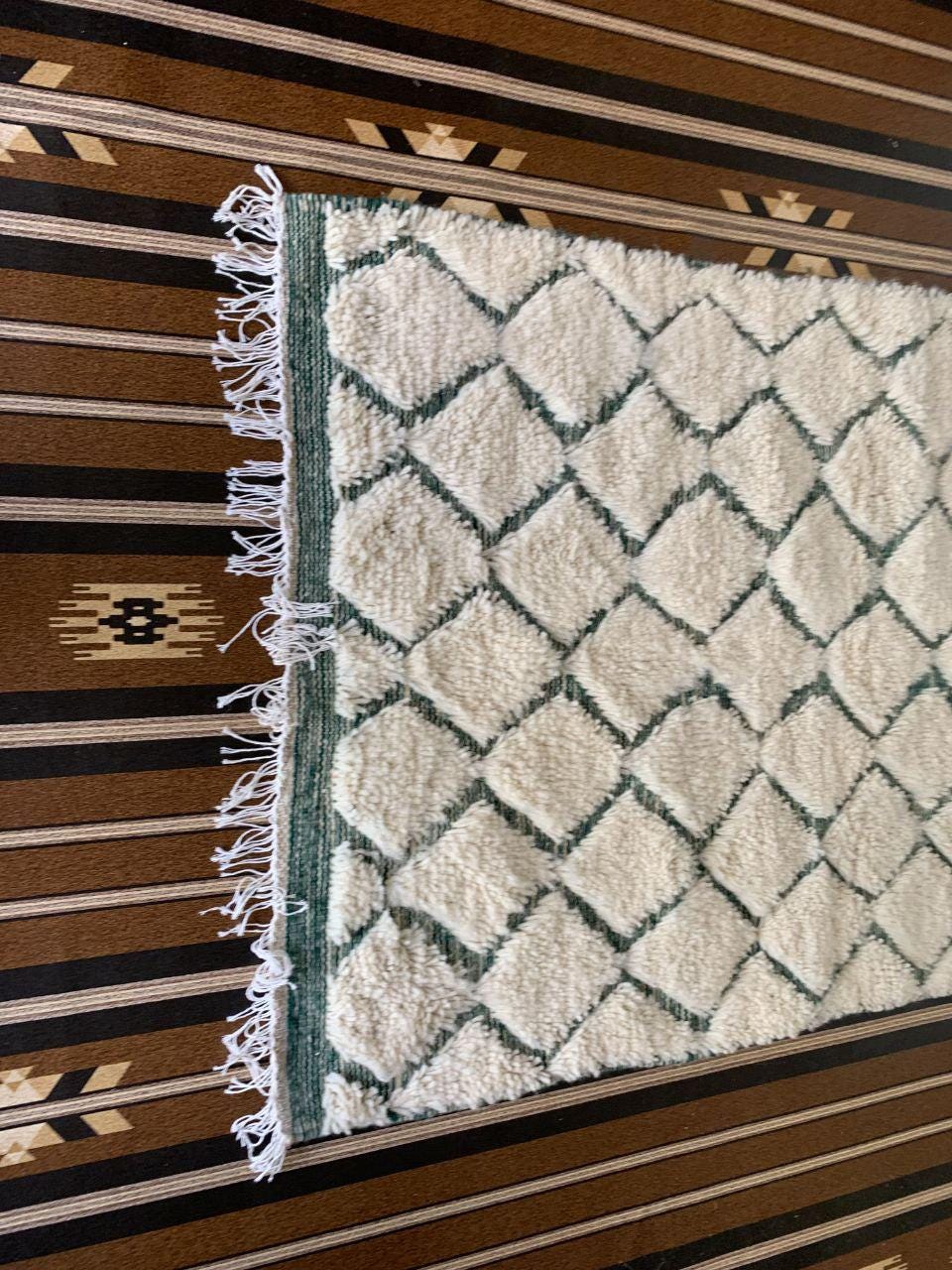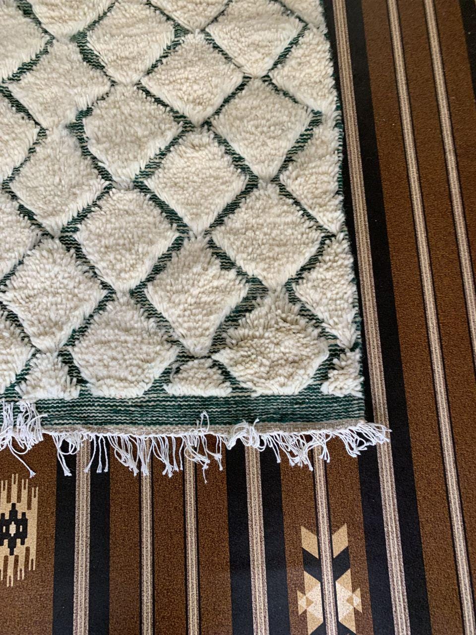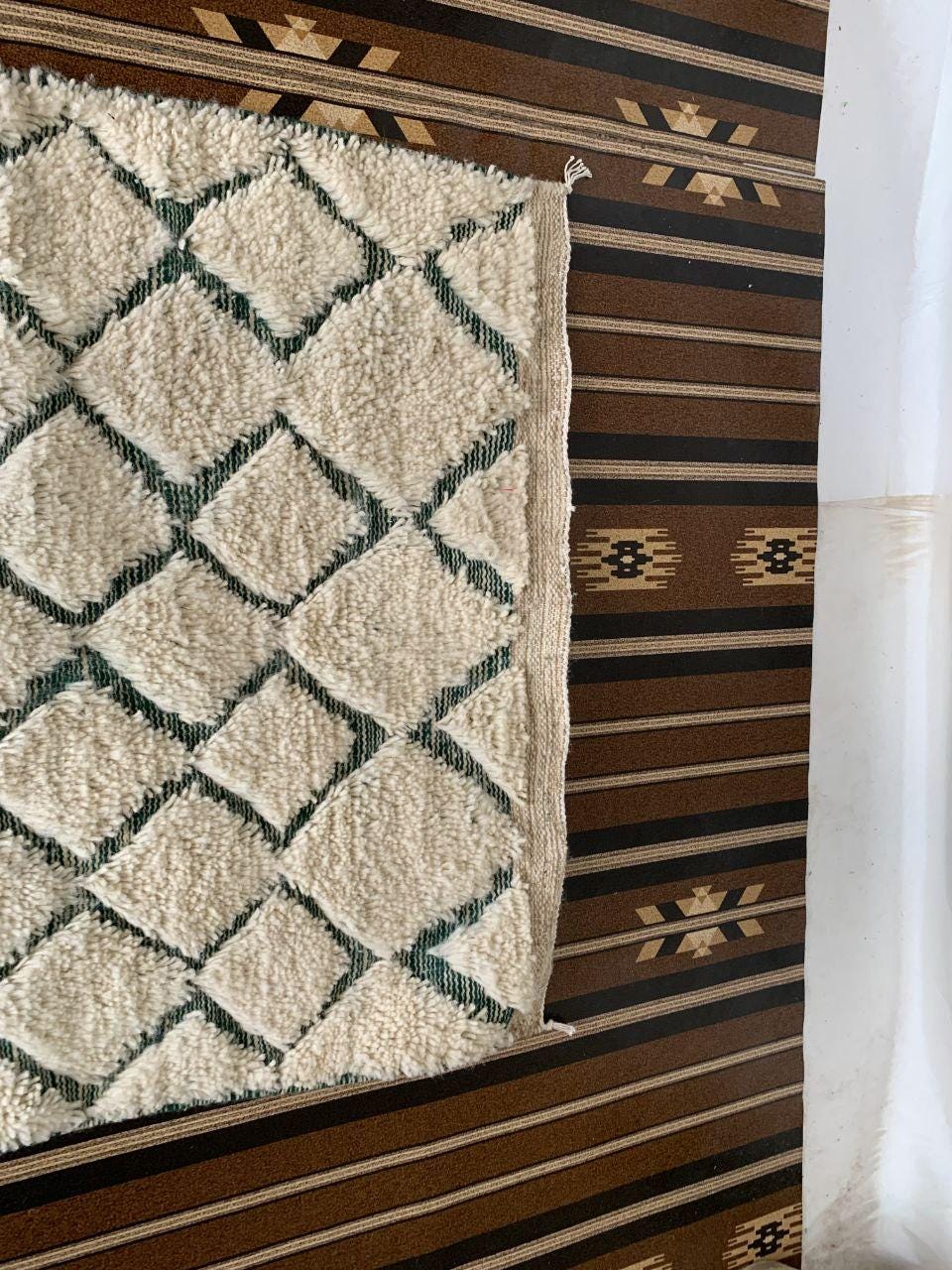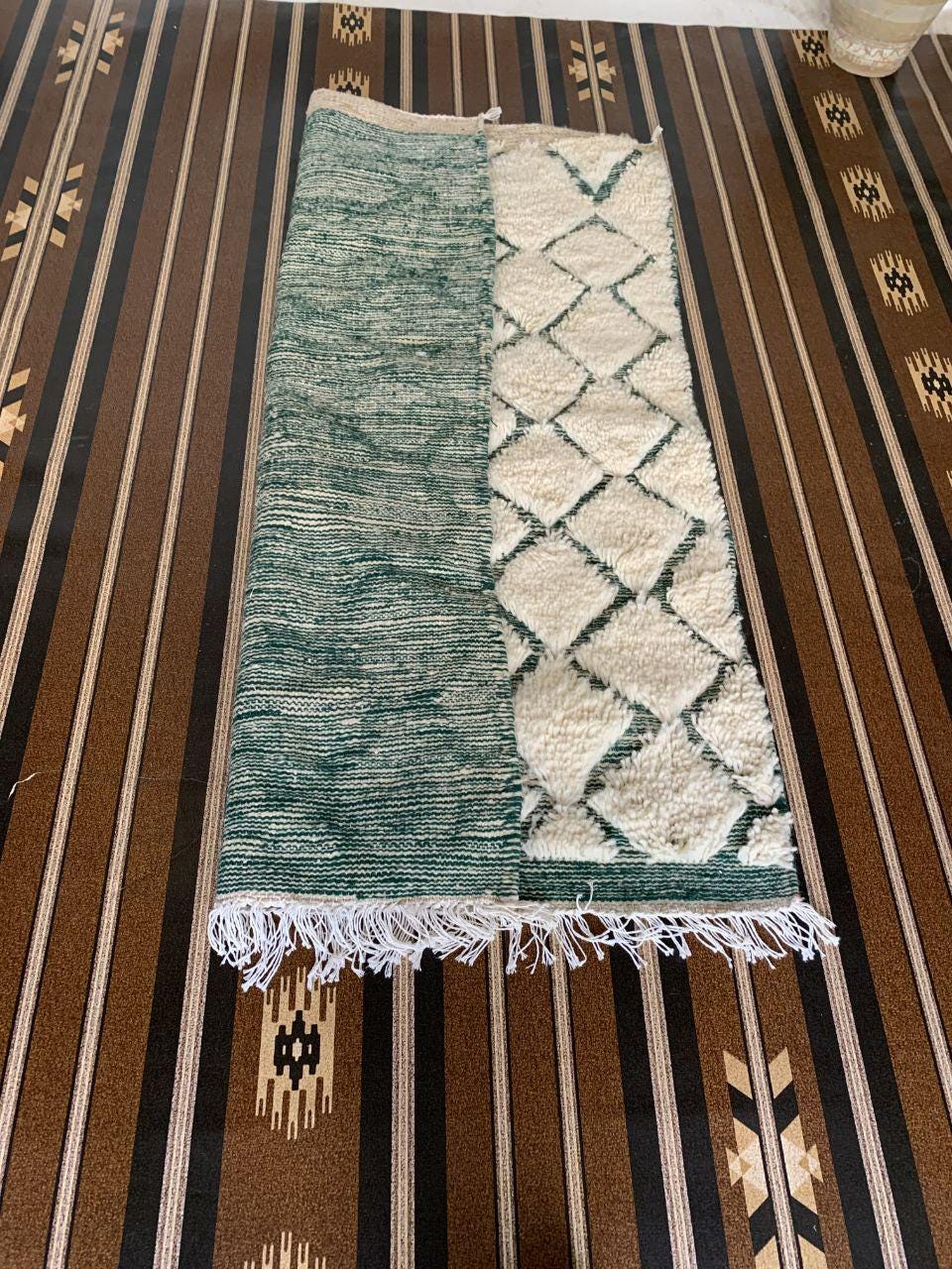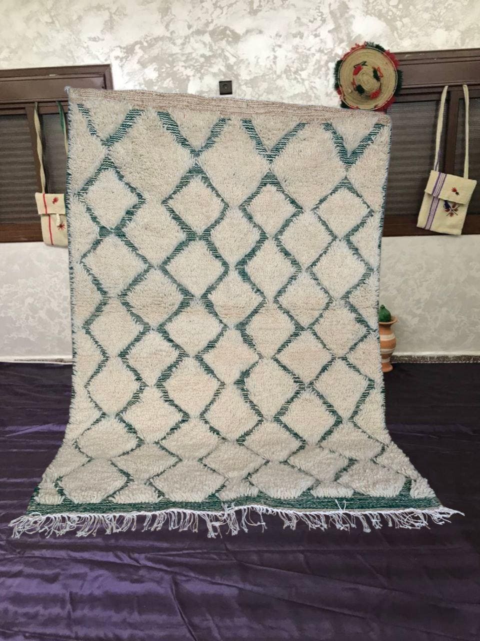 A Moroccan Berber Colorful rug is a traditional handwoven floor covering that originates from the indigenous Berber people of Morocco. These rugs are known for their intricate patterns and bold, geometric designs, which are created using a variety of natural dyes and High-quality Wool. Moroccan boujad rugs are versatile and can be used to add a touch of bohemian chic to any room, from a living room or bedroom to a home office or entryway. They are durable and easy to maintain, making them a practical choice for high-traffic areas. Whether you're looking to add a pop of color to your space or create a warm and welcoming atmosphere, a Moroccan Berber rug is a great choice. 📌 Shipping: insured, trackable, Fast, and FREE Worldwide by FedEx or DHL (2 to 5 days delivery). ❖ Cleaning: all rugs are carefully cleaned before shipping. ❖ Colors: Please take a look at the pictures. ❖ Texture: Moroccan / soft / Shag. ❖ Technique: Hand-Knotted ❖ Construction: Handmade ❖ Location: Indoor Use Only ❖ Material: Your order is made entirely by hand from natural wool, which means there will be natural (and beautiful) variations in pattern and color. Wool shrinks. ❖ Pattern: Because the product is handcrafted, the pattern and Colors may vary slightly from one piece to another. ❖ Size: While we try our best to ensure consistent sizing, it is possible for final sizes to vary by a few inches more or less. ❖ Tassels: One side is the Traditional way of making the rugs. 📌Ships tightly rolled in a protective bag. Any slight creasing will disappear within a few days. Shedding loose fibers is normal with new rugs. Shedding will diminish with regular vacuuming. If you have any questions or queries, please feel free to contact me via messages. handmade moroccan rug green and white,moroccan rug berber wool bajaad, white and green