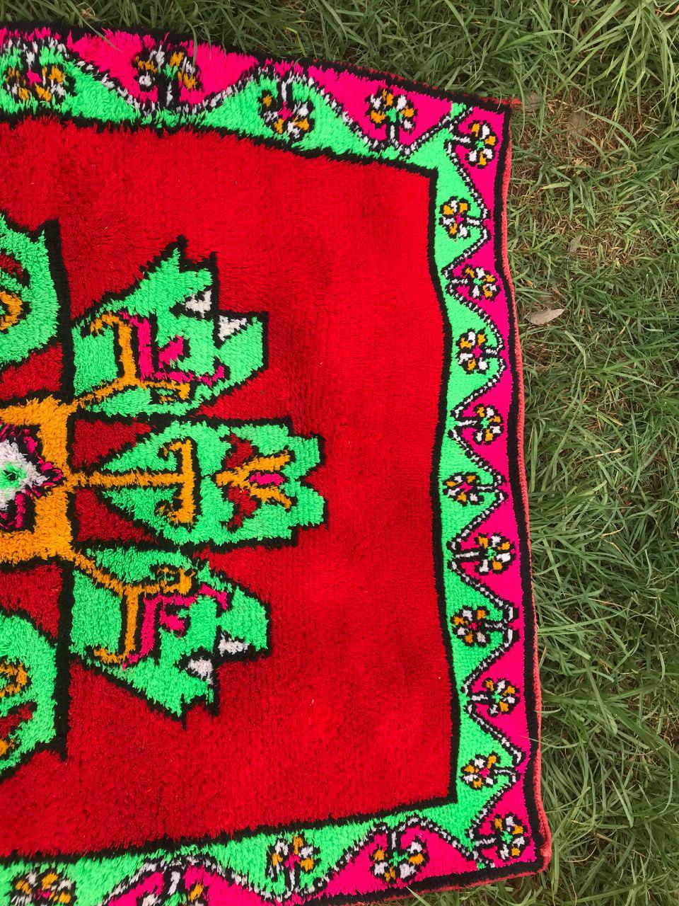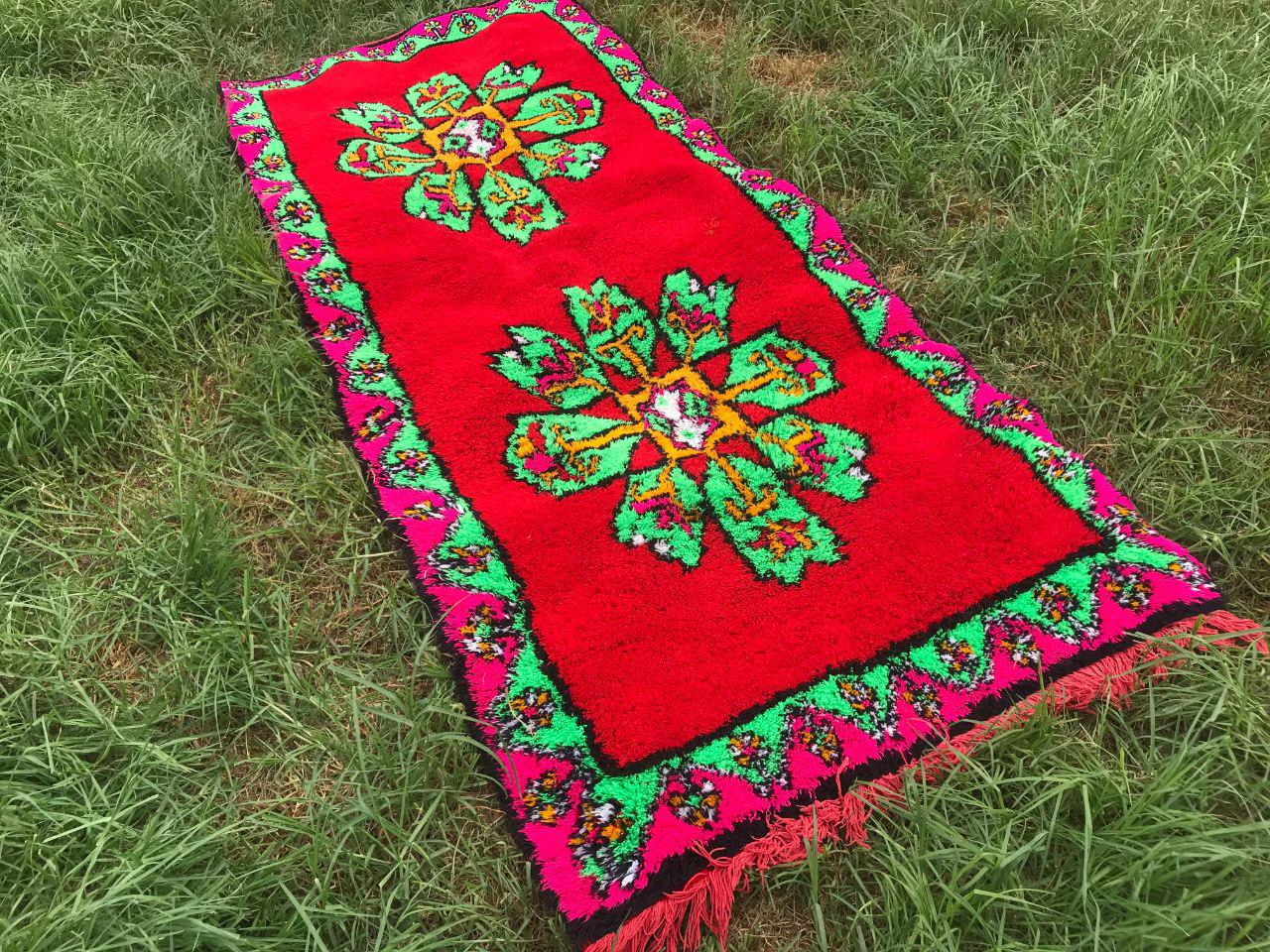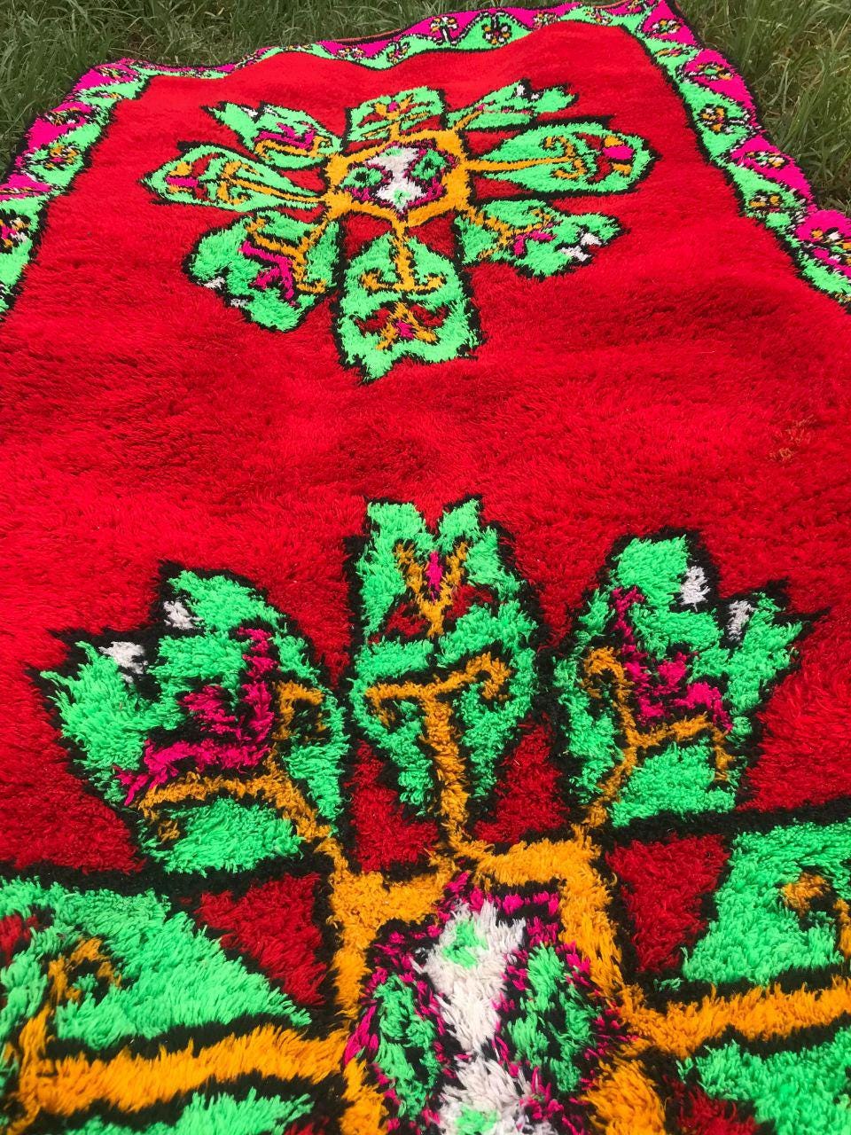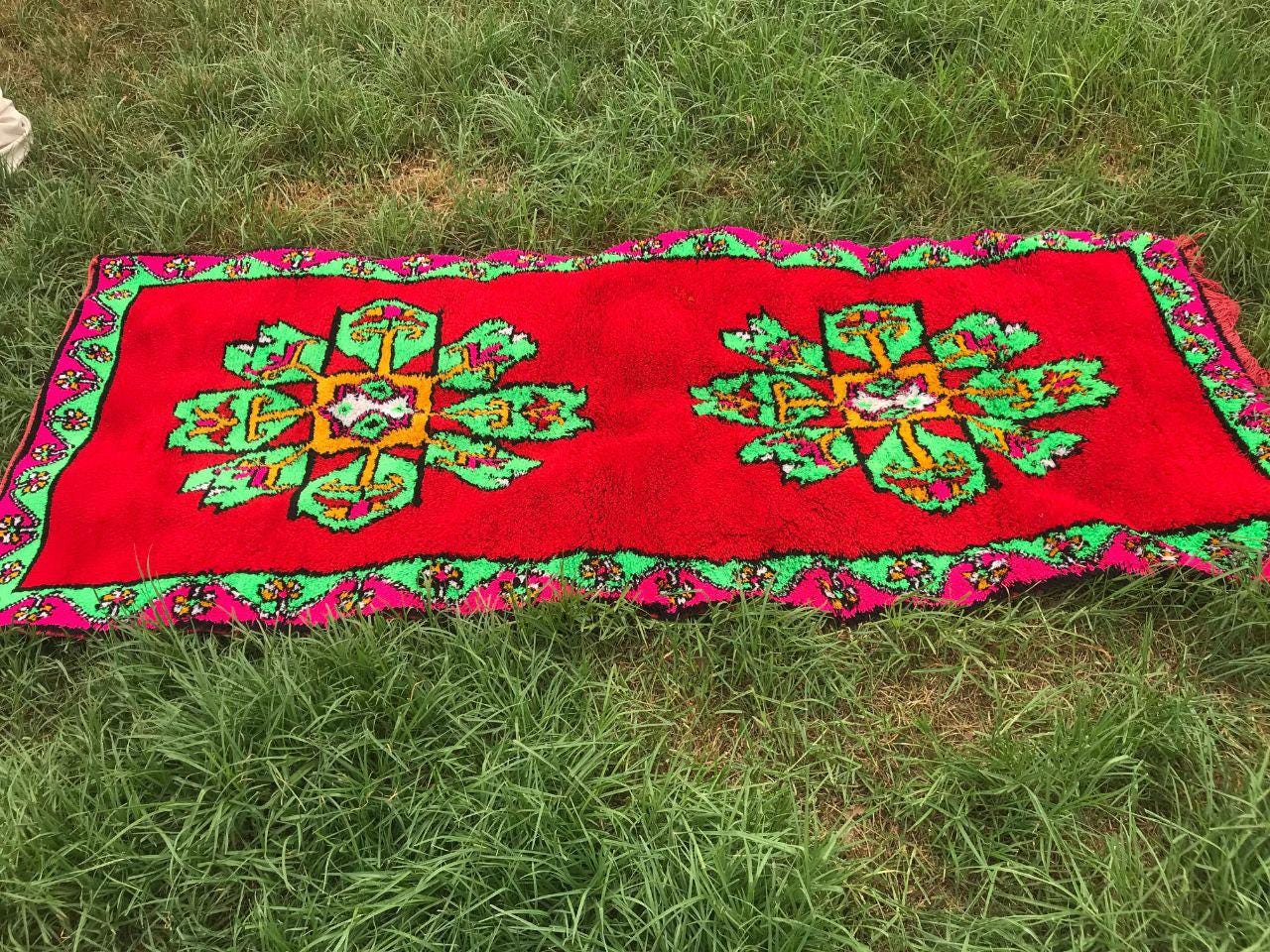 A Moroccan Berber Colorful rug is a traditional handwoven floor covering that originates from the indigenous Berber people of Morocco. These rugs are known for their intricate patterns and bold, geometric designs, which are created using a variety of natural dyes and High-quality Wool. Moroccan boujad rugs are versatile and can be used to add a touch of bohemian chic to any room, from a living room or bedroom to a home office or entryway. They are durable and easy to maintain, making them a practical choice for high-traffic areas. Whether you're looking to add a pop of color to your space or create a warm and welcoming atmosphere, a Moroccan Berber rug is a great choice. 📌 Shipping: insured, trackable, Fast, and FREE Worldwide by FedEx or DHL (2 to 5 days delivery). ❖ Cleaning: all rugs are carefully cleaned before shipping. ❖ Colors: Please take a look at the pictures. ❖ Texture: Moroccan / soft / Shag. ❖ Technique: Hand-Knotted ❖ Construction: Handmade ❖ Location: Indoor Use Only ❖ Material: Your order is made entirely by hand from natural wool, which means there will be natural (and beautiful) variations in pattern and color. Wool shrinks. ❖ Pattern: Because the product is handcrafted, the pattern and Colors may vary slightly from one piece to another. ❖ Size: While we try our best to ensure consistent sizing, it is possible for final sizes to vary by a few inches more or less. ❖ Tassels: One side is the Traditional way of making the rugs. 📌Ships tightly rolled in a protective bag. Any slight creasing will disappear within a few days. Shedding loose fibers is normal with new rugs. Shedding will diminish with regular vacuuming. If you have any questions or queries, please feel free to contact me via messages. Handwoven Red Wool Moroccan Berber Rug: Boho Boujaad Carpet;boho rug living room,rug living room area,moroccan rug area