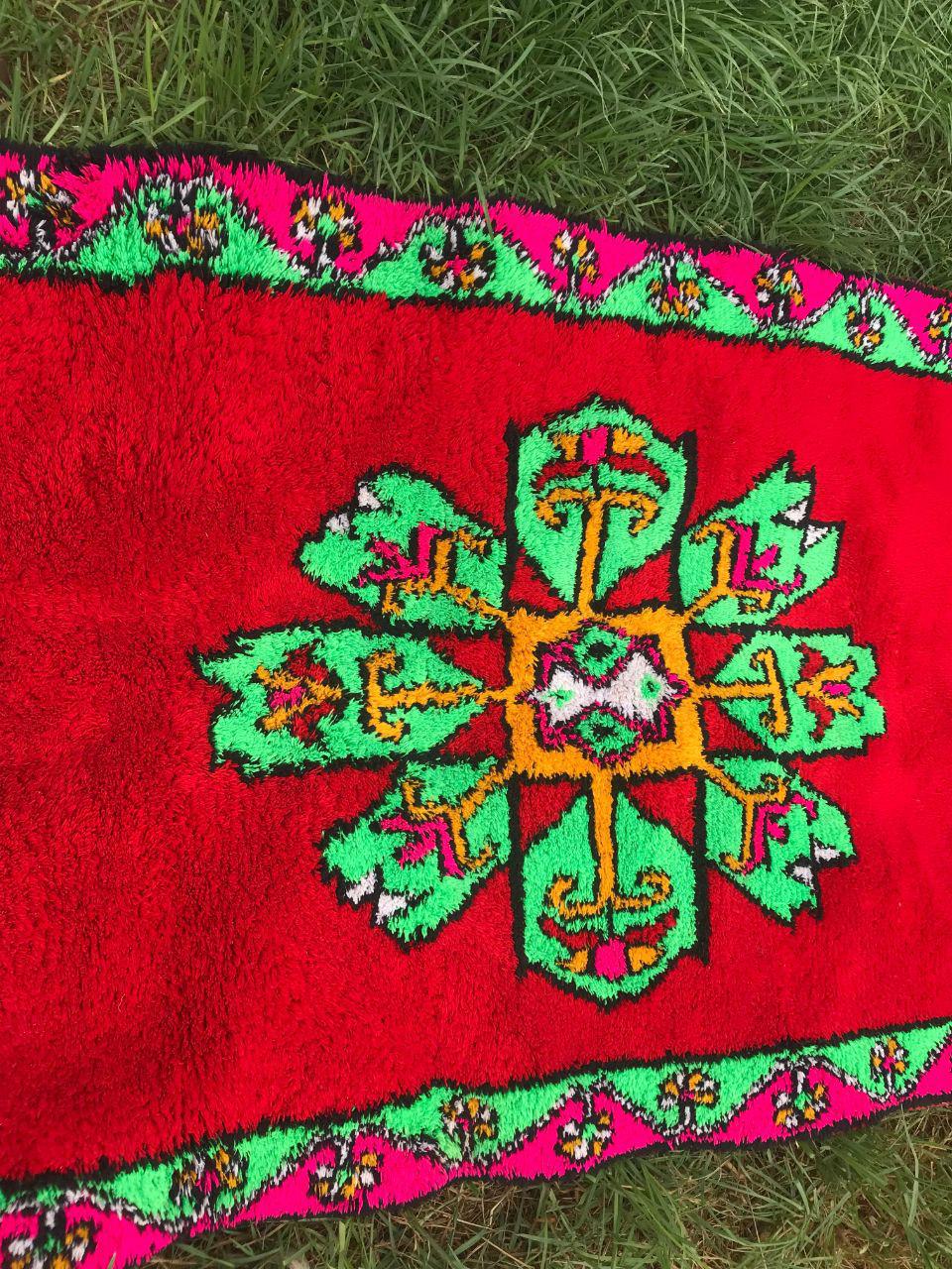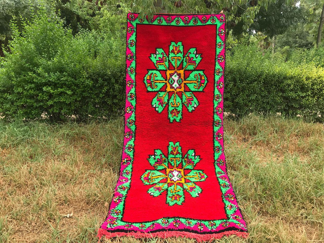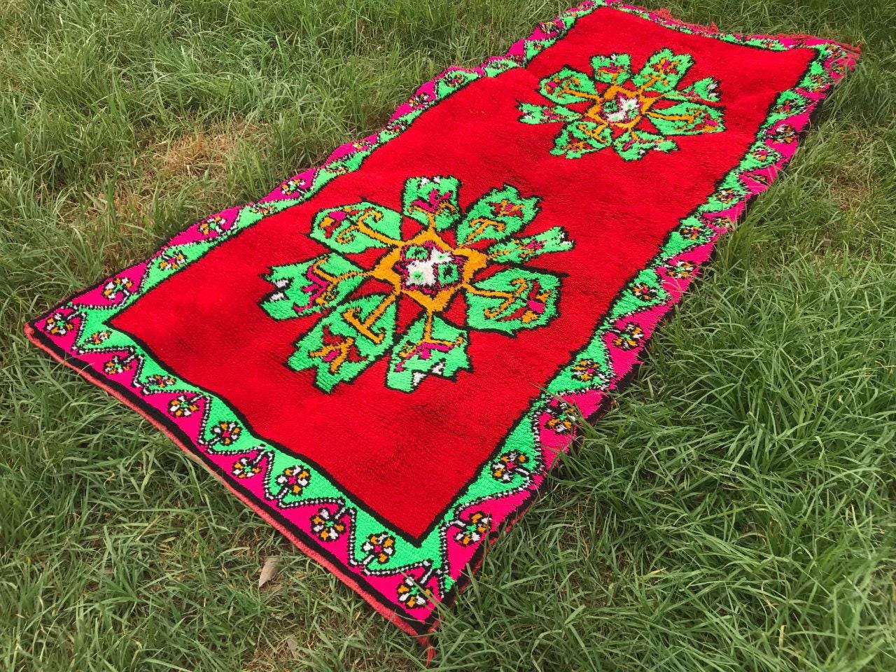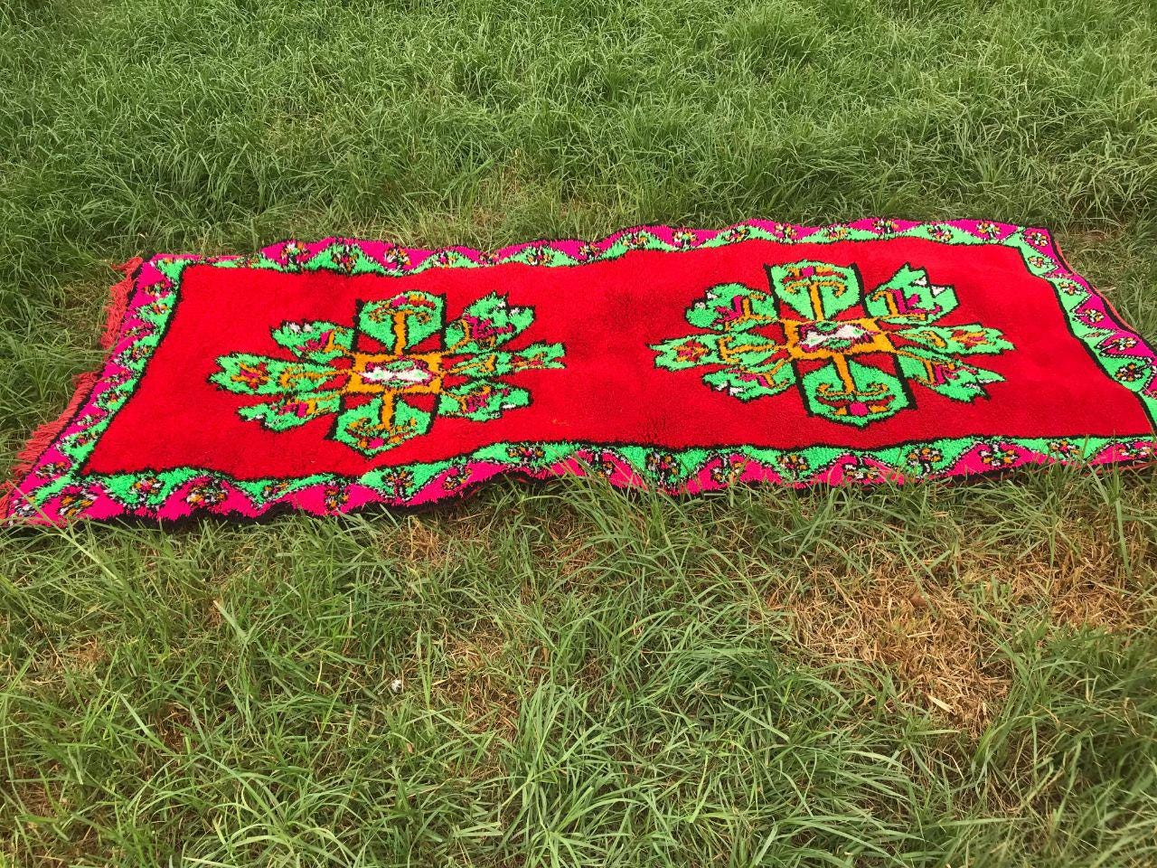 A Moroccan Berber Colorful rug is a traditional handwoven floor covering that originates from the indigenous Berber people of Morocco. These rugs are known for their intricate patterns and bold, geometric designs, which are created using a variety of natural dyes and High-quality Wool. Moroccan boujad rugs are versatile and can be used to add a touch of bohemian chic to any room, from a living room or bedroom to a home office or entryway. They are durable and easy to maintain, making them a practical choice for high-traffic areas. Whether you're looking to add a pop of color to your space or create a warm and welcoming atmosphere, a Moroccan Berber rug is a great choice. 📌 Shipping: insured, trackable, Fast, and FREE Worldwide by FedEx or DHL (2 to 5 days delivery). ❖ Cleaning: all rugs are carefully cleaned before shipping. ❖ Colors: Please take a look at the pictures. ❖ Texture: Moroccan / soft / Shag. ❖ Technique: Hand-Knotted ❖ Construction: Handmade ❖ Location: Indoor Use Only ❖ Material: Your order is made entirely by hand from natural wool, which means there will be natural (and beautiful) variations in pattern and color. Wool shrinks. ❖ Pattern: Because the product is handcrafted, the pattern and Colors may vary slightly from one piece to another. ❖ Size: While we try our best to ensure consistent sizing, it is possible for final sizes to vary by a few inches more or less. ❖ Tassels: One side is the Traditional way of making the rugs. 📌Ships tightly rolled in a protective bag. Any slight creasing will disappear within a few days. Shedding loose fibers is normal with new rugs. Shedding will diminish with regular vacuuming. If you have any questions or queries, please feel free to contact me via messages. Handwoven Red Wool Moroccan Berber Rug: Boho Boujaad Carpet;boho rug living room,rug living room area,moroccan rug area