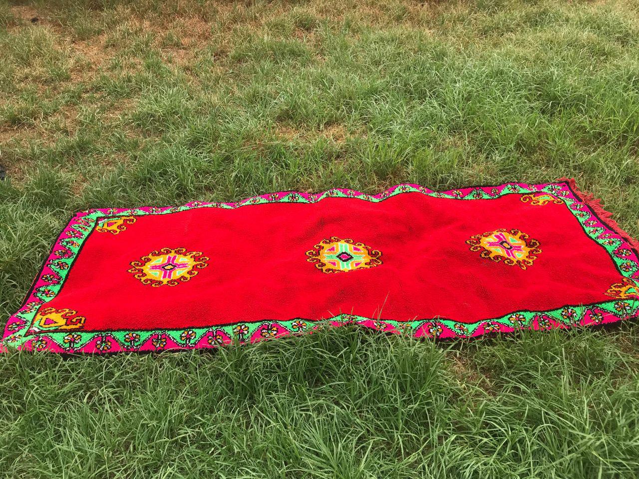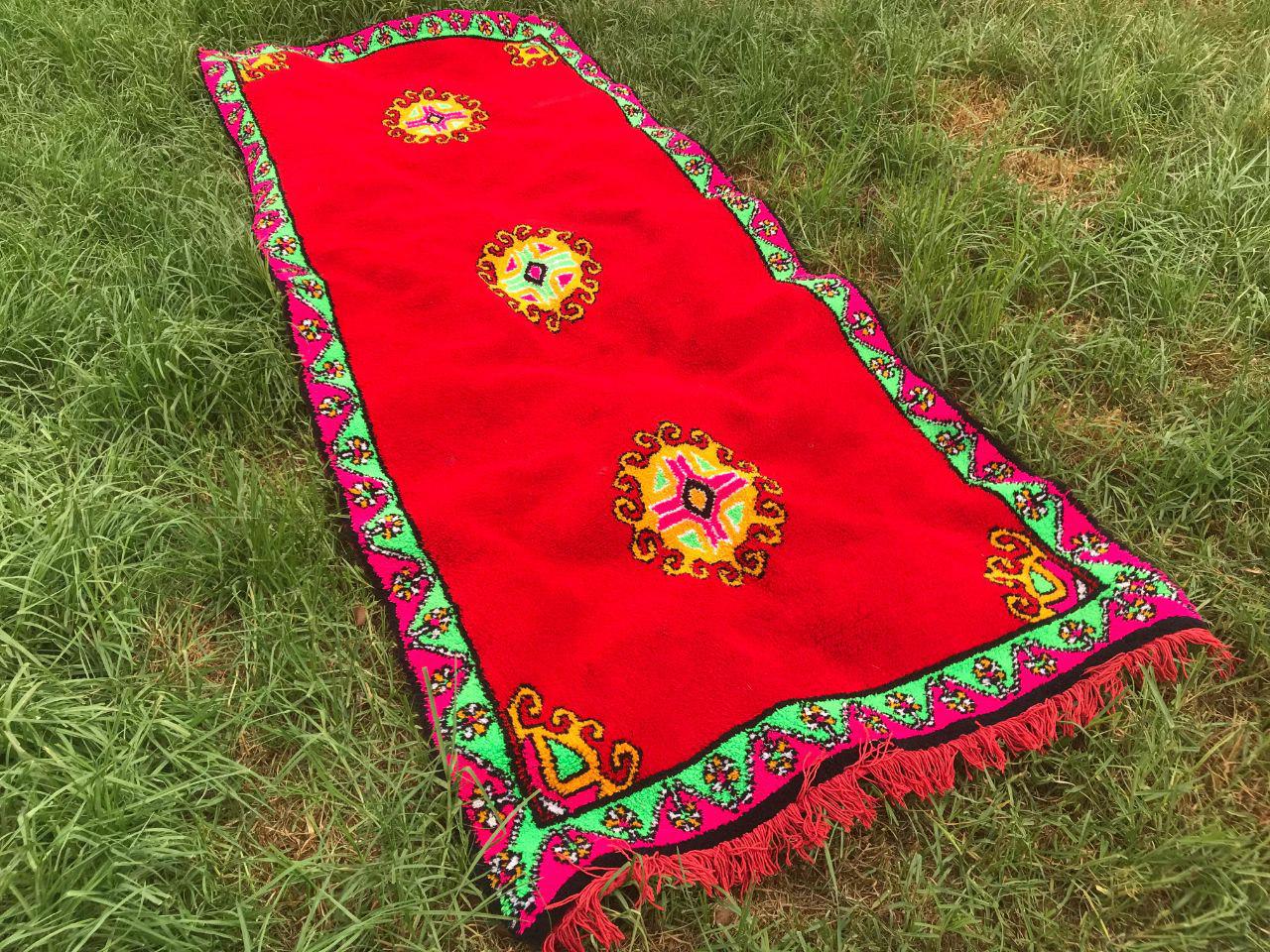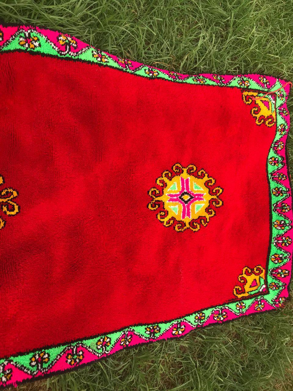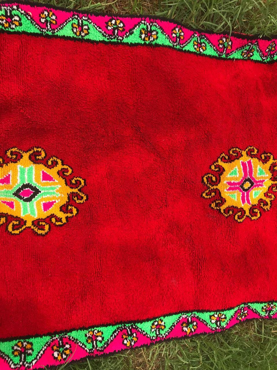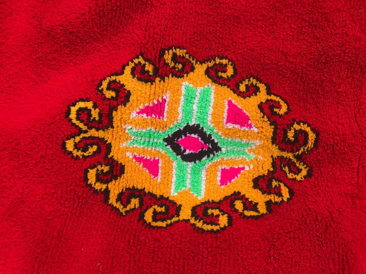 A Moroccan Berber Colorful rug is a traditional handwoven floor covering that originates from the indigenous Berber people of Morocco. These rugs are known for their intricate patterns and bold, geometric designs, which are created using a variety of natural dyes and High-quality Wool. Moroccan boujad rugs are versatile and can be used to add a touch of bohemian chic to any room, from a living room or bedroom to a home office or entryway. They are durable and easy to maintain, making them a practical choice for high-traffic areas. Whether you're looking to add a pop of color to your space or create a warm and welcoming atmosphere, a Moroccan Berber rug is a great choice. 📌 Shipping: insured, trackable, Fast, and FREE Worldwide by FedEx or DHL (2 to 5 days delivery). ❖ Cleaning: all rugs are carefully cleaned before shipping. ❖ Colors: Please take a look at the pictures. ❖ Texture: Moroccan / soft / Shag. ❖ Technique: Hand-Knotted ❖ Construction: Handmade ❖ Location: Indoor Use Only ❖ Material: Your order is made entirely by hand from natural wool, which means there will be natural (and beautiful) variations in pattern and color. Wool shrinks. ❖ Pattern: Because the product is handcrafted, the pattern and Colors may vary slightly from one piece to another. ❖ Size: While we try our best to ensure consistent sizing, it is possible for final sizes to vary by a few inches more or less. ❖ Tassels: One side is the Traditional way of making the rugs. 📌Ships tightly rolled in a protective bag. Any slight creasing will disappear within a few days. Shedding loose fibers is normal with new rugs. Shedding will diminish with regular vacuuming. If you have any questions or queries, please feel free to contact me via messages. Hand-Knotted Moroccan Berber Rug: Red Wool Boho Atlas Design,rug red boho moroccan,red boho rug,area red rug,area rug ,