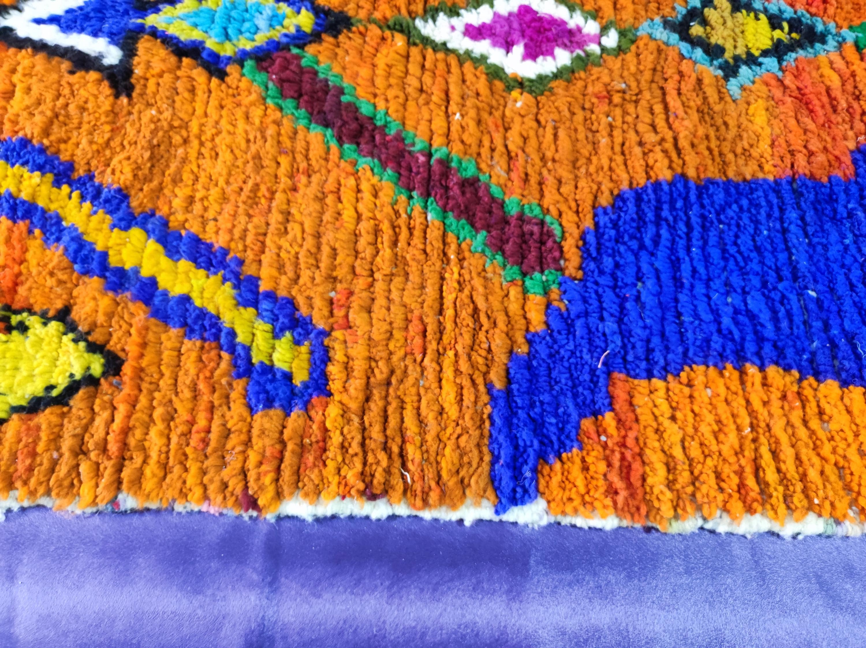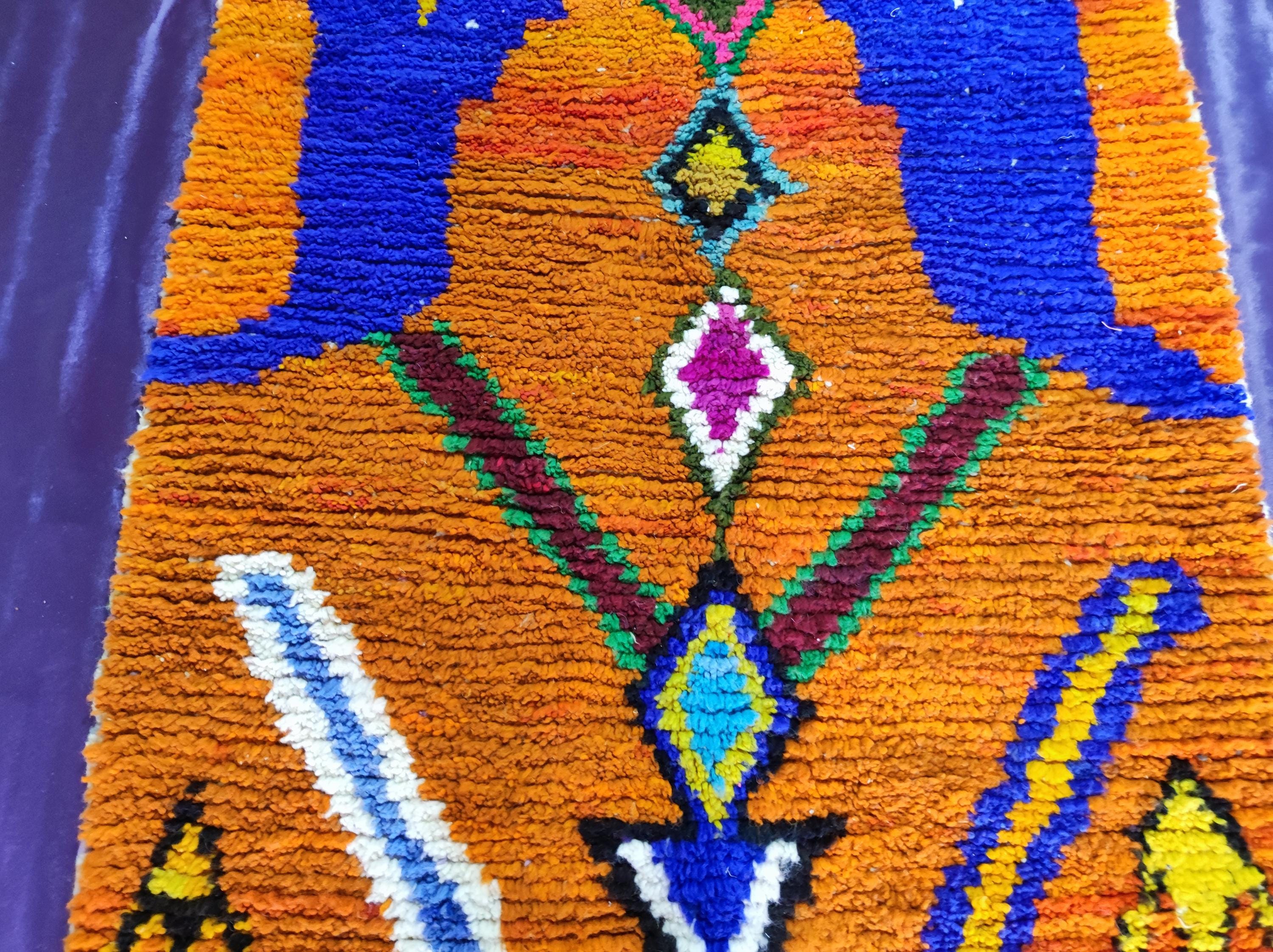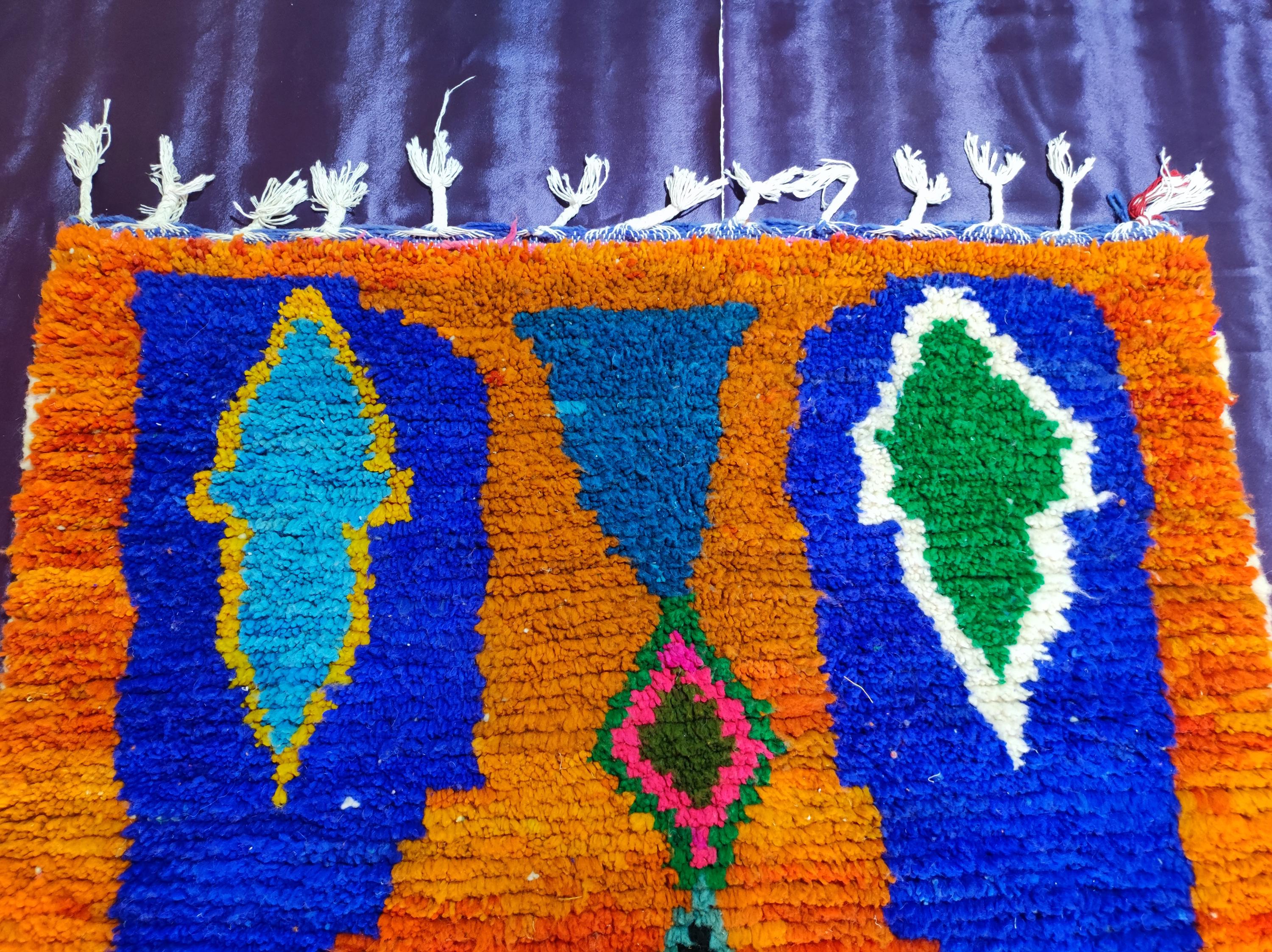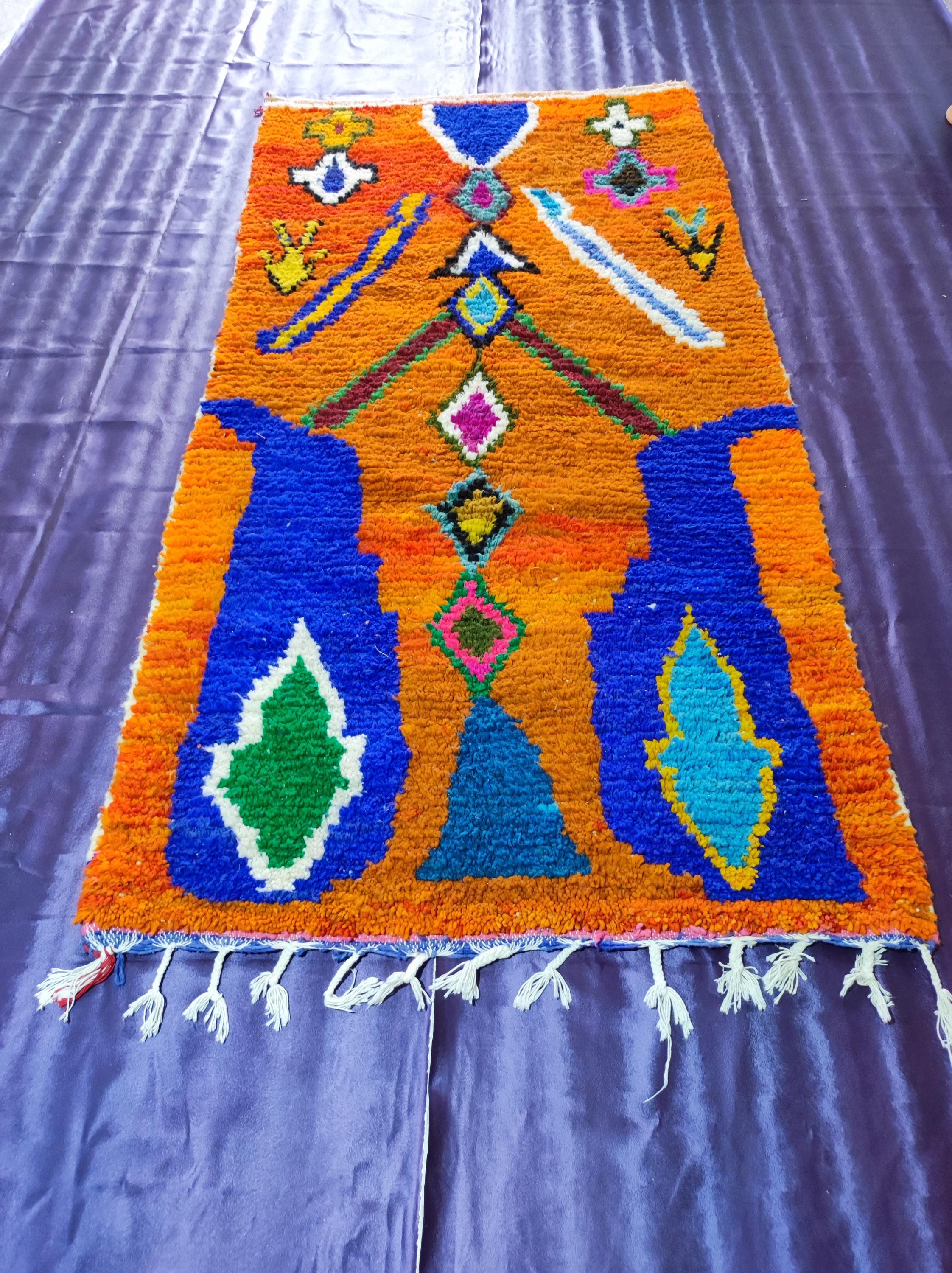 A Moroccan Berber Colorful rug is a traditional handwoven floor covering that originates from the indigenous Berber people of Morocco. These rugs are known for their intricate patterns and bold, geometric designs, which are created using a variety of natural dyes and High-quality Wool. Moroccan boujad rugs are versatile and can be used to add a touch of bohemian chic to any room, from a living room or bedroom to a home office or entryway. They are durable and easy to maintain, making them a practical choice for high-traffic areas. Whether you're looking to add a pop of color to your space or create a warm and welcoming atmosphere, a Moroccan Berber rug is a great choice. 📌 Shipping: insured, trackable, Fast, and FREE Worldwide by FedEx or DHL (2 to 5 days delivery). ❖ Cleaning: all rugs are carefully cleaned before shipping. ❖ Colors: Please take a look at the pictures. ❖ Texture: Moroccan / soft / Shag. ❖ Technique: Hand-Knotted ❖ Construction: Handmade ❖ Location: Indoor Use Only ❖ Material: Your order is made entirely by hand from natural wool, which means there will be natural (and beautiful) variations in pattern and color. Wool shrinks. ❖ Pattern: Because the product is handcrafted, the pattern and Colors may vary slightly from one piece to another. ❖ Size: While we try our best to ensure consistent sizing, it is possible for final sizes to vary by a few inches more or less. ❖ Tassels: One side is the Traditional way of making the rugs. 📌Ships tightly rolled in a protective bag. Any slight creasing will disappear within a few days. Shedding loose fibers is normal with new rugs. Shedding will diminish with regular vacuuming. If you have any questions or queries, please feel free to contact me via messages. Hand-Knotted Moroccan Berber Rug: Orange and Blue Wool, Custom Size;boho rug moroccan,berber boho rug,area berbr boho rug