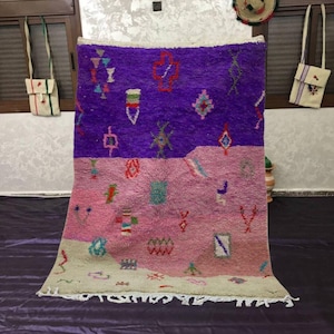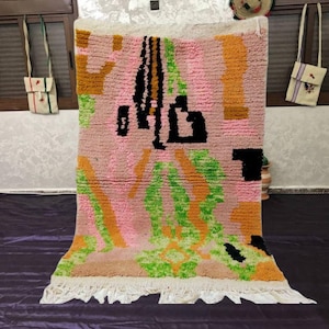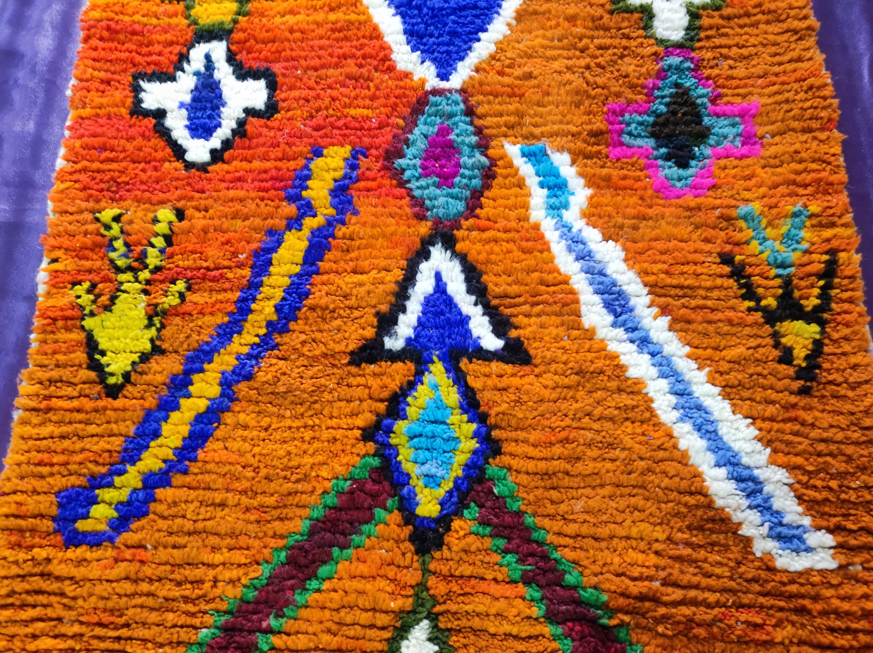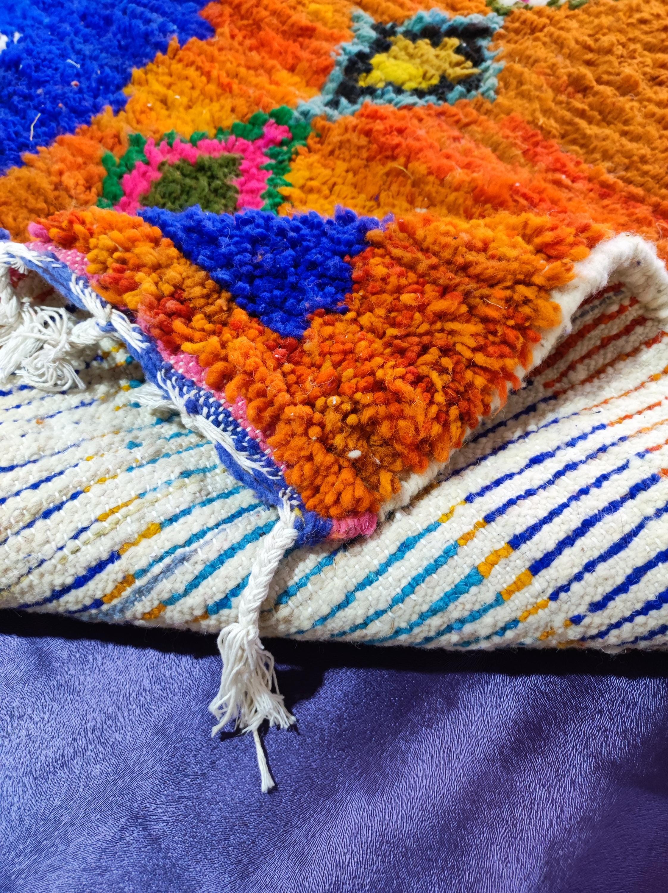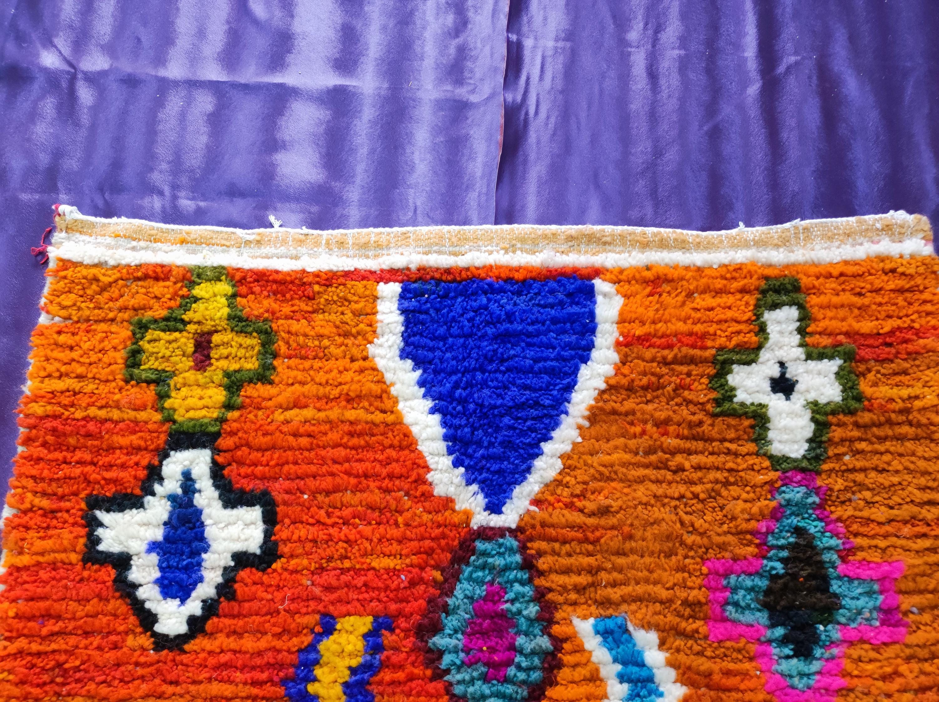 A Moroccan Berber Colorful rug is a traditional handwoven floor covering that originates from the indigenous Berber people of Morocco. These rugs are known for their intricate patterns and bold, geometric designs, which are created using a variety of natural dyes and High-quality Wool. Moroccan boujad rugs are versatile and can be used to add a touch of bohemian chic to any room, from a living room or bedroom to a home office or entryway. They are durable and easy to maintain, making them a practical choice for high-traffic areas. Whether you're looking to add a pop of color to your space or create a warm and welcoming atmosphere, a Moroccan Berber rug is a great choice. 📌 Shipping: insured, trackable, Fast, and FREE Worldwide by FedEx or DHL (2 to 5 days delivery). ❖ Cleaning: all rugs are carefully cleaned before shipping. ❖ Colors: Please take a look at the pictures. ❖ Texture: Moroccan / soft / Shag. ❖ Technique: Hand-Knotted ❖ Construction: Handmade ❖ Location: Indoor Use Only ❖ Material: Your order is made entirely by hand from natural wool, which means there will be natural (and beautiful) variations in pattern and color. Wool shrinks. ❖ Pattern: Because the product is handcrafted, the pattern and Colors may vary slightly from one piece to another. ❖ Size: While we try our best to ensure consistent sizing, it is possible for final sizes to vary by a few inches more or less. ❖ Tassels: One side is the Traditional way of making the rugs. 📌Ships tightly rolled in a protective bag. Any slight creasing will disappear within a few days. Shedding loose fibers is normal with new rugs. Shedding will diminish with regular vacuuming. If you have any questions or queries, please feel free to contact me via messages. Hand-Knotted Moroccan Berber Rug: Orange and Blue Wool, Custom Size;boho rug moroccan,berber boho rug,area berbr boho rug