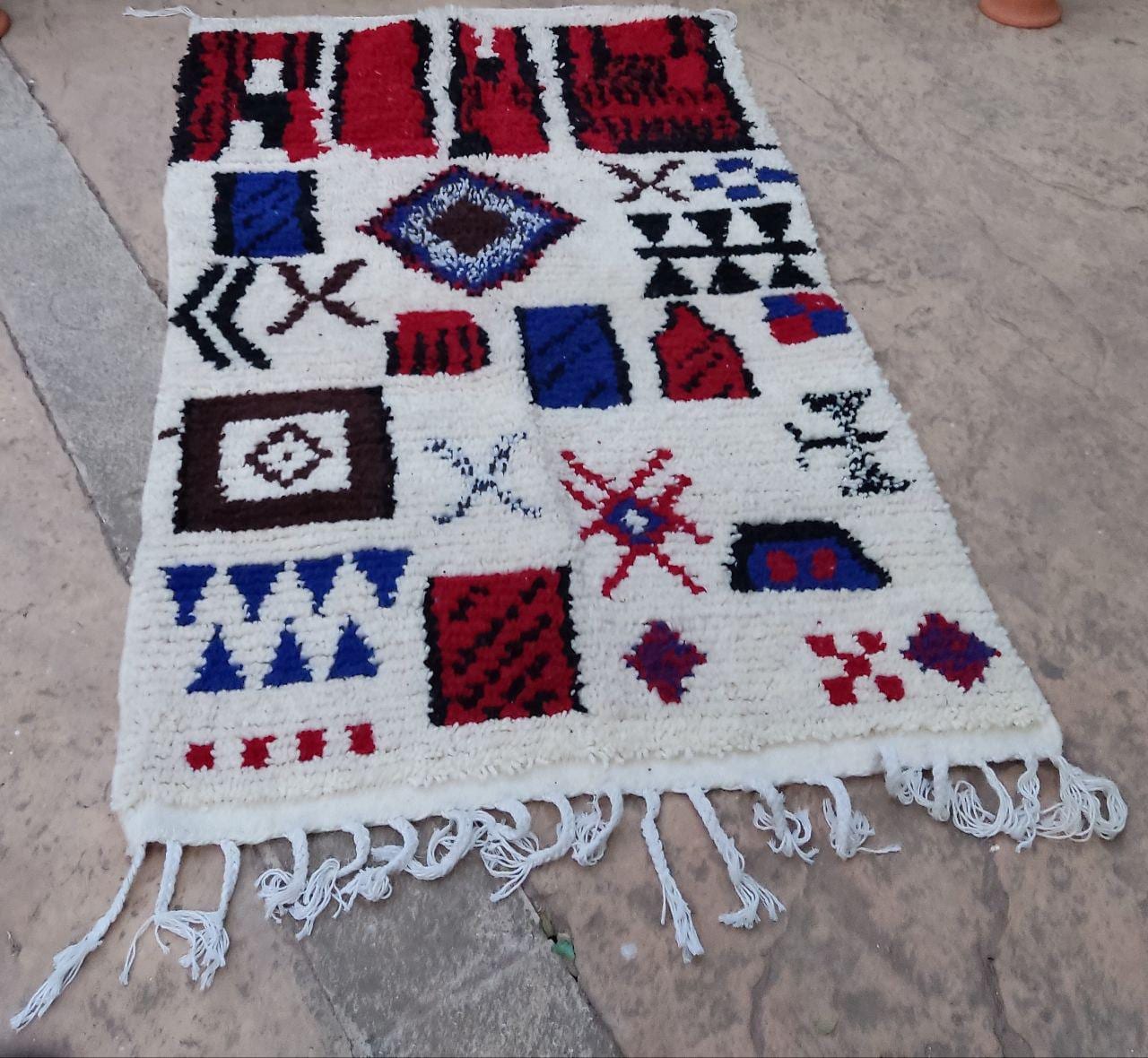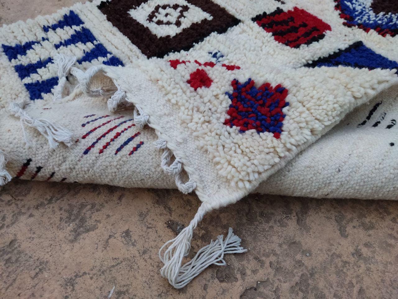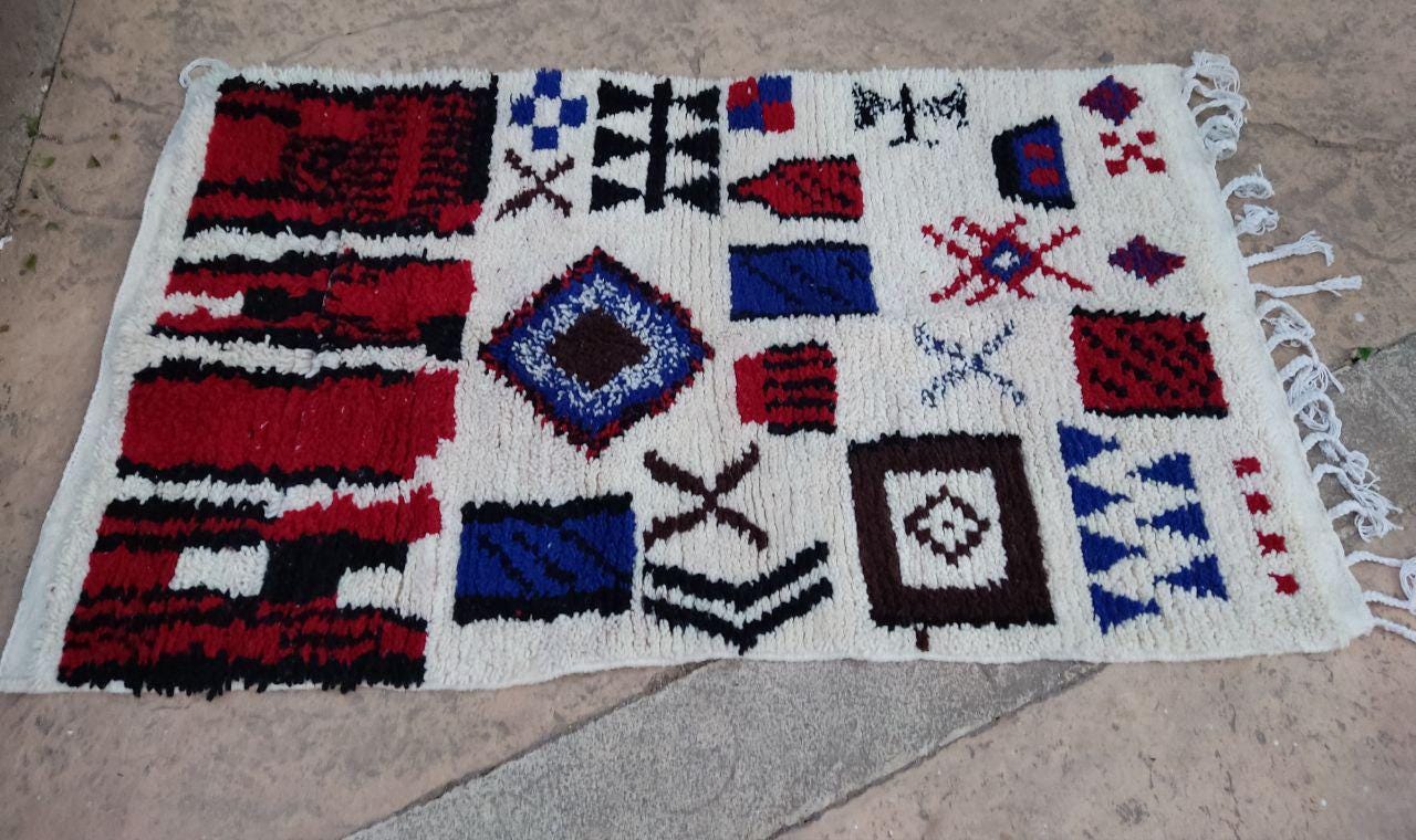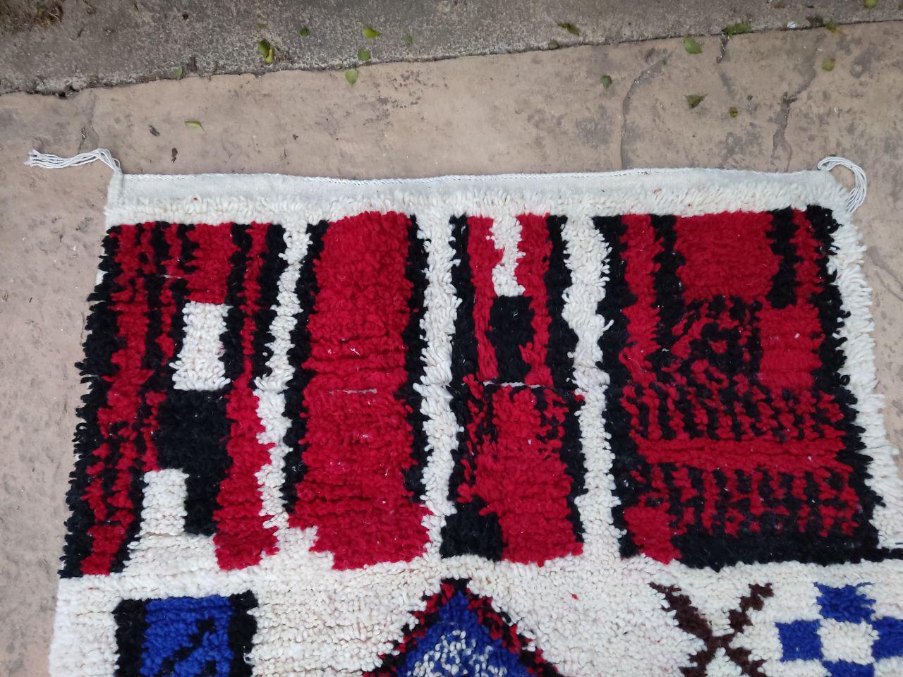A Moroccan Berber Colorful rug is a traditional handwoven floor covering that originates from the indigenous Berber people of Morocco. These rugs are known for their intricate patterns and bold, geometric designs, which are created using a variety of natural dyes and High-quality Wool. Moroccan boujad rugs are versatile and can be used to add a touch of bohemian chic to any room, from a living room or bedroom to a home office or entryway. They are durable and easy to maintain, making them a practical choice for high-traffic areas. Whether you're looking to add a pop of color to your space or create a warm and welcoming atmosphere, a Moroccan Berber rug is a great choice. 📌 Shipping: insured, trackable, Fast, and FREE Worldwide by FedEx or DHL (2 to 5 days delivery). ❖ Cleaning: all rugs are carefully cleaned before shipping. ❖ Colors: Please take a look at the pictures. ❖ Texture: Moroccan / soft / Shag. ❖ Technique: Hand-Knotted ❖ Construction: Handmade ❖ Location: Indoor Use Only ❖ Material: Your order is made entirely by hand from natural wool, which means there will be natural (and beautiful) variations in pattern and color. Wool shrinks. ❖ Pattern: Because the product is handcrafted, the pattern and Colors may vary slightly from one piece to another. ❖ Size: While we try our best to ensure consistent sizing, it is possible for final sizes to vary by a few inches more or less. ❖ Tassels: One side is the Traditional way of making the rugs. 📌Ships tightly rolled in a protective bag. Any slight creasing will disappear within a few days. Shedding loose fibers is normal with new rugs. Shedding will diminish with regular vacuuming. If you have any questions or queries, please feel free to contact me via messages. rug boho moroccan red and wide ,bohochic bohomian style rug,Amizing Moroccan Boujaad Rug