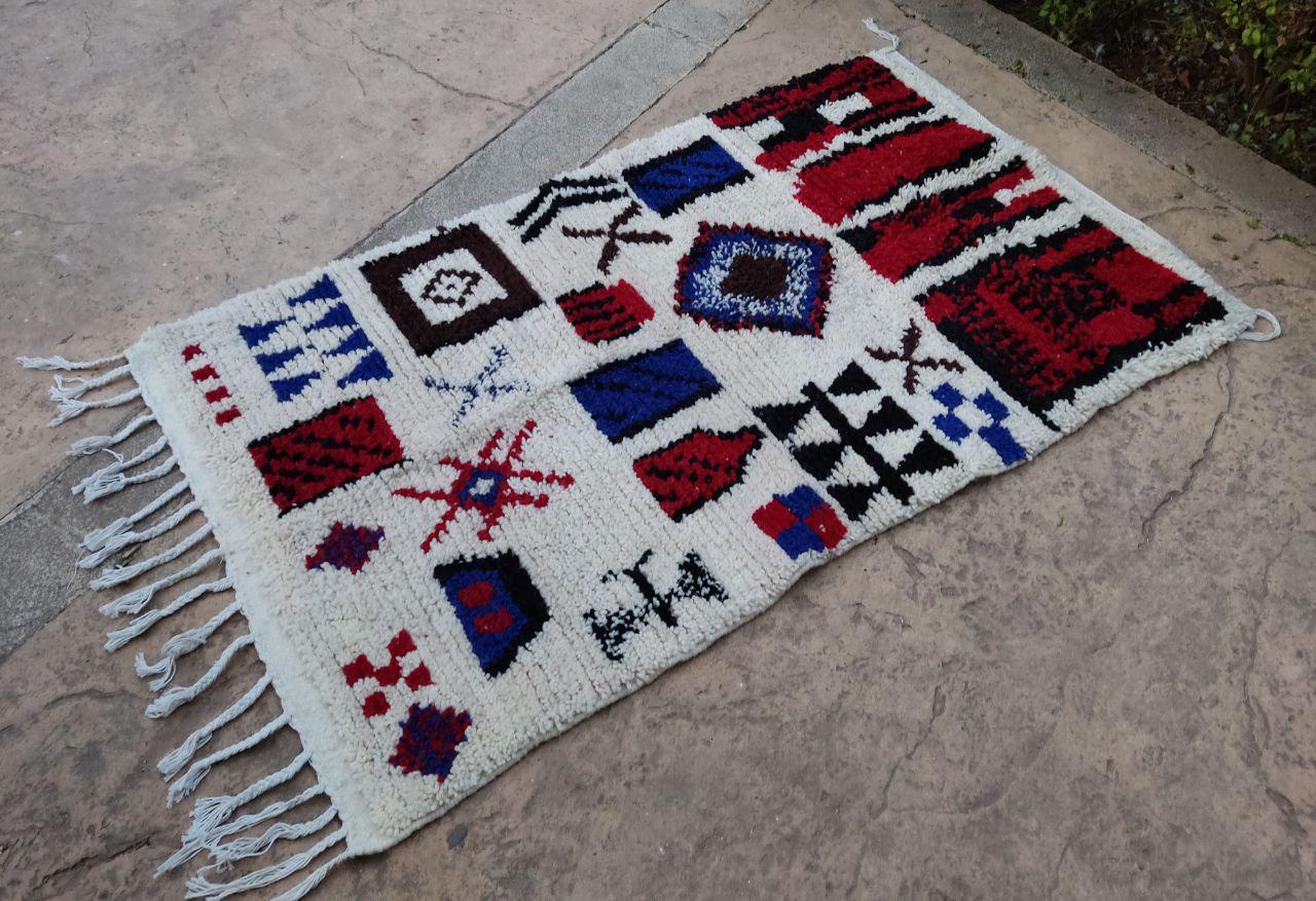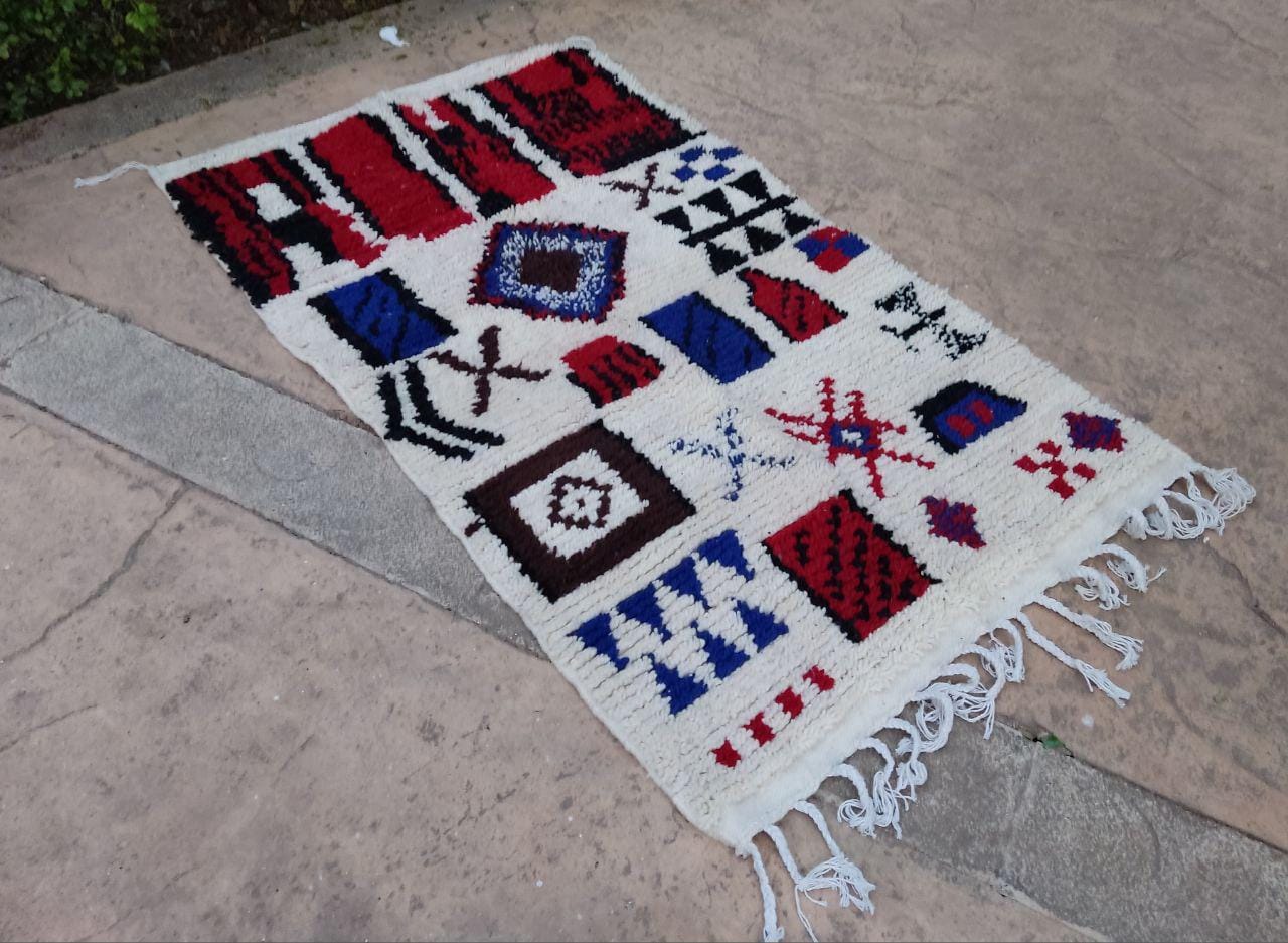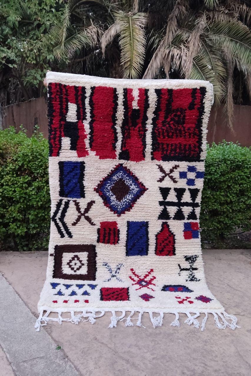 A Moroccan Berber Colorful rug is a traditional handwoven floor covering that originates from the indigenous Berber people of Morocco. These rugs are known for their intricate patterns and bold, geometric designs, which are created using a variety of natural dyes and High-quality Wool. Moroccan boujad rugs are versatile and can be used to add a touch of bohemian chic to any room, from a living room or bedroom to a home office or entryway. They are durable and easy to maintain, making them a practical choice for high-traffic areas. Whether you're looking to add a pop of color to your space or create a warm and welcoming atmosphere, a Moroccan Berber rug is a great choice. 📌 Shipping: insured, trackable, Fast, and FREE Worldwide by FedEx or DHL (2 to 5 days delivery). ❖ Cleaning: all rugs are carefully cleaned before shipping. ❖ Colors: Please take a look at the pictures. ❖ Texture: Moroccan / soft / Shag. ❖ Technique: Hand-Knotted ❖ Construction: Handmade ❖ Location: Indoor Use Only ❖ Material: Your order is made entirely by hand from natural wool, which means there will be natural (and beautiful) variations in pattern and color. Wool shrinks. ❖ Pattern: Because the product is handcrafted, the pattern and Colors may vary slightly from one piece to another. ❖ Size: While we try our best to ensure consistent sizing, it is possible for final sizes to vary by a few inches more or less. ❖ Tassels: One side is the Traditional way of making the rugs. 📌Ships tightly rolled in a protective bag. Any slight creasing will disappear within a few days. Shedding loose fibers is normal with new rugs. Shedding will diminish with regular vacuuming. If you have any questions or queries, please feel free to contact me via messages. rug boho moroccan red and wide ,bohochic bohomian style rug,Amizing Moroccan Boujaad Rug