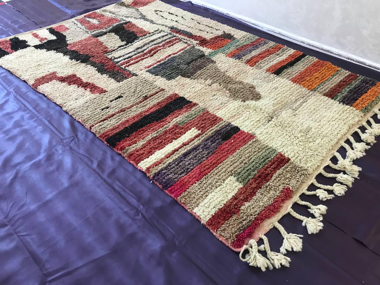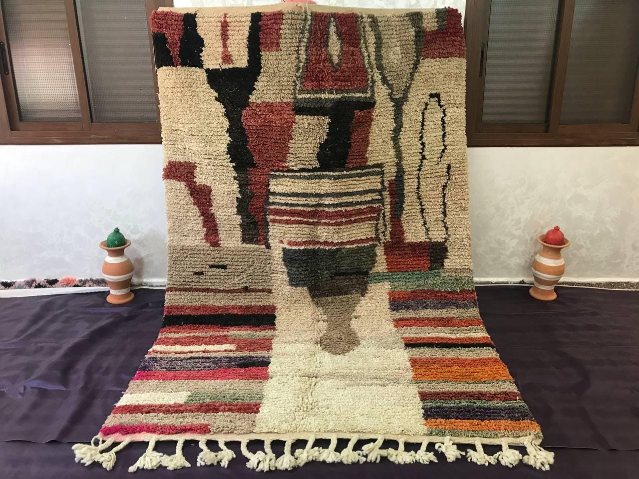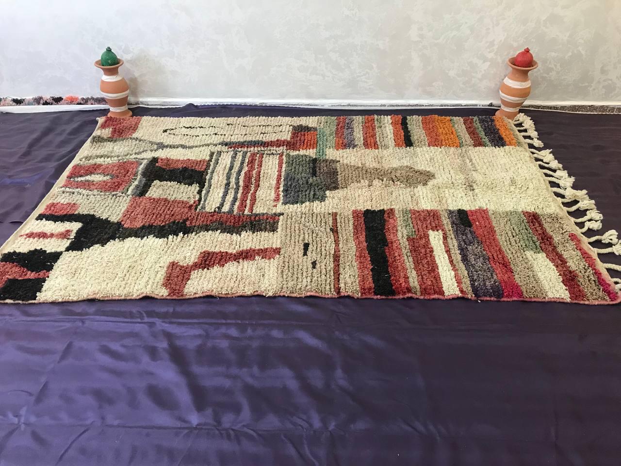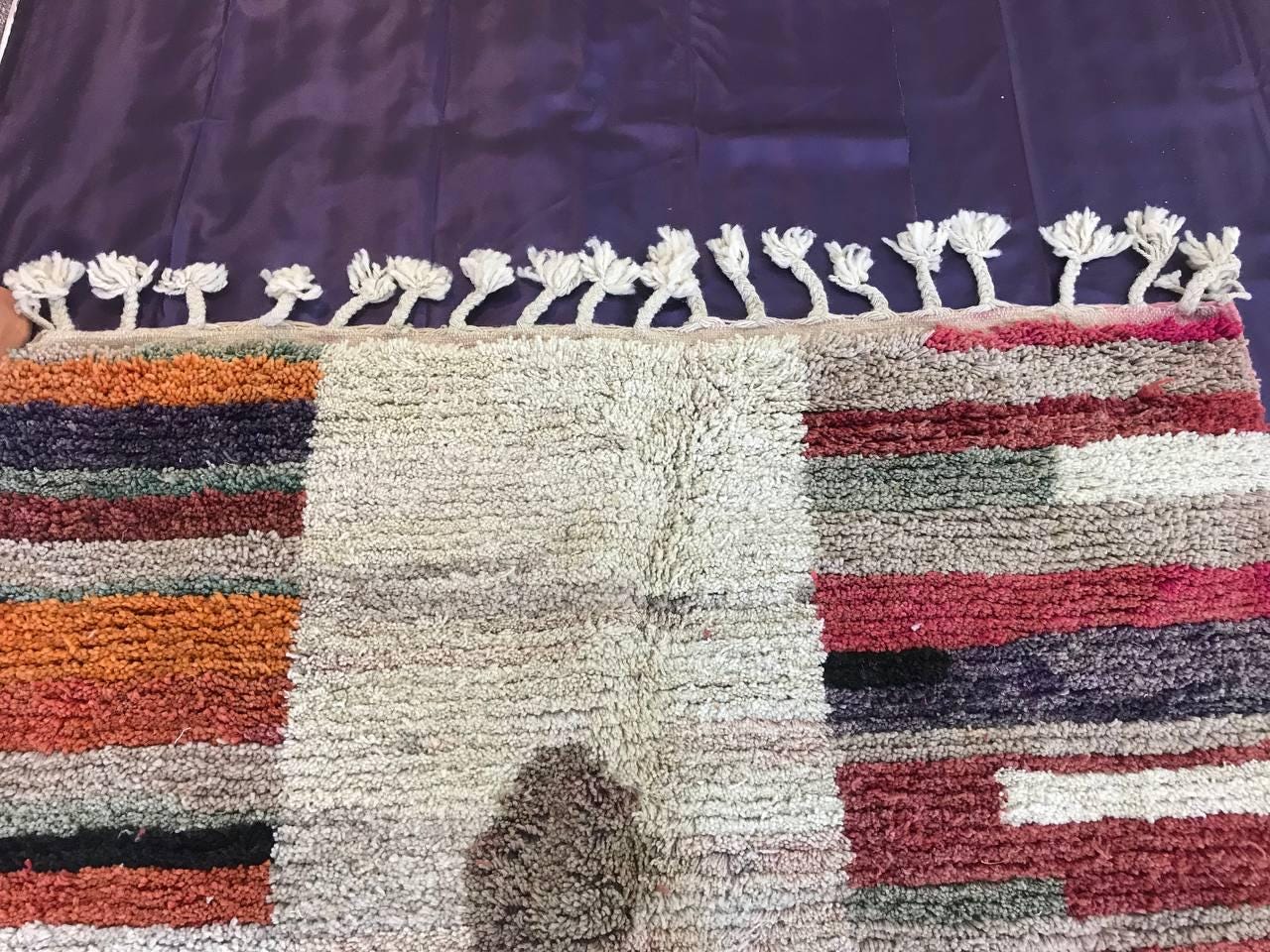 A Moroccan Berber Colorful rug is a traditional handwoven floor covering that originates from the indigenous Berber people of Morocco. These rugs are known for their intricate patterns and bold, geometric designs, which are created using a variety of natural dyes and High-quality Wool. Moroccan boujad rugs are versatile and can be used to add a touch of bohemian chic to any room, from a living room or bedroom to a home office or entryway. They are durable and easy to maintain, making them a practical choice for high-traffic areas. Whether you're looking to add a pop of color to your space or create a warm and welcoming atmosphere, a Moroccan Berber rug is a great choice. 📌 Shipping: insured, trackable, Fast, and FREE Worldwide by FedEx or DHL (2 to 5 days delivery). ❖ Cleaning: all rugs are carefully cleaned before shipping. ❖ Colors: Please take a look at the pictures. ❖ Texture: Moroccan / soft / Shag. ❖ Technique: Hand-Knotted ❖ Construction: Handmade ❖ Location: Indoor Use Only ❖ Material: Your order is made entirely by hand from natural wool, which means there will be natural (and beautiful) variations in pattern and color. Wool shrinks. ❖ Pattern: Because the product is handcrafted, the pattern and Colors may vary slightly from one piece to another. ❖ Size: While we try our best to ensure consistent sizing, it is possible for final sizes to vary by a few inches more or less. ❖ Tassels: One side is the Traditional way of making the rugs. 📌Ships tightly rolled in a protective bag. Any slight creasing will disappear within a few days. Shedding loose fibers is normal with new rugs. Shedding will diminish with regular vacuuming. If you have any questions or queries, please feel free to contact me via messages. Hand-Knotted living room Moroccan Berber Rug: Colorful Wool Boujaad Rug,beni ourain carpets