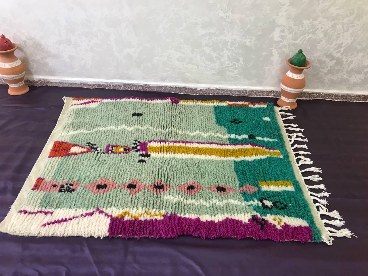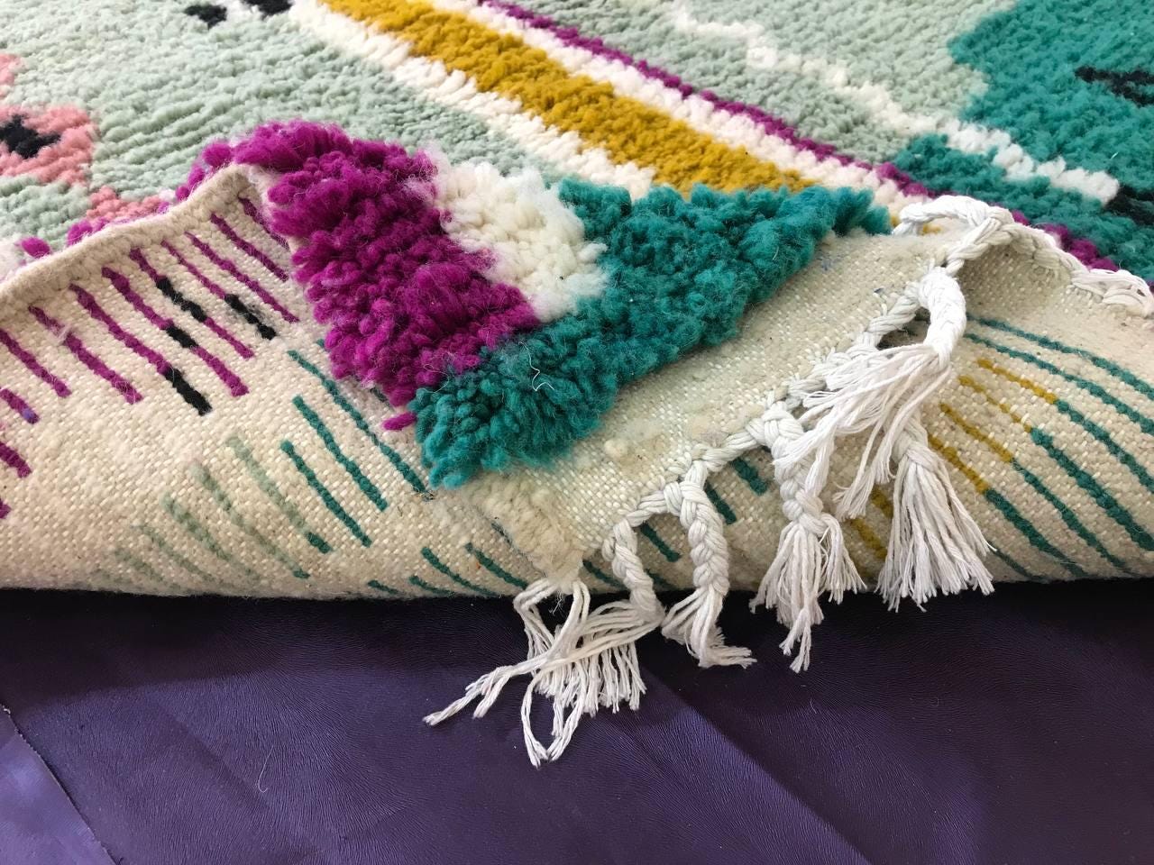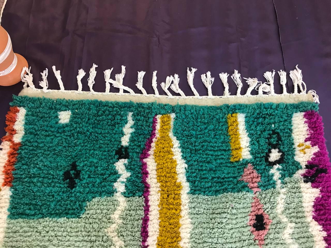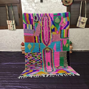A Moroccan Berber Colorful rug is a traditional handwoven floor covering that originates from the indigenous Berber people of Morocco. These rugs are known for their intricate patterns and bold, geometric designs, which are created using a variety of natural dyes and High-quality Wool. Moroccan boujad rugs are versatile and can be used to add a touch of bohemian chic to any room, from a living room or bedroom to a home office or entryway. They are durable and easy to maintain, making them a practical choice for high-traffic areas. Whether you're looking to add a pop of color to your space or create a warm and welcoming atmosphere, a Moroccan Berber rug is a great choice.