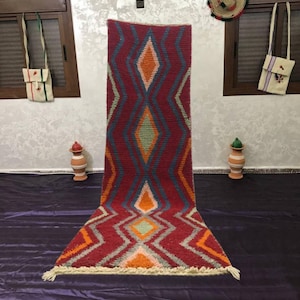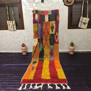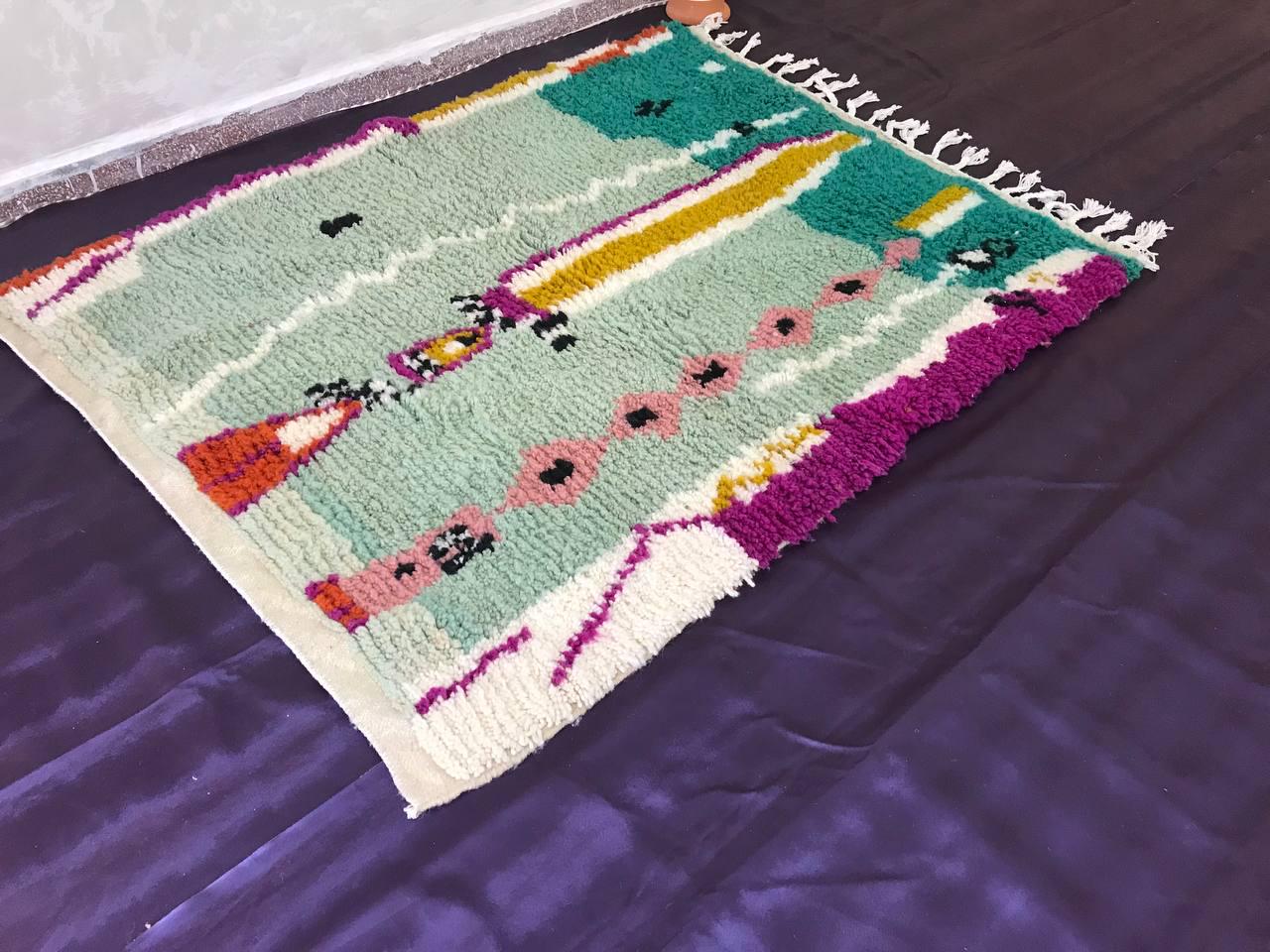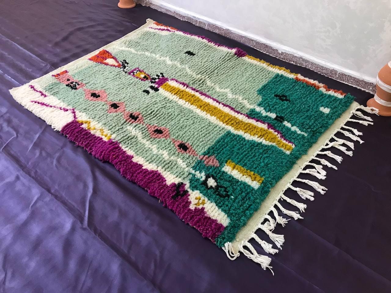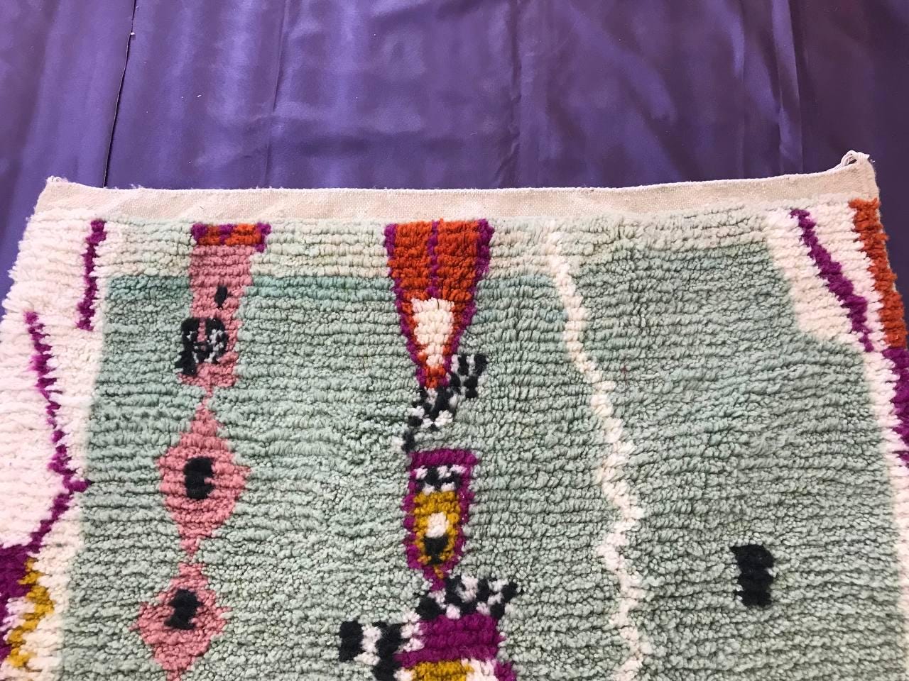 A Moroccan Berber Colorful rug is a traditional handwoven floor covering that originates from the indigenous Berber people of Morocco. These rugs are known for their intricate patterns and bold, geometric designs, which are created using a variety of natural dyes and High-quality Wool. Moroccan boujad rugs are versatile and can be used to add a touch of bohemian chic to any room, from a living room or bedroom to a home office or entryway. They are durable and easy to maintain, making them a practical choice for high-traffic areas. Whether you're looking to add a pop of color to your space or create a warm and welcoming atmosphere, a Moroccan Berber rug is a great choice.