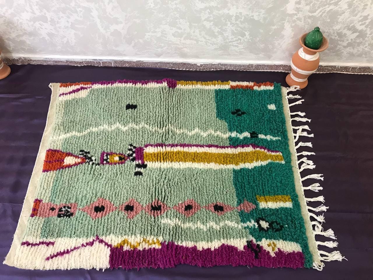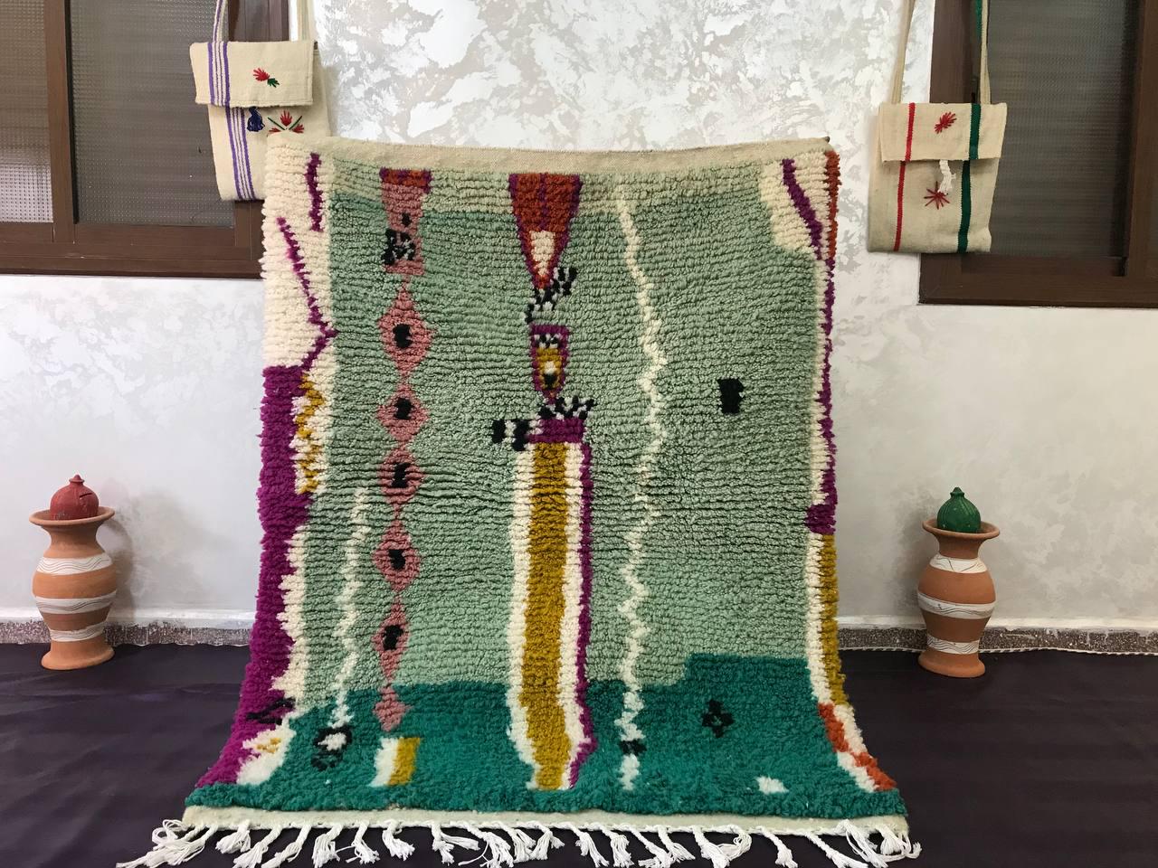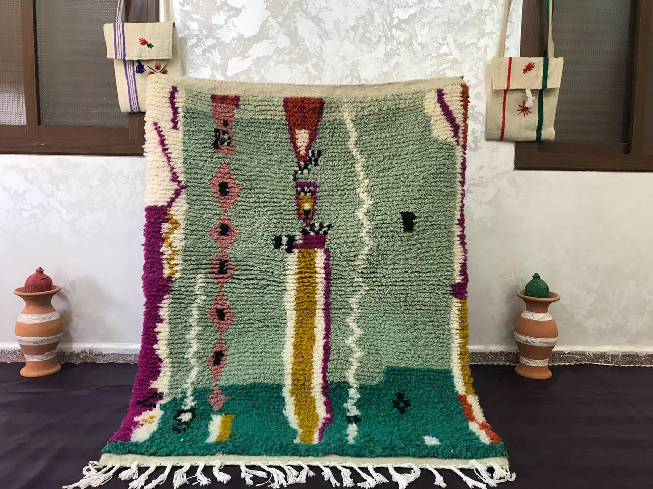 Handmade Green berber boho Beni Ourain Moroccan Rug: Authentic ,Wool Carpet boho berber moroccan amazing rug