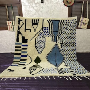 A Moroccan Berber Colorful rug is a traditional handwoven floor covering that originates from the indigenous Berber people of Morocco. These rugs are known for their intricate patterns and bold, geometric designs, which are created using a variety of natural dyes and High-quality Wool. Moroccan boujad rugs are versatile and can be used to add a touch of bohemian chic to any room, from a living room or bedroom to a home office or entryway. They are durable and easy to maintain, making them a practical choice for high-traffic areas. Whether you're looking to add a pop of color to your space or create a warm and welcoming atmosphere, a Moroccan Berber rug is a great choice. 📌 Shipping: insured, trackable, Fast, and FREE Worldwide by FedEx or DHL (2 to 5 days delivery). ❖ Cleaning: all rugs are carefully cleaned before shipping. ❖ Colors: Please take a look at the pictures. ❖ Texture: Moroccan / soft / Shag. ❖ Technique: Hand-Knotted ❖ Construction: Handmade ❖ Location: Indoor Use Only ❖ Material: Your order is made entirely by hand from natural wool, which means there will be natural (and beautiful) variations in pattern and color. Wool shrinks. ❖ Pattern: Because the product is handcrafted, the pattern and Colors may vary slightly from one piece to another. ❖ Size: While we try our best to ensure consistent sizing, it is possible for final sizes to vary by a few inches more or less. ❖ Tassels: One side is the Traditional way of making the rugs. 📌Ships tightly rolled in a protective bag. Any slight creasing will disappear within a few days. Shedding loose fibers is normal with new rugs. Shedding will diminish with regular vacuuming. If you have any questions or queries, please feel free to contact me via messages. Hand-Knotted rug berber Moroccan Wool Rug : Black Berber back Rug boujaad