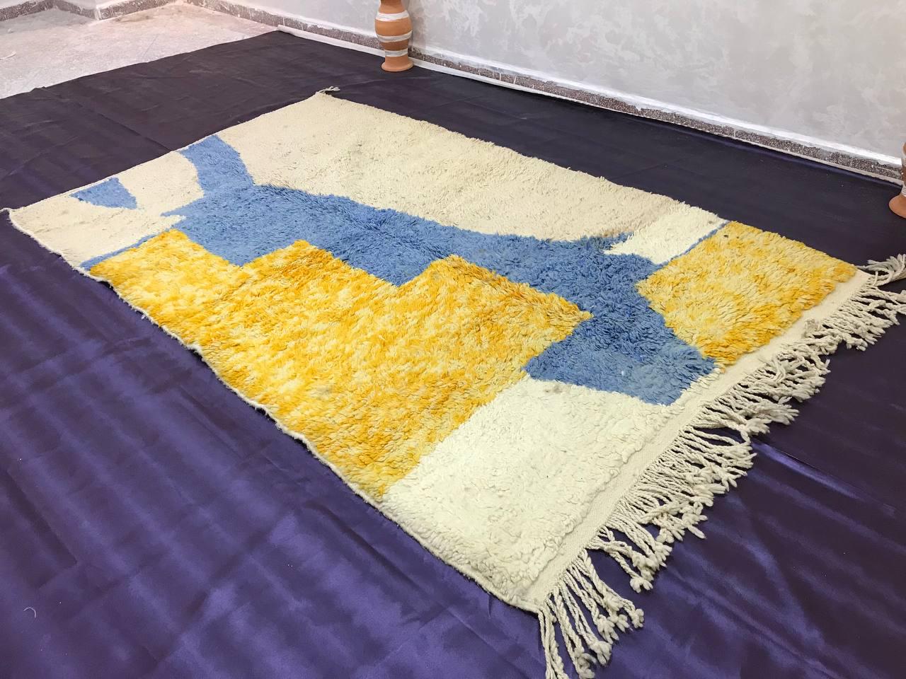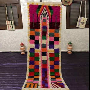 A Moroccan Berber Colorful rug is a traditional handwoven floor covering that originates from the indigenous Berber people of Morocco. These rugs are known for their intricate patterns and bold, geometric designs, which are created using a variety of natural dyes and High-quality Wool. Moroccan boujad rugs are versatile and can be used to add a touch of bohemian chic to any room, from a living room or bedroom to a home office or entryway. They are durable and easy to maintain, making them a practical choice for high-traffic areas. Whether you're looking to add a pop of color to your space or create a warm and welcoming atmosphere, a Moroccan Berber rug is a great choice.