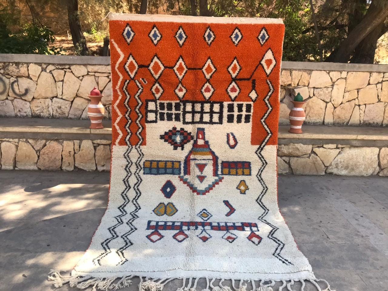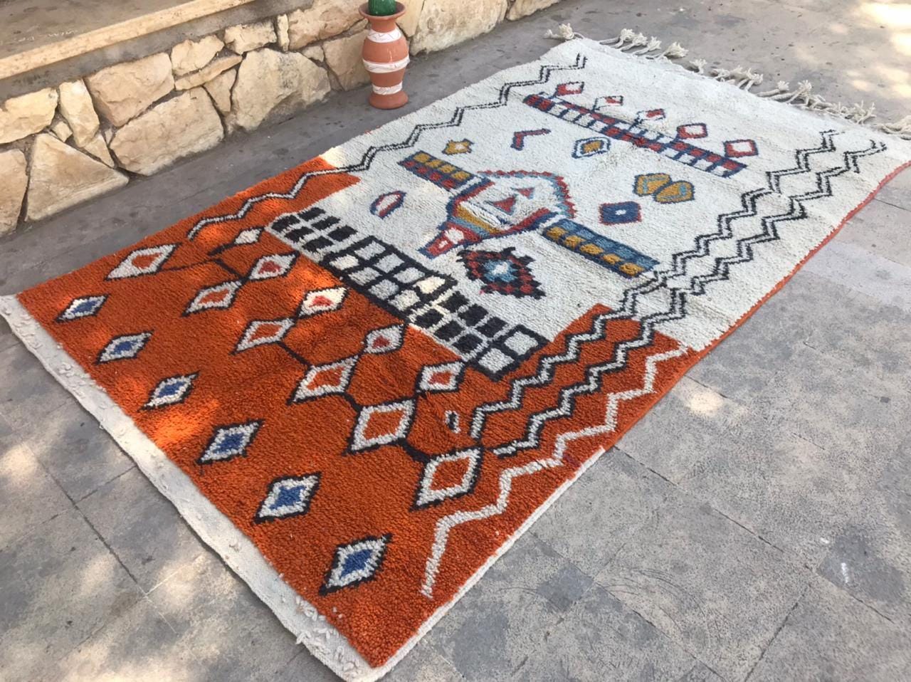 Colorful Moroccan rug gives a beautiful decor to your home.Orange rugs decorate your home, traditional Moroccan craftsmanship