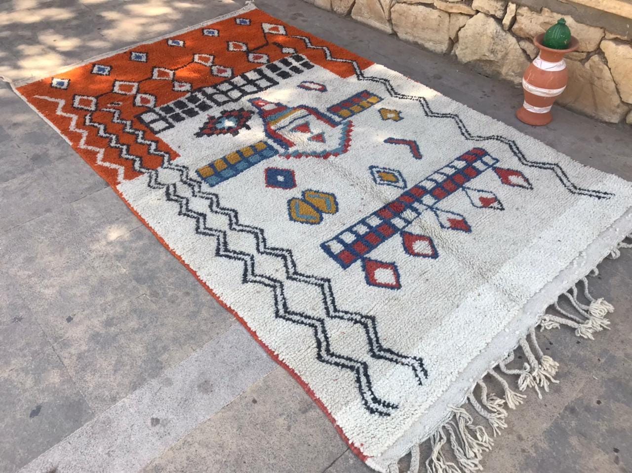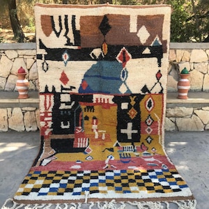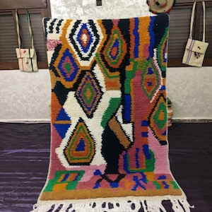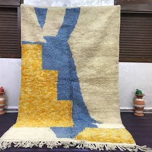 A Moroccan Berber Colorful rug is a traditional handwoven floor covering that originates from the indigenous Berber people of Morocco. These rugs are known for their intricate patterns and bold, geometric designs, which are created using a variety of natural dyes and High-quality Wool. Moroccan boujad rugs are versatile and can be used to add a touch of bohemian chic to any room, from a living room or bedroom to a home office or entryway. They are durable and easy to maintain, making them a practical choice for high-traffic areas. Whether you're looking to add a pop of color to your space or create a warm and welcoming atmosphere, a Moroccan Berber rug is a great choice. 📌 Shipping: insured, trackable, Fast, and FREE Worldwide by FedEx or DHL (2 to 5 days delivery). ❖ Cleaning: all rugs are carefully cleaned before shipping. ❖ Colors: Please take a look at the pictures. ❖ Texture: Moroccan / soft / Shag. ❖ Technique: Hand-Knotted ❖ Construction: Handmade ❖ Location: Indoor Use Only ❖ Material: Your order is made entirely by hand from natural wool, which means there will be natural (and beautiful) variations in pattern and color. Wool shrinks. ❖ Pattern: Because the product is handcrafted, the pattern and Colors may vary slightly from one piece to another. ❖ Size: While we try our best to ensure consistent sizing, it is possible for final sizes to vary by a few inches more or less. ❖ Tassels: One side is the Traditional way of making the rugs. 📌Ships tightly rolled in a protective bag. Any slight creasing will disappear within a few days. Shedding loose fibers is normal with new rugs. Shedding will diminish with regular vacuuming. If you have any questions or queries, please feel free to contact me via messages.