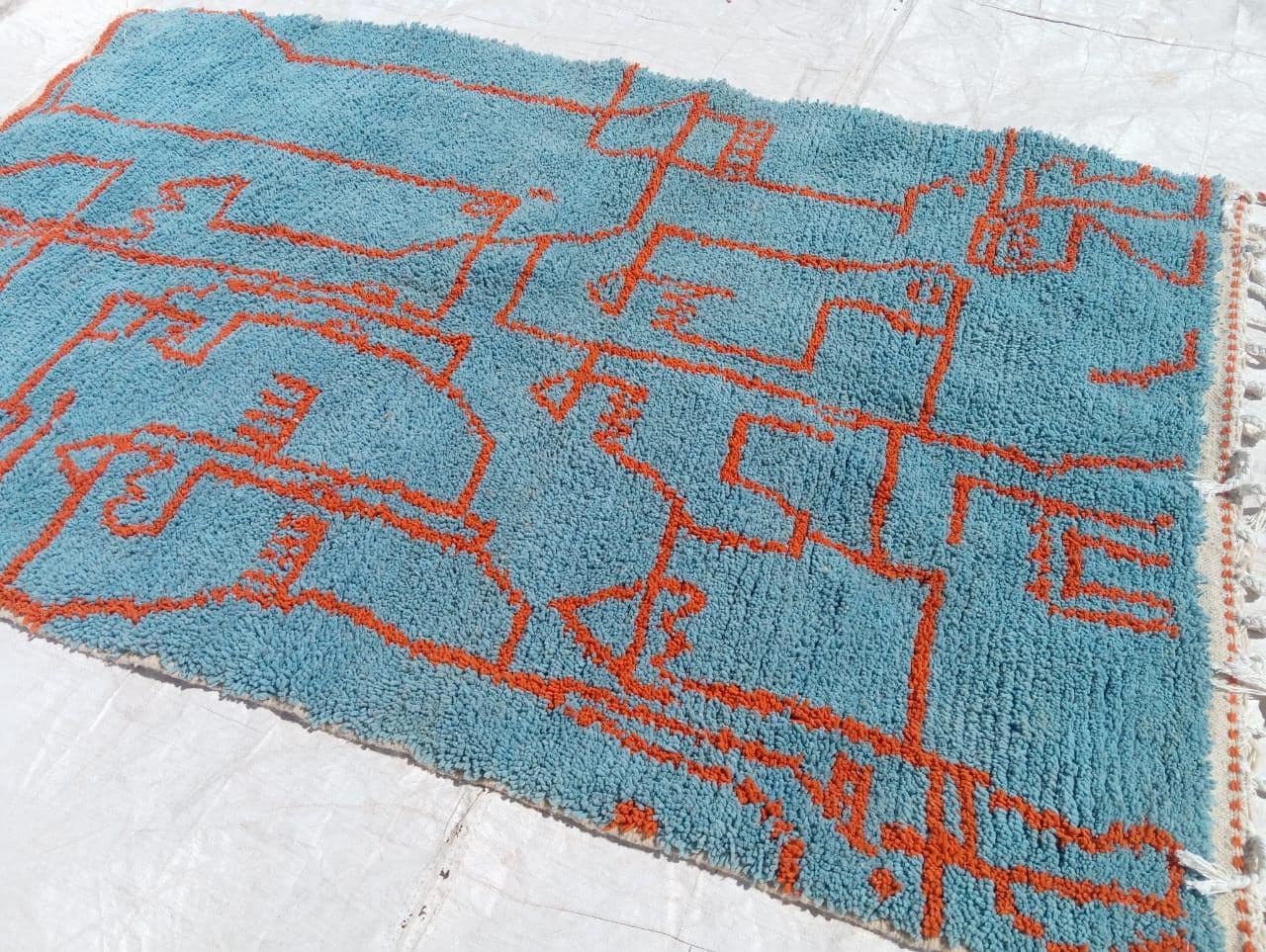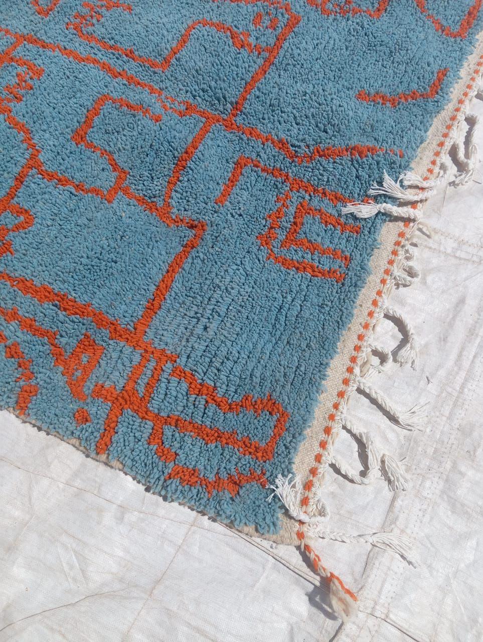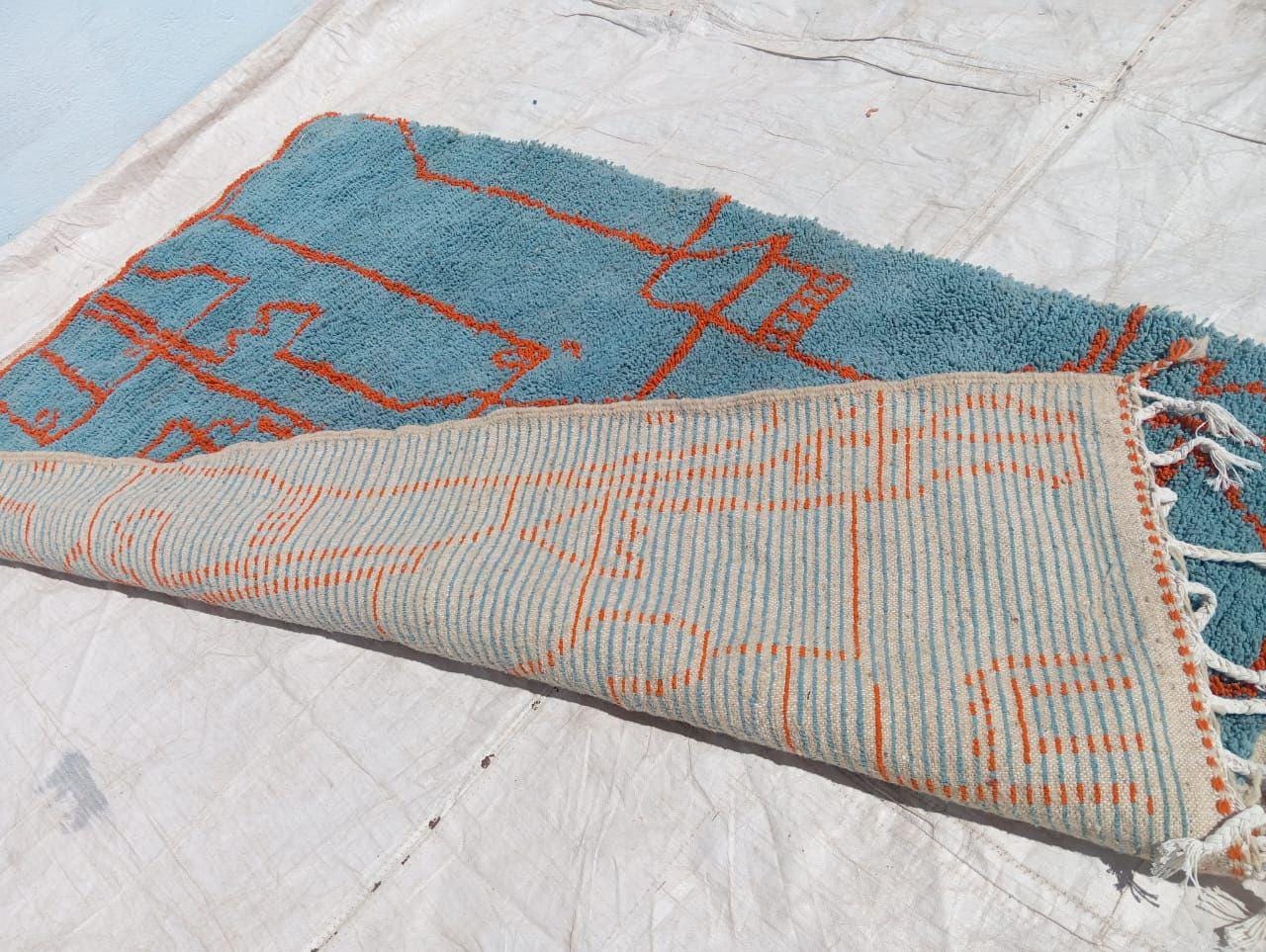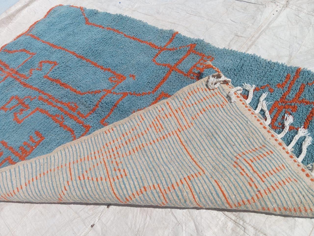 A Moroccan Berber Colorful rug is a traditional handwoven floor covering that originates from the indigenous Berber people of Morocco. These rugs are known for their intricate patterns and bold, geometric designs, which are created using a variety of natural dyes and High-quality Wool. Moroccan boujad rugs are versatile and can be used to add a touch of bohemian chic to any room, from a living room or bedroom to a home office or entryway. They are durable and easy to maintain, making them a practical choice for high-traffic areas. Whether you're looking to add a pop of color to your space or create a warm and welcoming atmosphere, a Moroccan Berber rug is a great choice. 📌 Shipping: insured, trackable, Fast, and FREE Worldwide by FedEx or DHL (2 to 5 days delivery). ❖ Cleaning: all rugs are carefully cleaned before shipping. ❖ Colors: Please take a look at the pictures. ❖ Texture: Moroccan / soft / Shag. ❖ Technique: Hand-Knotted ❖ Construction: Handmade ❖ Location: Indoor Use Only ❖ Material: Your order is made entirely by hand from natural wool, which means there will be natural (and beautiful) variations in pattern and color. Wool shrinks. ❖ Pattern: Because the product is handcrafted, the pattern and Colors may vary slightly from one piece to another. ❖ Size: While we try our best to ensure consistent sizing, it is possible for final sizes to vary by a few inches more or less. ❖ Tassels: One side is the Traditional way of making the rugs. 📌Ships tightly rolled in a protective bag. Any slight creasing will disappear within a few days. Shedding loose fibers is normal with new rugs. Shedding will diminish with regular vacuuming. If you have any questions or queries, please feel free to contact me via messages. orange and blue rug moroccan for boho room,carpet blue/orange area boujaad,rug boho berber blue rug