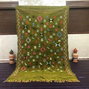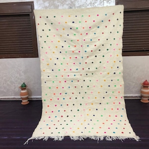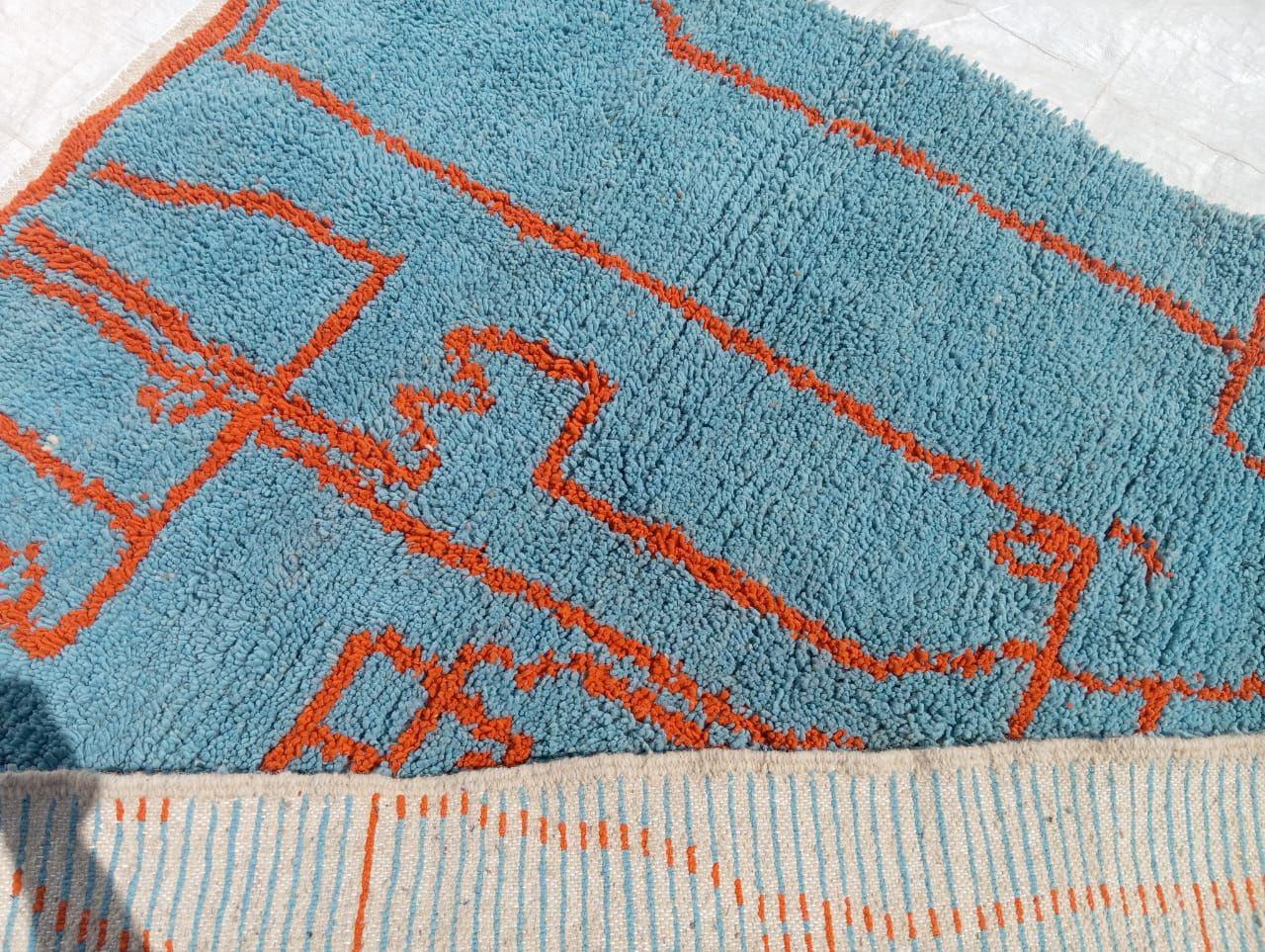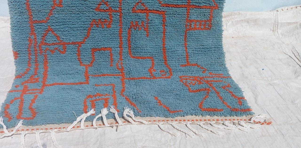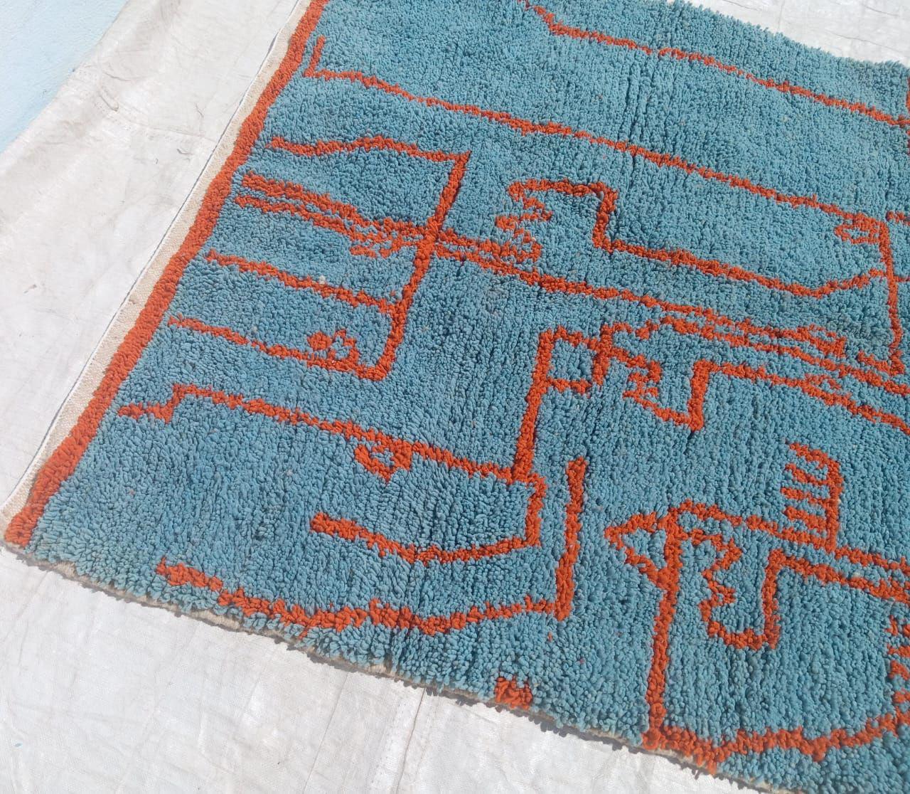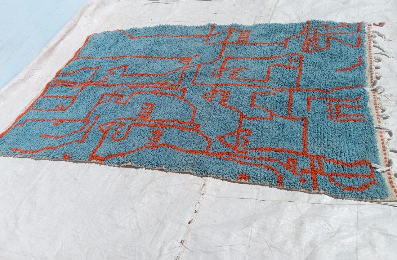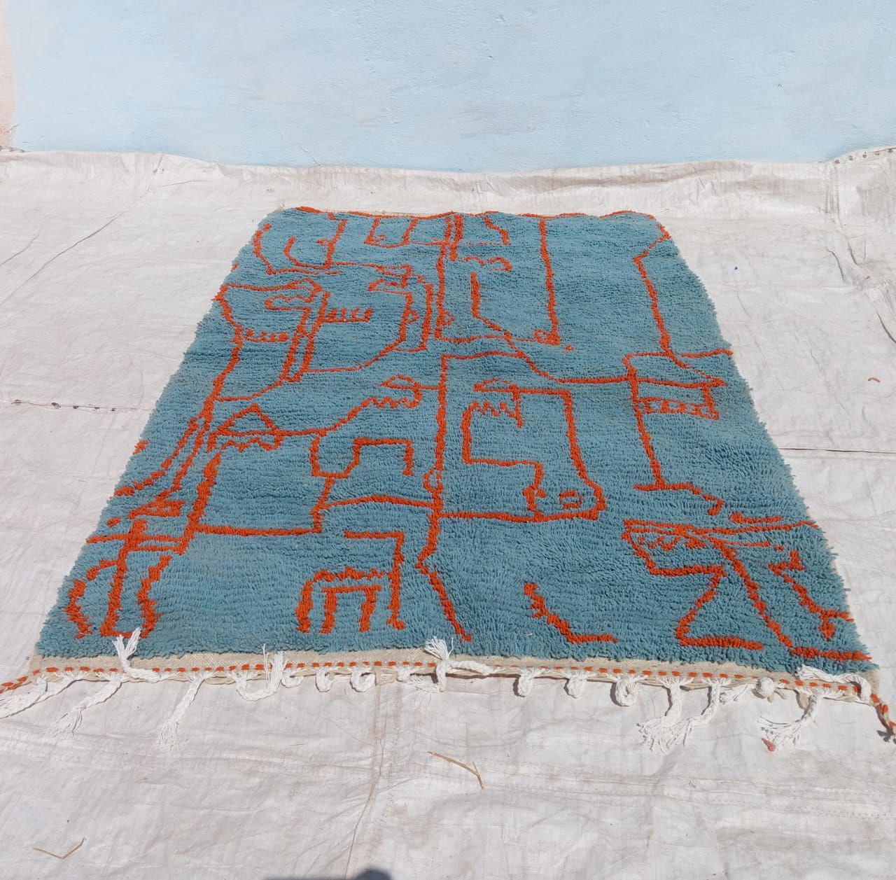 A Moroccan Berber Colorful rug is a traditional handwoven floor covering that originates from the indigenous Berber people of Morocco. These rugs are known for their intricate patterns and bold, geometric designs, which are created using a variety of natural dyes and High-quality Wool. Moroccan boujad rugs are versatile and can be used to add a touch of bohemian chic to any room, from a living room or bedroom to a home office or entryway. They are durable and easy to maintain, making them a practical choice for high-traffic areas. Whether you're looking to add a pop of color to your space or create a warm and welcoming atmosphere, a Moroccan Berber rug is a great choice. 📌 Shipping: insured, trackable, Fast, and FREE Worldwide by FedEx or DHL (2 to 5 days delivery). ❖ Cleaning: all rugs are carefully cleaned before shipping. ❖ Colors: Please take a look at the pictures. ❖ Texture: Moroccan / soft / Shag. ❖ Technique: Hand-Knotted ❖ Construction: Handmade ❖ Location: Indoor Use Only ❖ Material: Your order is made entirely by hand from natural wool, which means there will be natural (and beautiful) variations in pattern and color. Wool shrinks. ❖ Pattern: Because the product is handcrafted, the pattern and Colors may vary slightly from one piece to another. ❖ Size: While we try our best to ensure consistent sizing, it is possible for final sizes to vary by a few inches more or less. ❖ Tassels: One side is the Traditional way of making the rugs. 📌Ships tightly rolled in a protective bag. Any slight creasing will disappear within a few days. Shedding loose fibers is normal with new rugs. Shedding will diminish with regular vacuuming. If you have any questions or queries, please feel free to contact me via messages. orange and blue rug moroccan for boho room,carpet blue/orange area boujaad,rug boho berber blue rug