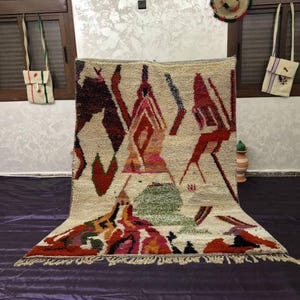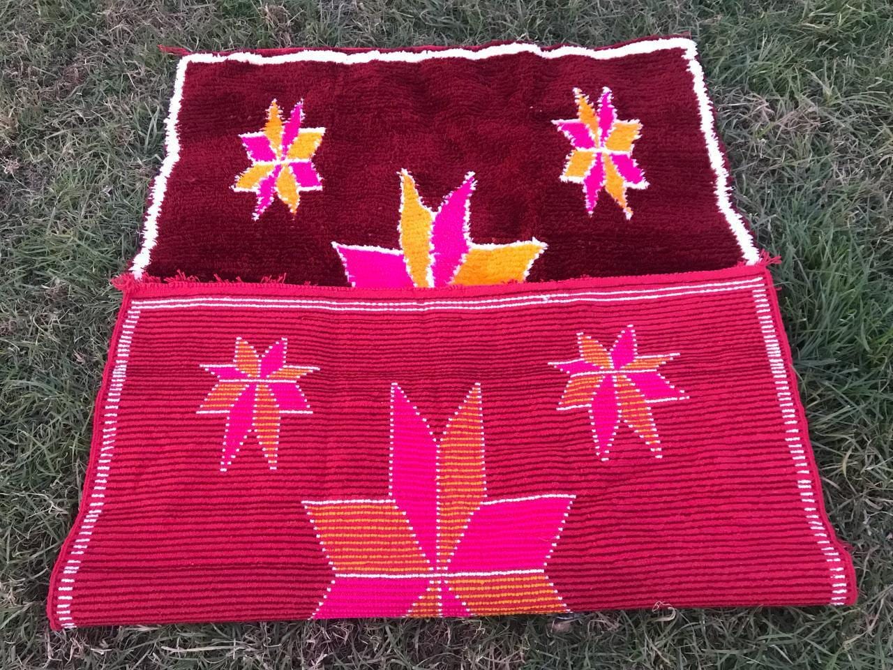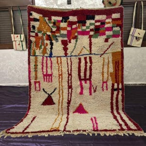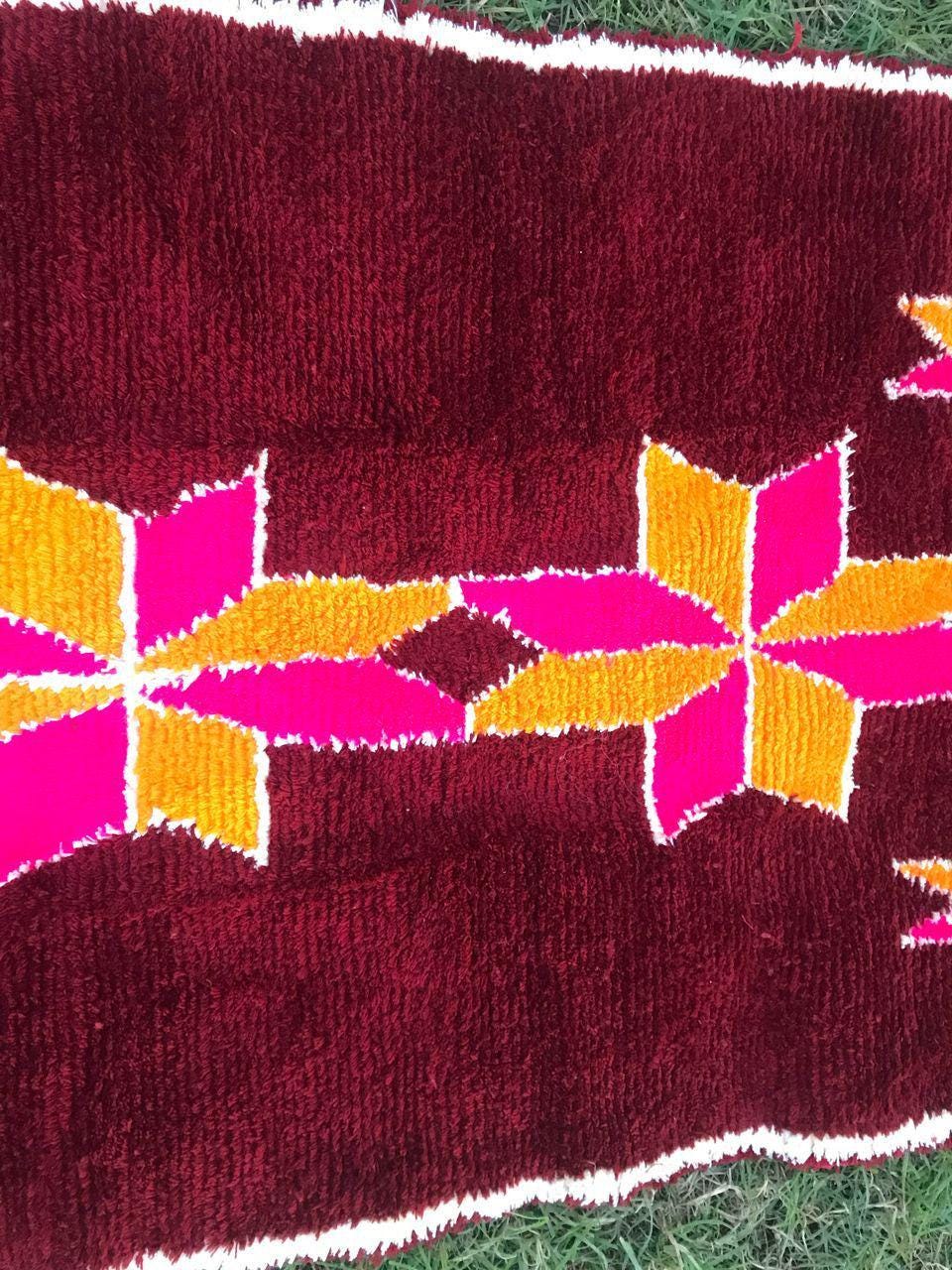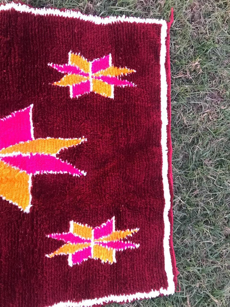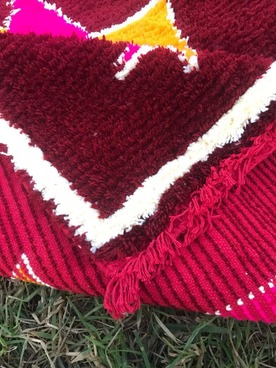 A Moroccan Berber Colorful rug is a traditional handwoven floor covering that originates from the indigenous Berber people of Morocco. These rugs are known for their intricate patterns and bold, geometric designs, which are created using a variety of natural dyes and High-quality Wool. Moroccan boujad rugs are versatile and can be used to add a touch of bohemian chic to any room, from a living room or bedroom to a home office or entryway. They are durable and easy to maintain, making them a practical choice for high-traffic areas. Whether you're looking to add a pop of color to your space or create a warm and welcoming atmosphere, a Moroccan Berber rug is a great choice. 📌 Shipping: insured, trackable, Fast, and FREE Worldwide by FedEx or DHL (2 to 5 days delivery). ❖ Cleaning: all rugs are carefully cleaned before shipping. ❖ Colors: Please take a look at the pictures. ❖ Texture: Moroccan / soft / Shag. ❖ Technique: Hand-Knotted ❖ Construction: Handmade ❖ Location: Indoor Use Only ❖ Material: Your order is made entirely by hand from natural wool, which means there will be natural (and beautiful) variations in pattern and color. Wool shrinks. ❖ Pattern: Because the product is handcrafted, the pattern and Colors may vary slightly from one piece to another. ❖ Size: While we try our best to ensure consistent sizing, it is possible for final sizes to vary by a few inches more or less. ❖ Tassels: One side is the Traditional way of making the rugs. 📌Ships tightly rolled in a protective bag. Any slight creasing will disappear within a few days. Shedding loose fibers is normal with new rugs. Shedding will diminish with regular vacuuming. If you have any questions or queries, please feel free to contact me via messages. red and pink rug berber wool moroccan,red rug living room boho moroccan,boujaad rug red berber