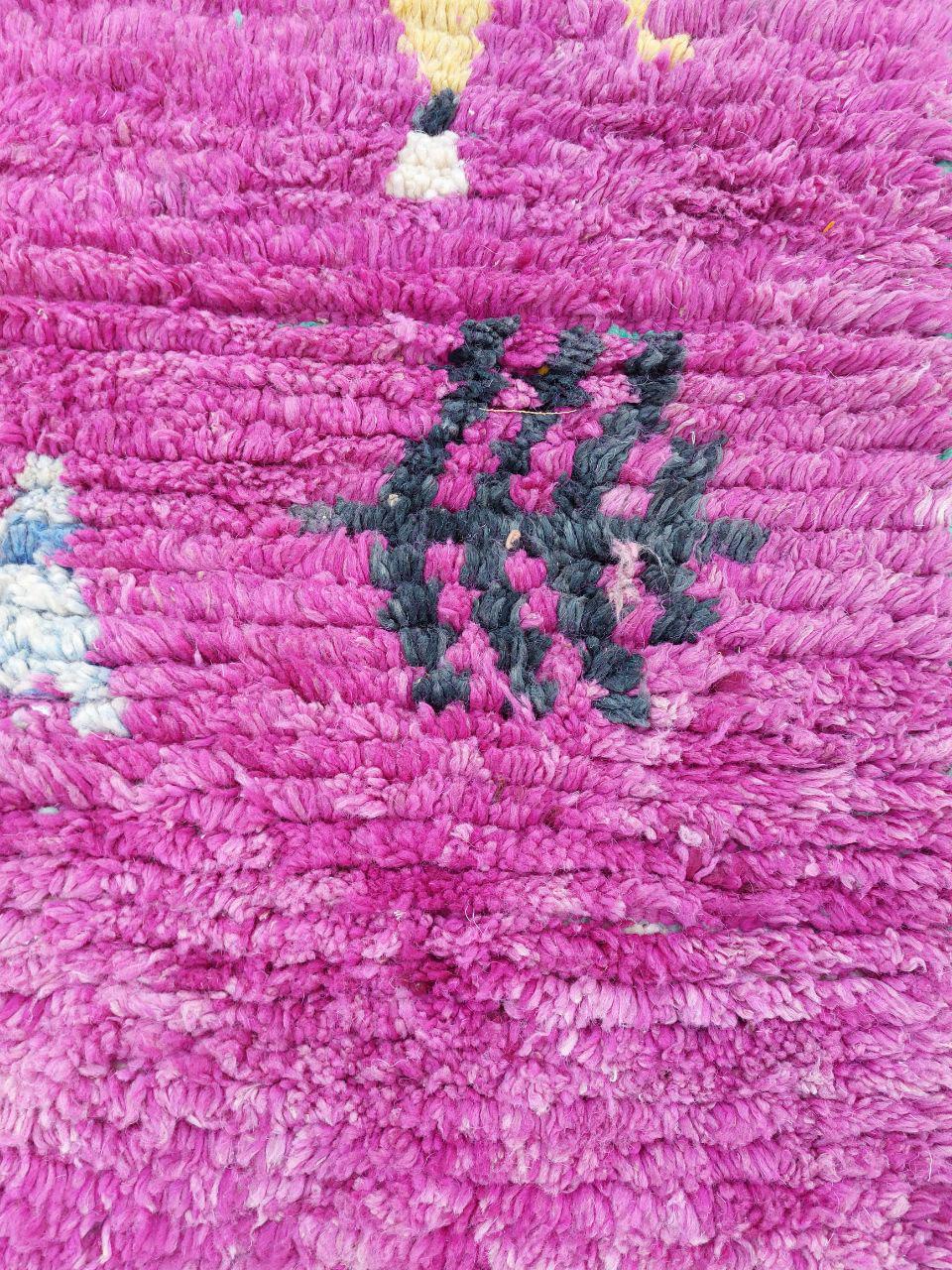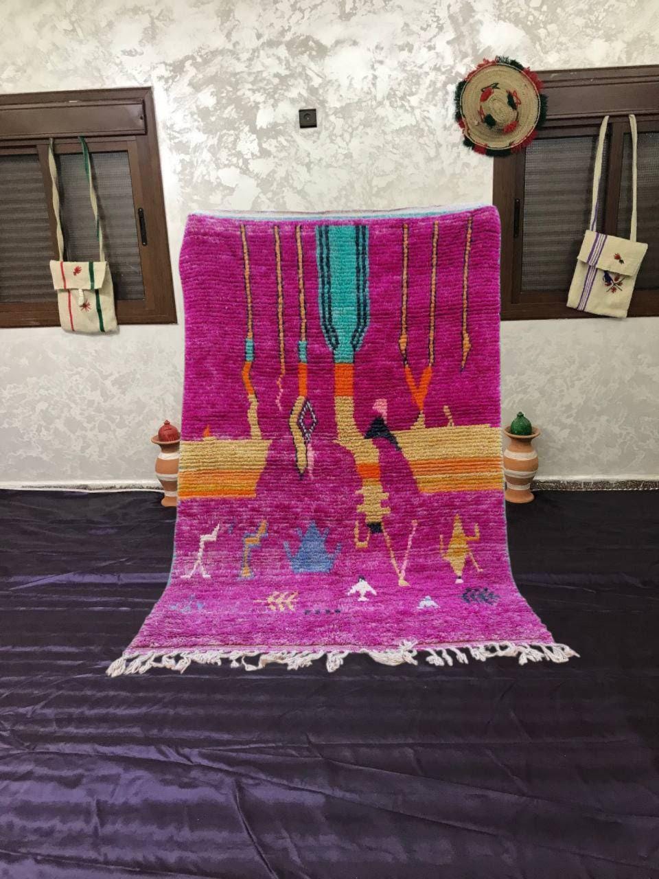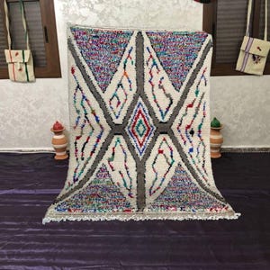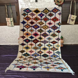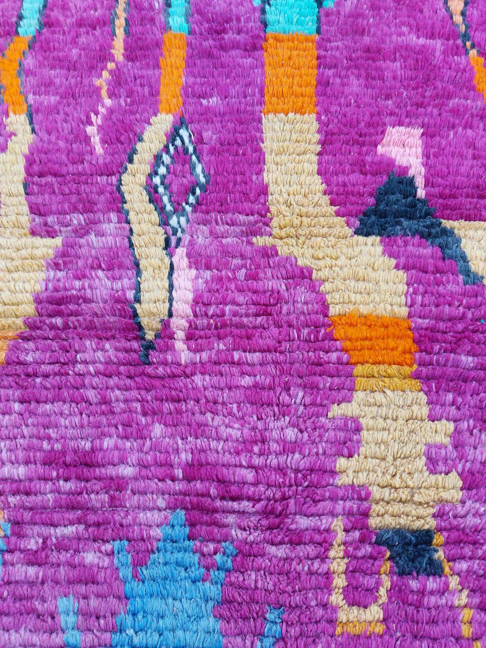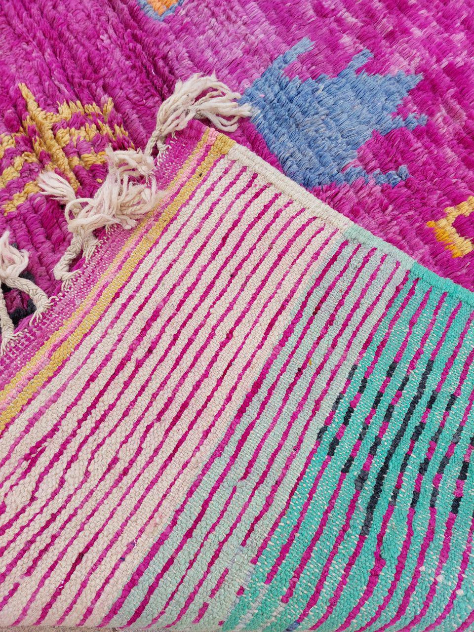 A Moroccan Berber Colorful rug is a traditional handwoven floor covering that originates from the indigenous Berber people of Morocco. These rugs are known for their intricate patterns and bold, geometric designs, which are created using a variety of natural dyes and High-quality Wool. Moroccan boujad rugs are versatile and can be used to add a touch of bohemian chic to any room, from a living room or bedroom to a home office or entryway. They are durable and easy to maintain, making them a practical choice for high-traffic areas. Whether you're looking to add a pop of color to your space or create a warm and welcoming atmosphere, a Moroccan Berber rug is a great choice.