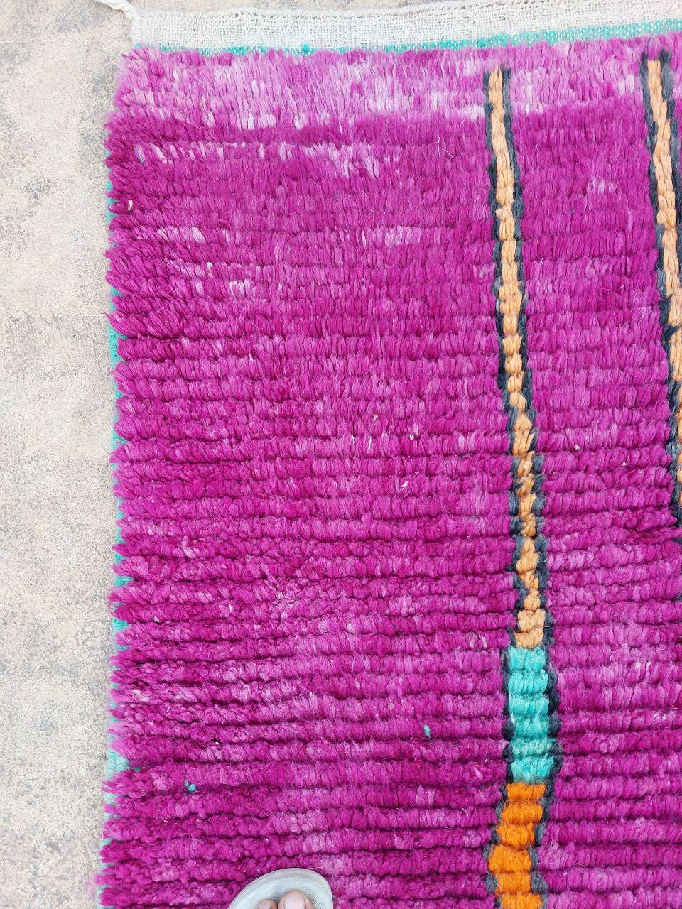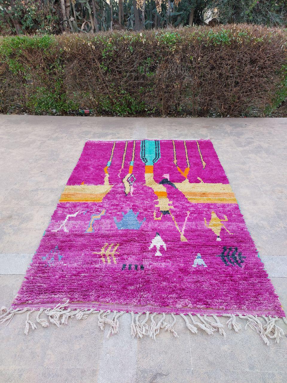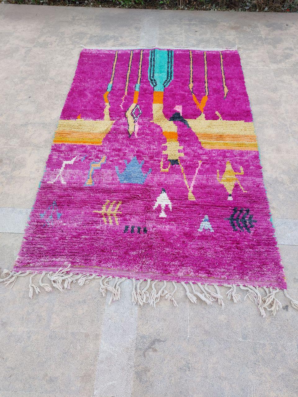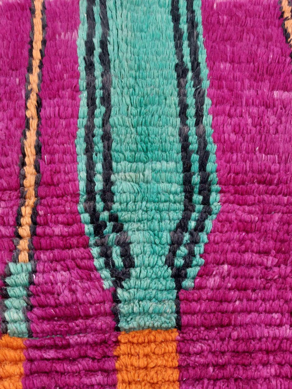 A Moroccan Berber Colorful rug is a traditional handwoven floor covering that originates from the indigenous Berber people of Morocco. These rugs are known for their intricate patterns and bold, geometric designs, which are created using a variety of natural dyes and High-quality Wool. Moroccan boujad rugs are versatile and can be used to add a touch of bohemian chic to any room, from a living room or bedroom to a home office or entryway. They are durable and easy to maintain, making them a practical choice for high-traffic areas. Whether you're looking to add a pop of color to your space or create a warm and welcoming atmosphere, a Moroccan Berber rug is a great choice.
