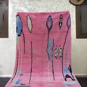 Hand-Knotted pink rug azilal Rug: Colorful Pink Dots moroccan , Authentic Berber Wool rug