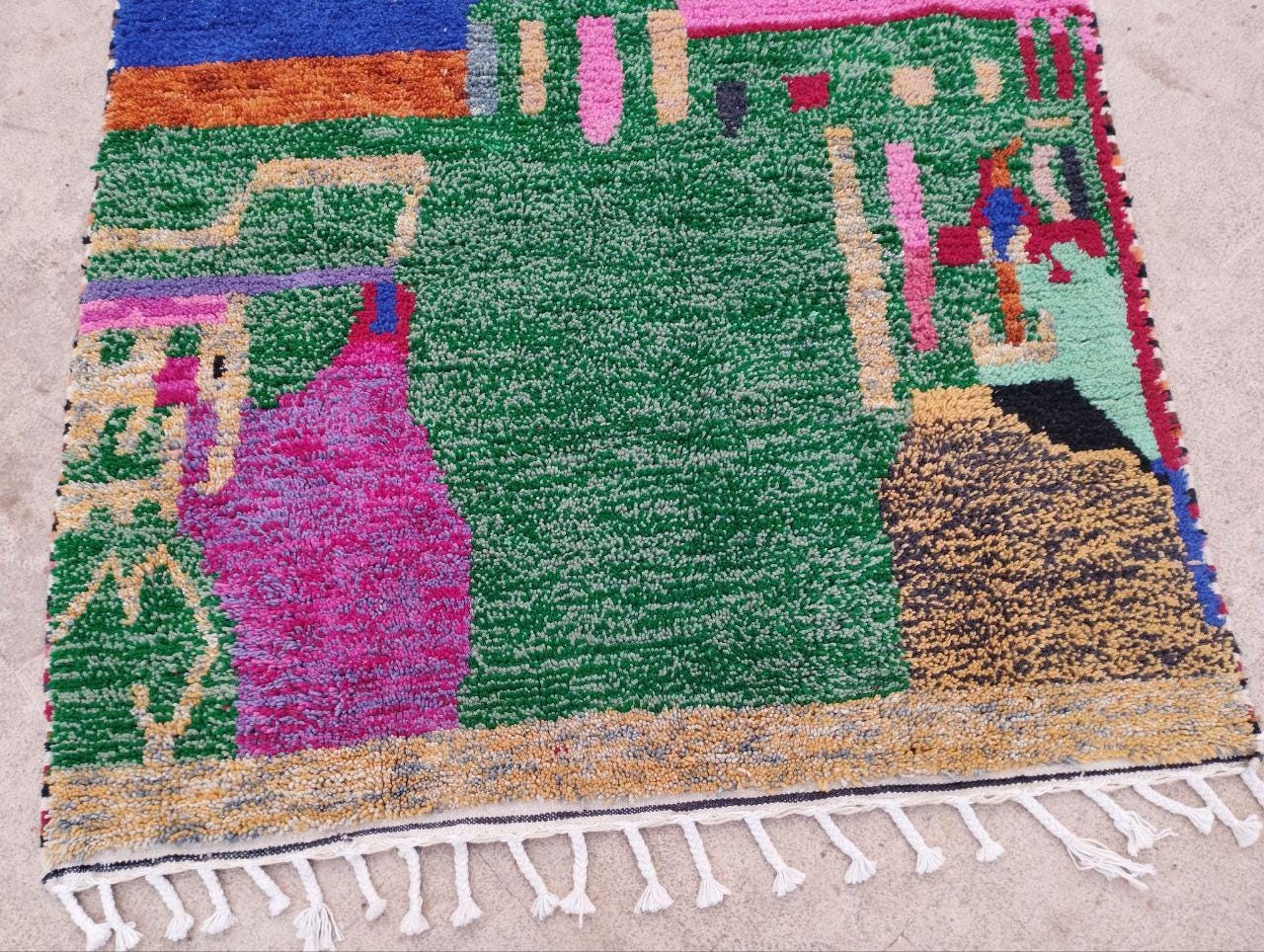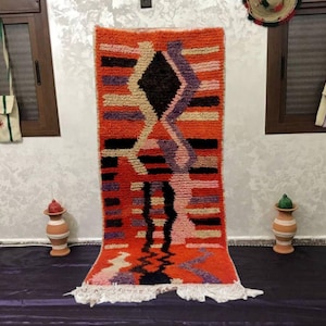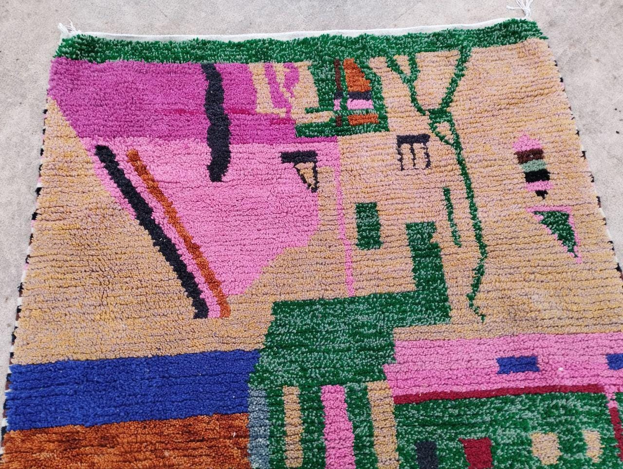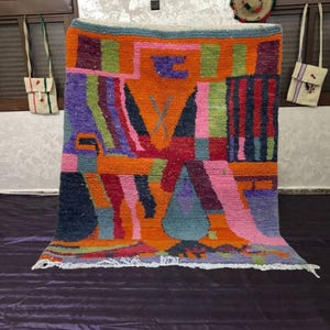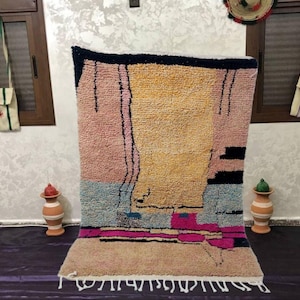 A Moroccan Berber Colorful rug is a traditional handwoven floor covering that originates from the indigenous Berber people of Morocco. These rugs are known for their intricate patterns and bold, geometric designs, which are created using a variety of natural dyes and High-quality Wool. Moroccan boujad rugs are versatile and can be used to add a touch of bohemian chic to any room, from a living room or bedroom to a home office or entryway. They are durable and easy to maintain, making them a practical choice for high-traffic areas. Whether you're looking to add a pop of color to your space or create a warm and welcoming atmosphere, a Moroccan Berber rug is a great choice. 📌 Shipping: insured, trackable, Fast, and FREE Worldwide by FedEx or DHL (2 to 5 days delivery). ❖ Cleaning: all rugs are carefully cleaned before shipping. ❖ Colors: Please take a look at the pictures. ❖ Texture: Moroccan / soft / Shag. ❖ Technique: Hand-Knotted ❖ Construction: Handmade ❖ Location: Indoor Use Only ❖ Material: Your order is made entirely by hand from natural wool, which means there will be natural (and beautiful) variations in pattern and color. Wool shrinks. ❖ Pattern: Because the product is handcrafted, the pattern and Colors may vary slightly from one piece to another. ❖ Size: While we try our best to ensure consistent sizing, it is possible for final sizes to vary by a few inches more or less. ❖ Tassels: One side is the Traditional way of making the rugs. 📌Ships tightly rolled in a protective bag. Any slight creasing will disappear within a few days. Shedding loose fibers is normal with new rugs. Shedding will diminish with regular vacuuming. If you have any questions or queries, please feel free to contact me via messages.