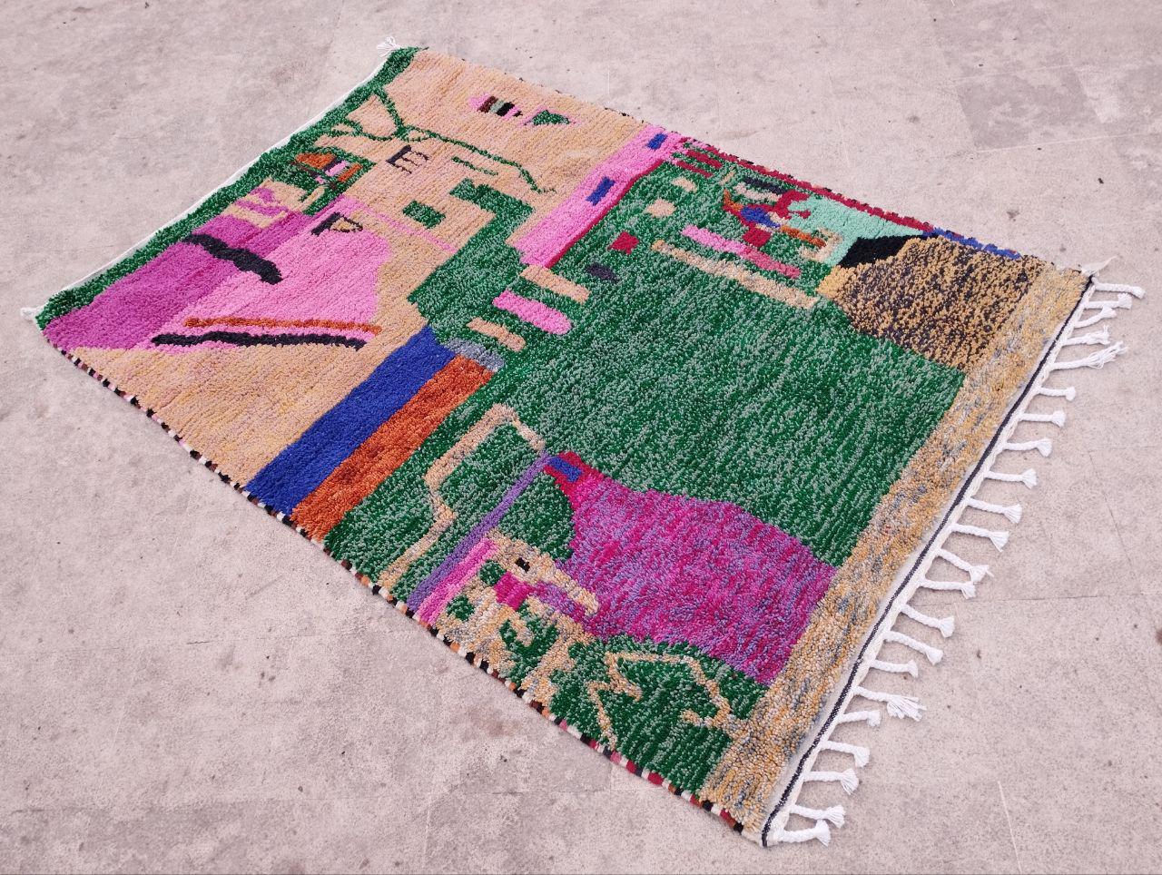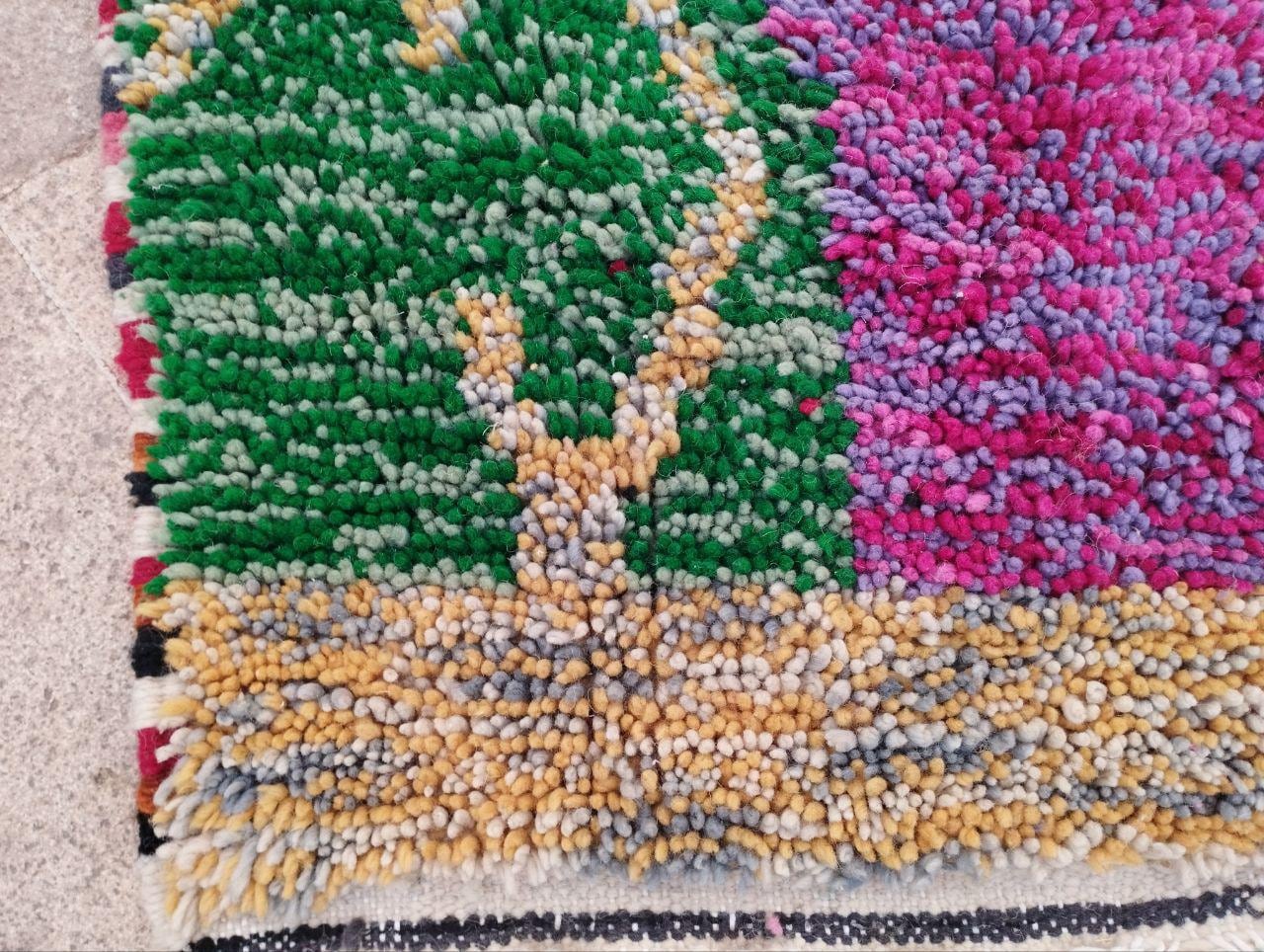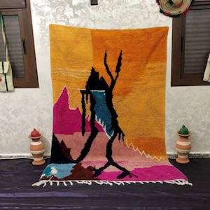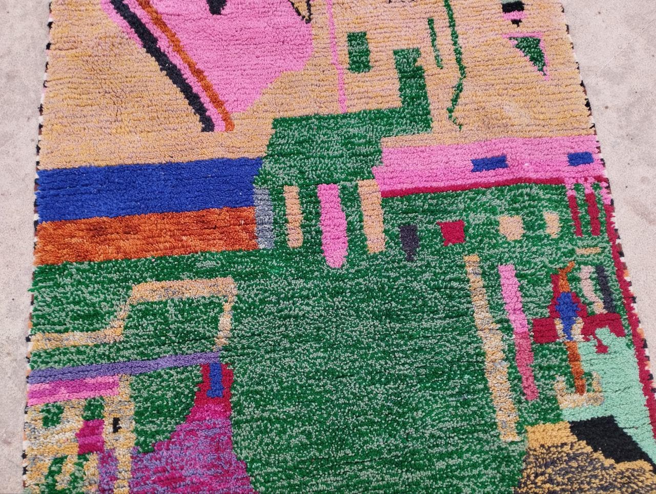 A Moroccan Berber Colorful rug is a traditional handwoven floor covering that originates from the indigenous Berber people of Morocco. These rugs are known for their intricate patterns and bold, geometric designs, which are created using a variety of natural dyes and High-quality Wool. Moroccan boujad rugs are versatile and can be used to add a touch of bohemian chic to any room, from a living room or bedroom to a home office or entryway. They are durable and easy to maintain, making them a practical choice for high-traffic areas. Whether you're looking to add a pop of color to your space or create a warm and welcoming atmosphere, a Moroccan Berber rug is a great choice. 📌 Shipping: insured, trackable, Fast, and FREE Worldwide by FedEx or DHL (2 to 5 days delivery). ❖ Cleaning: all rugs are carefully cleaned before shipping. ❖ Colors: Please take a look at the pictures. ❖ Texture: Moroccan / soft / Shag. ❖ Technique: Hand-Knotted ❖ Construction: Handmade ❖ Location: Indoor Use Only ❖ Material: Your order is made entirely by hand from natural wool, which means there will be natural (and beautiful) variations in pattern and color. Wool shrinks. ❖ Pattern: Because the product is handcrafted, the pattern and Colors may vary slightly from one piece to another. ❖ Size: While we try our best to ensure consistent sizing, it is possible for final sizes to vary by a few inches more or less. ❖ Tassels: One side is the Traditional way of making the rugs. 📌Ships tightly rolled in a protective bag. Any slight creasing will disappear within a few days. Shedding loose fibers is normal with new rugs. Shedding will diminish with regular vacuuming. If you have any questions or queries, please feel free to contact me via messages.