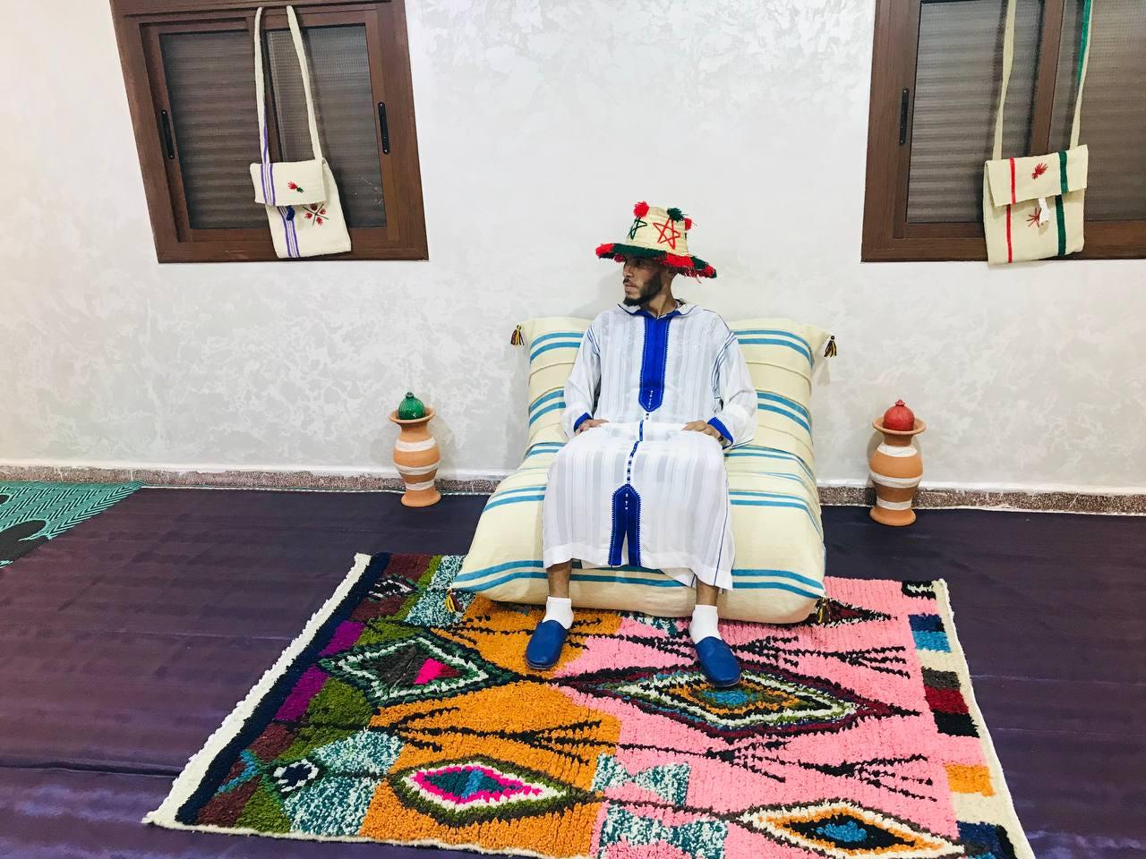 Bring warmth and comfort into your favorite space with this handmade Moroccan wool floor seat from rugaziz. Inspired by traditional Arabic majlis style, this versatile piece can easily become your new favorite spot to relax, read, or lounge.