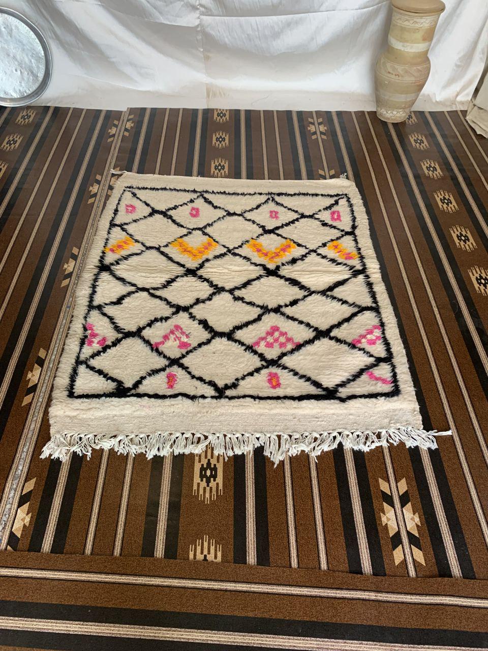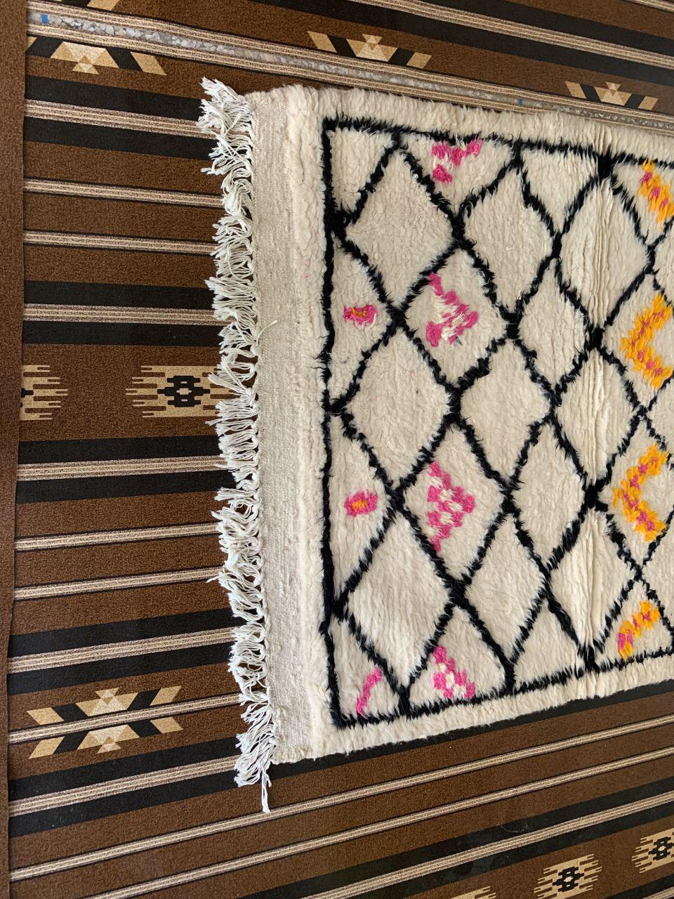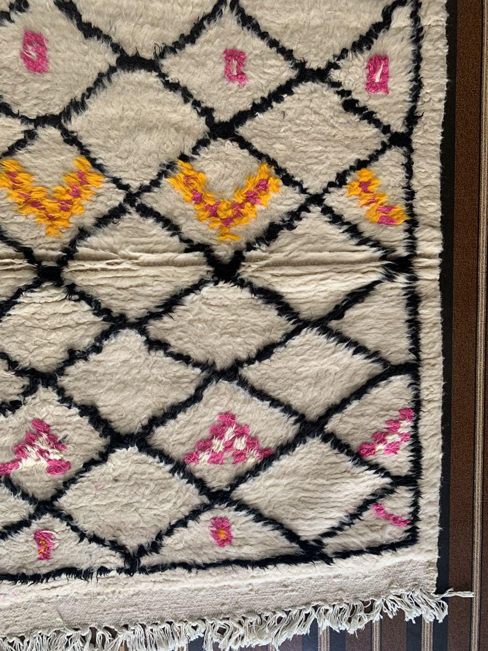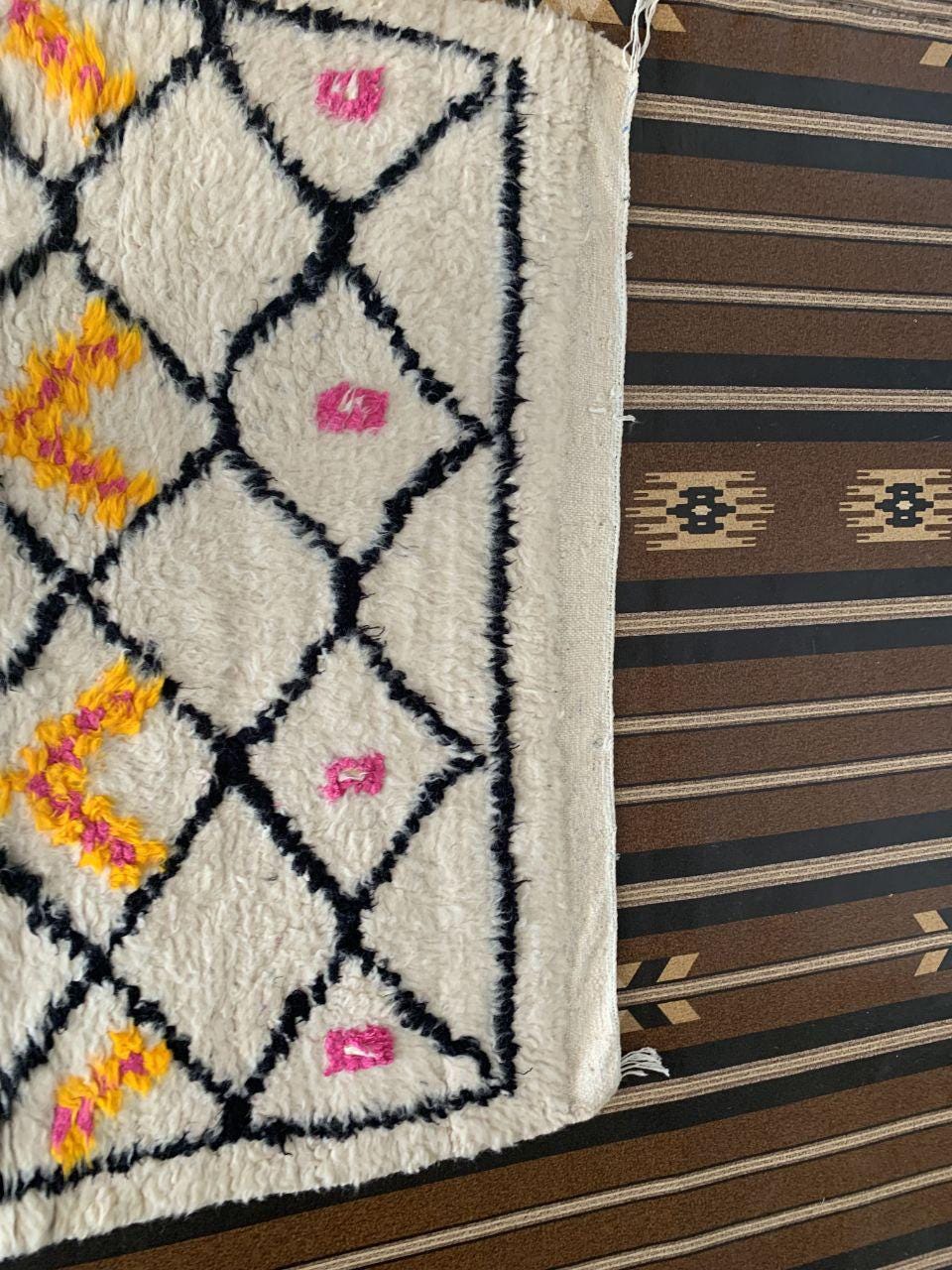 A Moroccan Berber Colorful rug is a traditional handwoven floor covering that originates from the indigenous Berber people of Morocco. These rugs are known for their intricate patterns and bold, geometric designs, which are created using a variety of natural dyes and High-quality Wool. Moroccan boujad rugs are versatile and can be used to add a touch of bohemian chic to any room, from a living room or bedroom to a home office or entryway. They are durable and easy to maintain, making them a practical choice for high-traffic areas. Whether you're looking to add a pop of color to your space or create a warm and welcoming atmosphere, a Moroccan Berber rug is a great choice. 📌 Shipping: insured, trackable, Fast, and FREE Worldwide by FedEx or DHL (2 to 5 days delivery). ❖ Cleaning: all rugs are carefully cleaned before shipping. ❖ Colors: Please take a look at the pictures. ❖ Texture: Moroccan / soft / Shag. ❖ Technique: Hand-Knotted ❖ Construction: Handmade ❖ Location: Indoor Use Only ❖ Material: Your order is made entirely by hand from natural wool, which means there will be natural (and beautiful) variations in pattern and color. Wool shrinks. ❖ Pattern: Because the product is handcrafted, the pattern and Colors may vary slightly from one piece to another. ❖ Size: While we try our best to ensure consistent sizing, it is possible for final sizes to vary by a few inches more or less. ❖ Tassels: One side is the Traditional way of making the rugs. 📌Ships tightly rolled in a protective bag. Any slight creasing will disappear within a few days. Shedding loose fibers is normal with new rugs. Shedding will diminish with regular vacuuming. If you have any questions or queries, please feel free to contact me via messages.