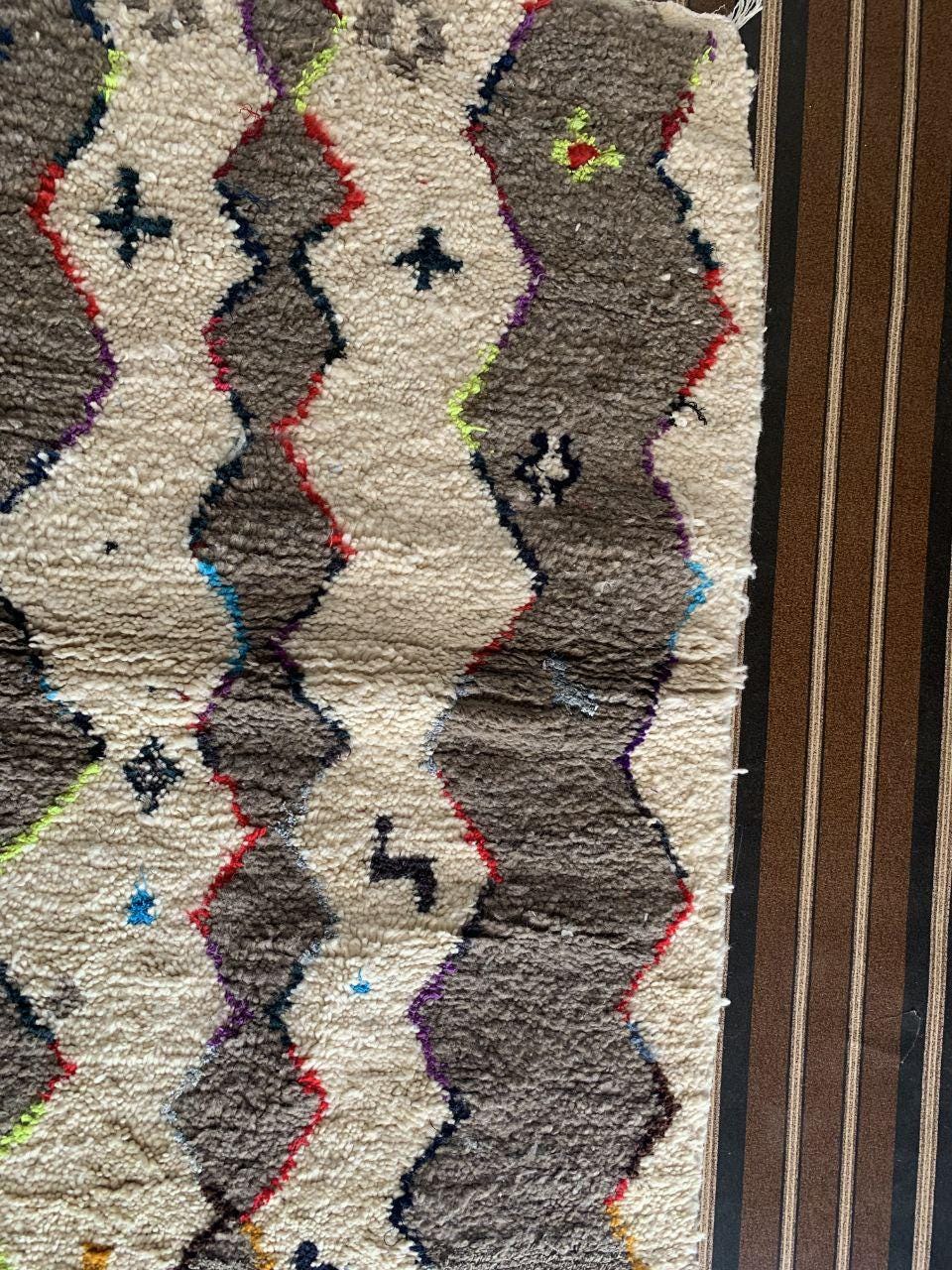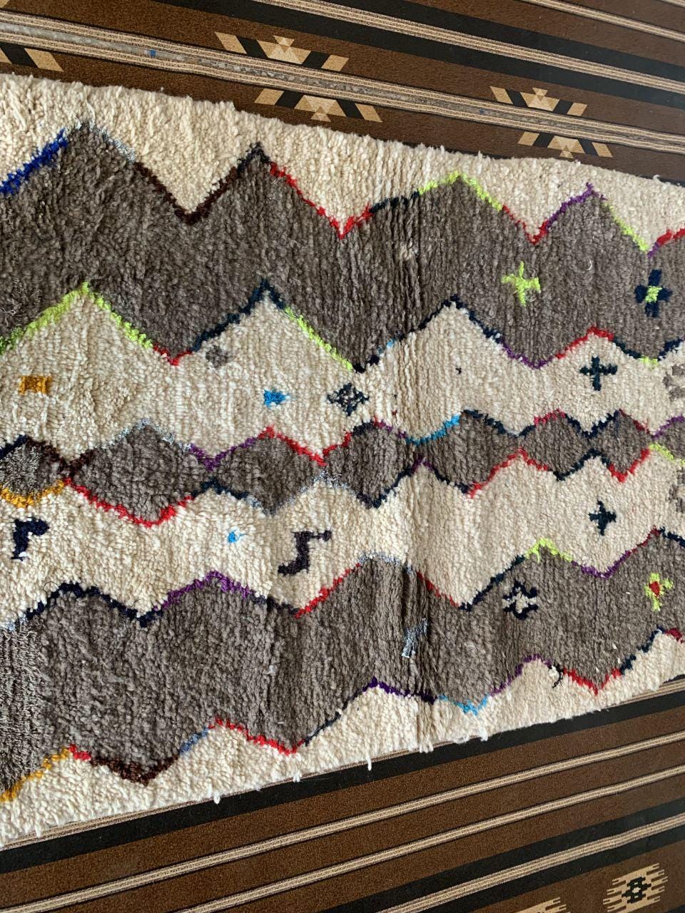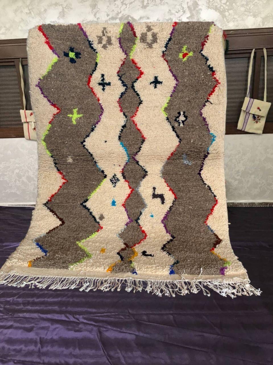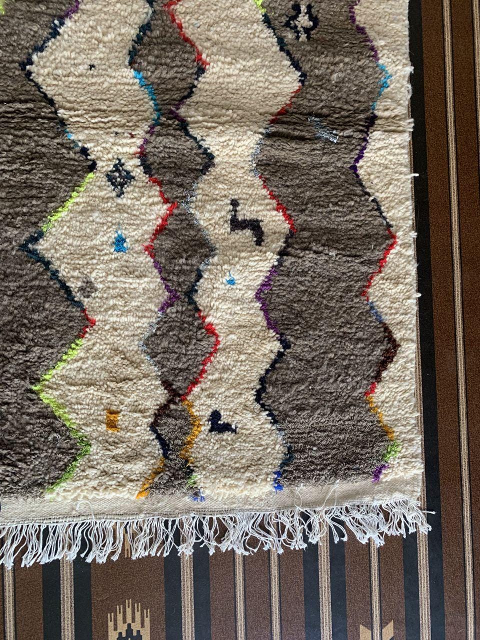 A Moroccan Berber Colorful rug is a traditional handwoven floor covering that originates from the indigenous Berber people of Morocco. These rugs are known for their intricate patterns and bold, geometric designs, which are created using a variety of natural dyes and High-quality Wool. Moroccan boujad rugs are versatile and can be used to add a touch of bohemian chic to any room, from a living room or bedroom to a home office or entryway. They are durable and easy to maintain, making them a practical choice for high-traffic areas. Whether you're looking to add a pop of color to your space or create a warm and welcoming atmosphere, a Moroccan Berber rug is a great choice. 📌 Shipping: insured, trackable, Fast, and FREE Worldwide by FedEx or DHL (2 to 5 days delivery). ❖ Cleaning: all rugs are carefully cleaned before shipping. ❖ Colors: Please take a look at the pictures. ❖ Texture: Moroccan / soft / Shag. ❖ Technique: Hand-Knotted ❖ Construction: Handmade ❖ Location: Indoor Use Only ❖ Material: Your order is made entirely by hand from natural wool, which means there will be natural (and beautiful) variations in pattern and color. Wool shrinks. ❖ Pattern: Because the product is handcrafted, the pattern and Colors may vary slightly from one piece to another. ❖ Size: While we try our best to ensure consistent sizing, it is possible for final sizes to vary by a few inches more or less. ❖ Tassels: One side is the Traditional way of making the rugs. 📌Ships tightly rolled in a protective bag. Any slight creasing will disappear within a few days. Shedding loose fibers is normal with new rugs. Shedding will diminish with regular vacuuming. If you have any questions or queries, please feel free to contact me via messages.