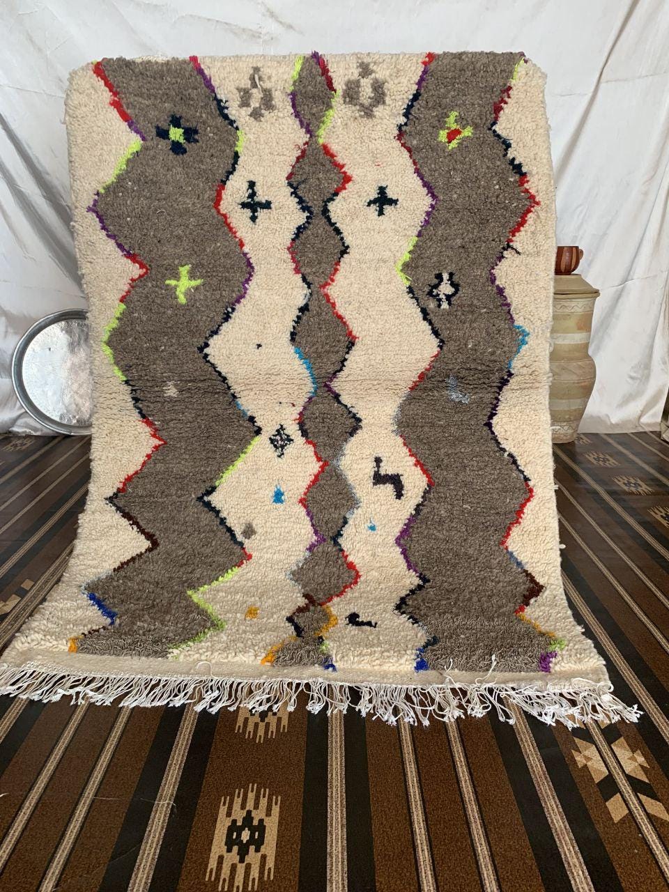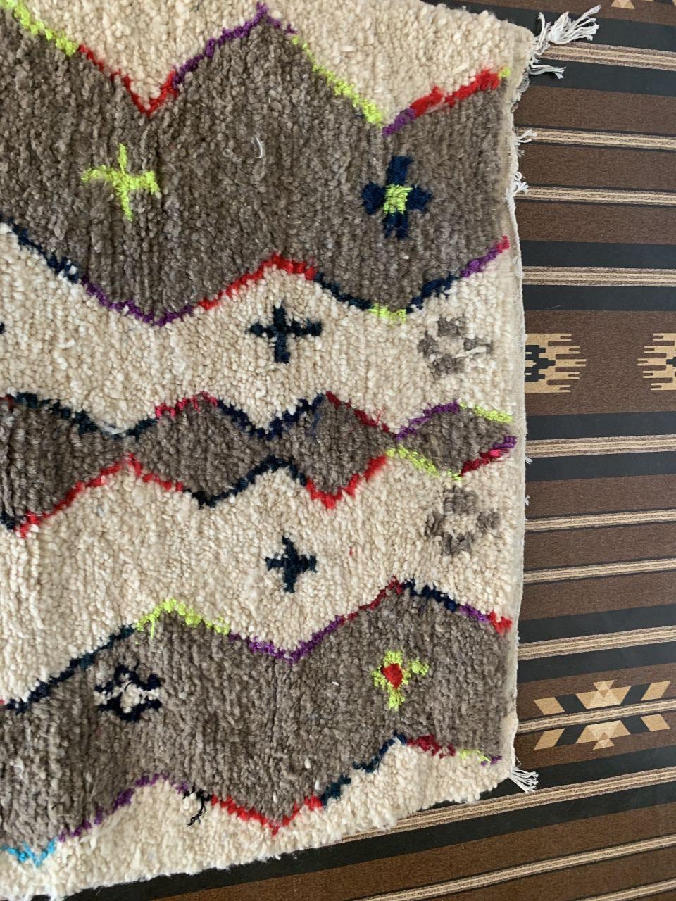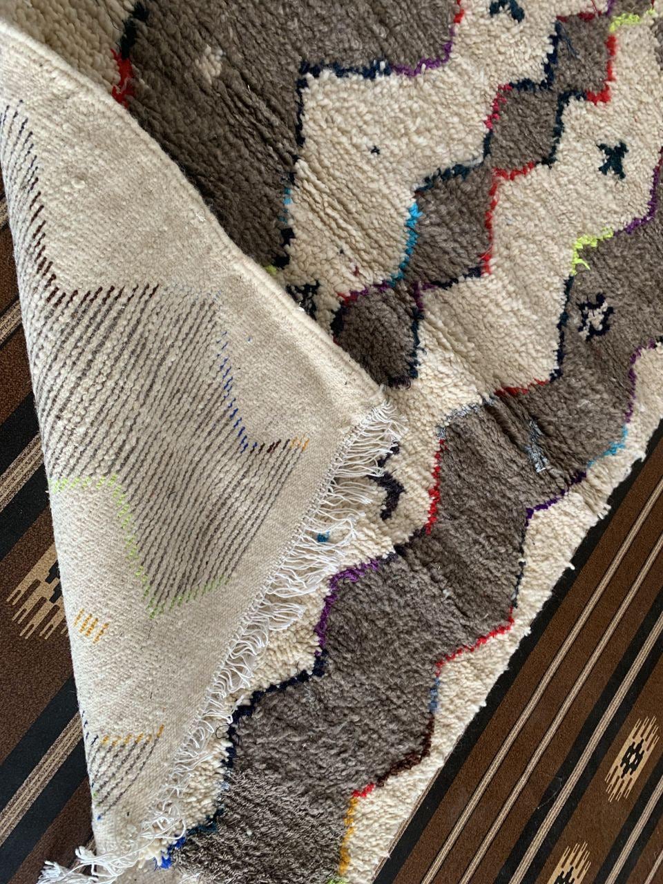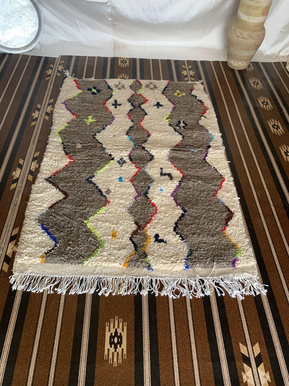 A Moroccan Berber Colorful rug is a traditional handwoven floor covering that originates from the indigenous Berber people of Morocco. These rugs are known for their intricate patterns and bold, geometric designs, which are created using a variety of natural dyes and High-quality Wool. Moroccan boujad rugs are versatile and can be used to add a touch of bohemian chic to any room, from a living room or bedroom to a home office or entryway. They are durable and easy to maintain, making them a practical choice for high-traffic areas. Whether you're looking to add a pop of color to your space or create a warm and welcoming atmosphere, a Moroccan Berber rug is a great choice. 📌 Shipping: insured, trackable, Fast, and FREE Worldwide by FedEx or DHL (2 to 5 days delivery). ❖ Cleaning: all rugs are carefully cleaned before shipping. ❖ Colors: Please take a look at the pictures. ❖ Texture: Moroccan / soft / Shag. ❖ Technique: Hand-Knotted ❖ Construction: Handmade ❖ Location: Indoor Use Only ❖ Material: Your order is made entirely by hand from natural wool, which means there will be natural (and beautiful) variations in pattern and color. Wool shrinks. ❖ Pattern: Because the product is handcrafted, the pattern and Colors may vary slightly from one piece to another. ❖ Size: While we try our best to ensure consistent sizing, it is possible for final sizes to vary by a few inches more or less. ❖ Tassels: One side is the Traditional way of making the rugs. 📌Ships tightly rolled in a protective bag. Any slight creasing will disappear within a few days. Shedding loose fibers is normal with new rugs. Shedding will diminish with regular vacuuming. If you have any questions or queries, please feel free to contact me via messages.
