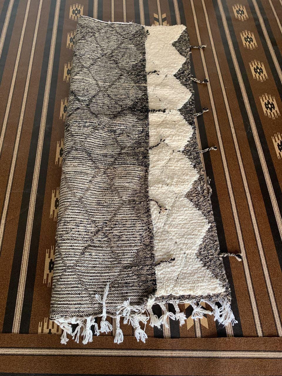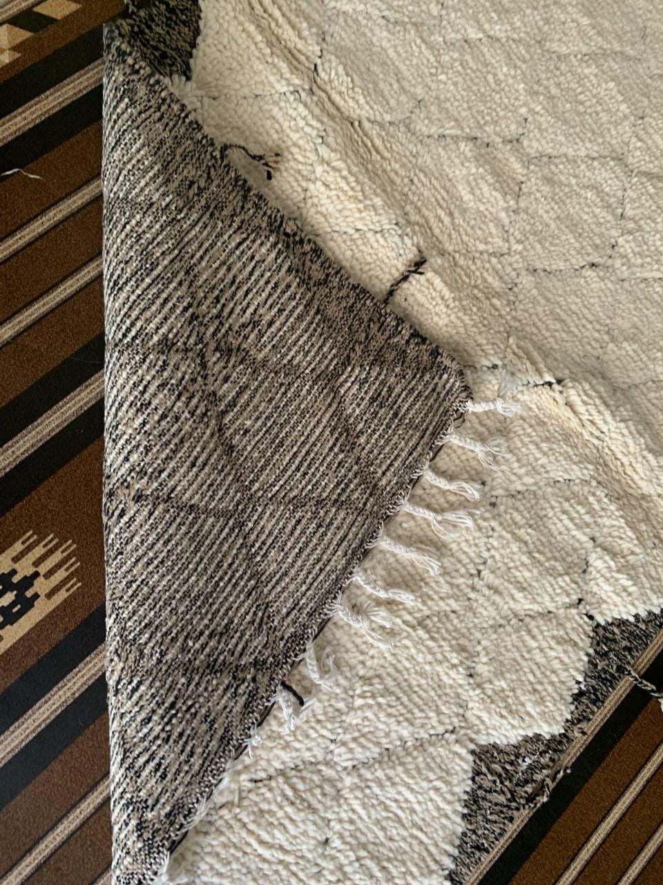 Moroccan boujad rugs are durable, easy to maintain, and a perfect fit for high-traffic spaces. A boho rug black pattern can bring just the right touch of cozy to your living room, bedroom, entryway, or home office. Every rug is made entirely by hand using traditional hand-knotted techniques, ensuring natural variations in pattern and color. Please note that because they’re handmade, final sizes and colors may vary slightly.
