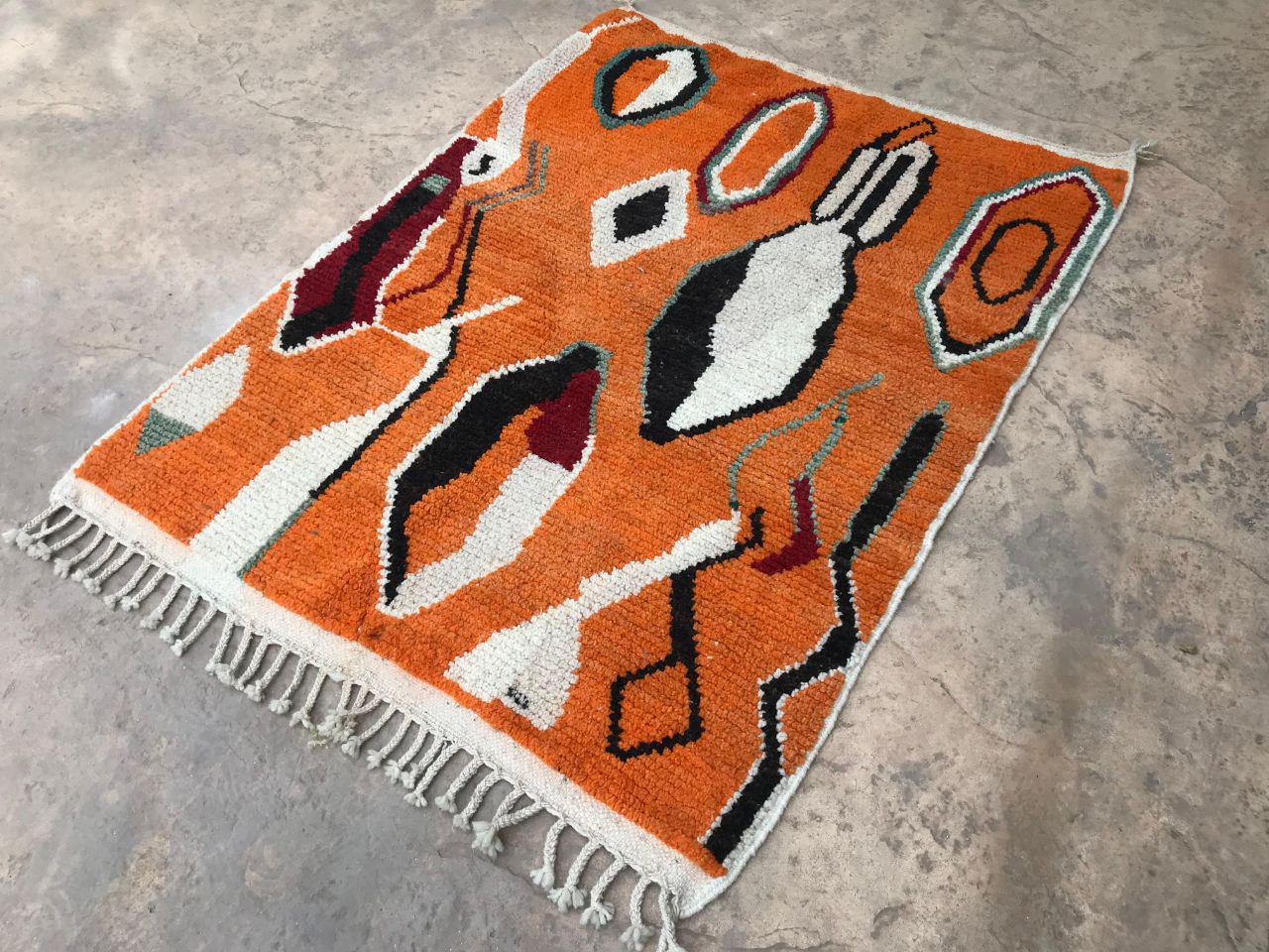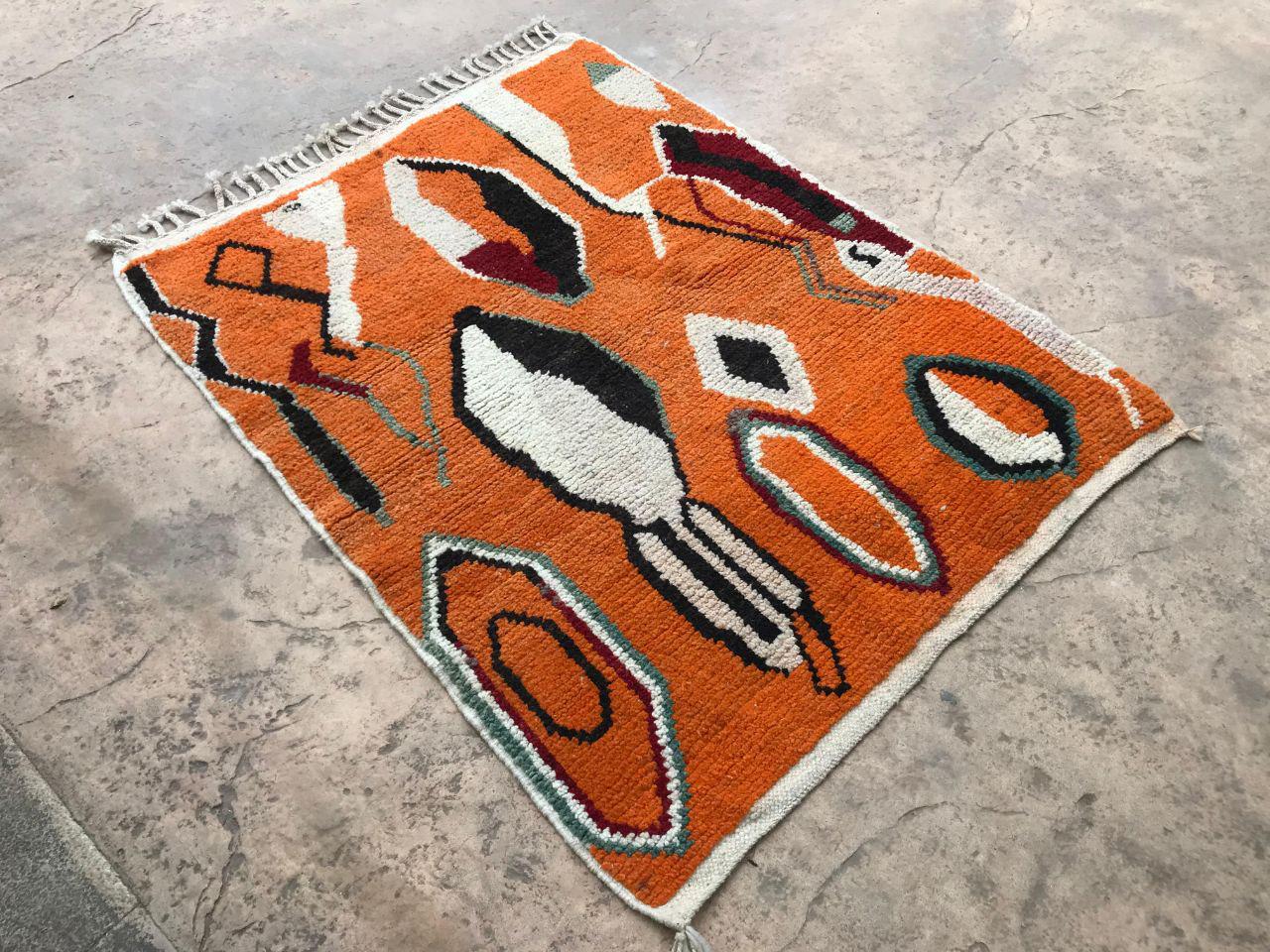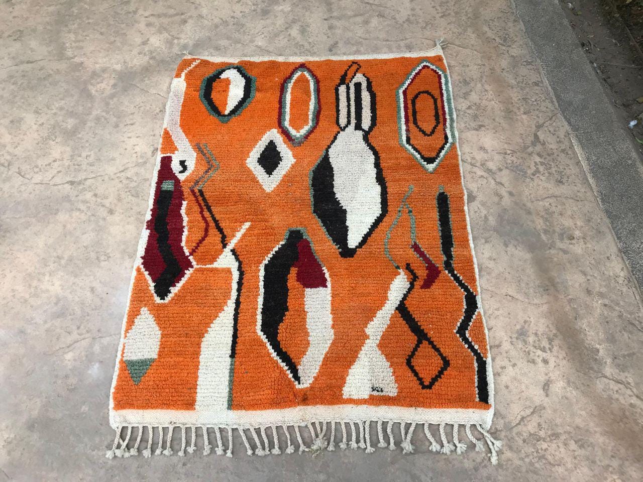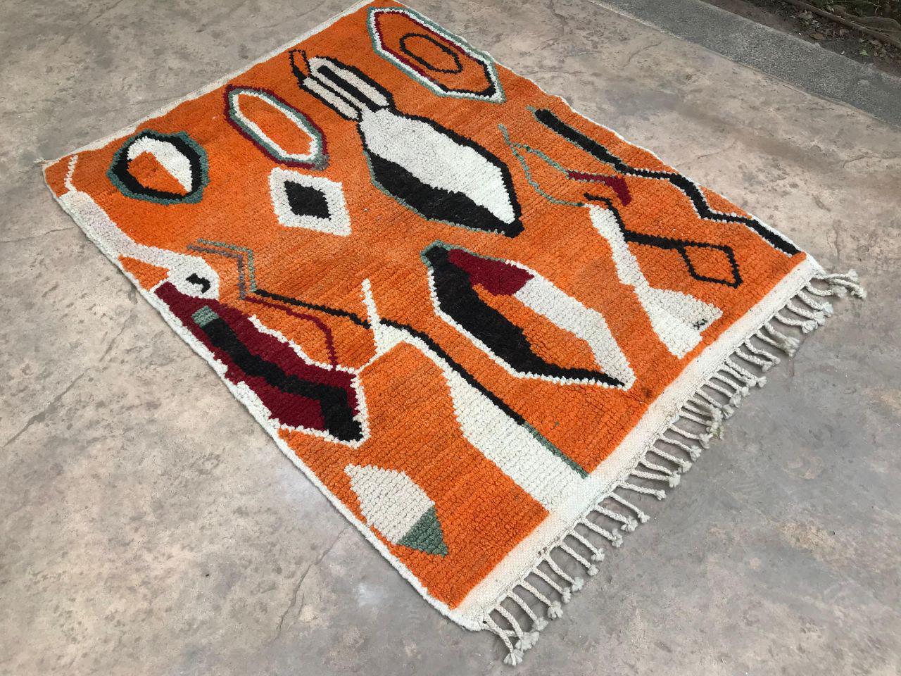A Moroccan Berber colorful rug is a traditional handwoven floor covering that originates from the indigenous Berber people of Morocco. Each rugaziz piece features intricate patterns and bold, geometric designs, using a variety of natural dyes and high-quality wool. These rugs are a standout for anyone looking for an orange rug that brings character to your space and serves as a versatile area rug. Whether you're after a living room rug or seeking unique rugs for living room spaces, this boho rug living room style adds a touch of bohemian charm to any setting—from your living room to a bedroom, home office, or entryway.