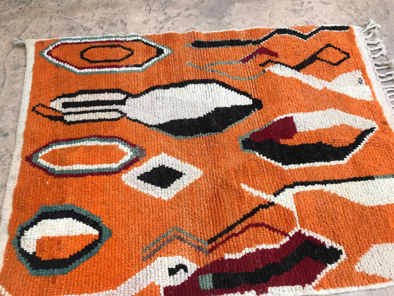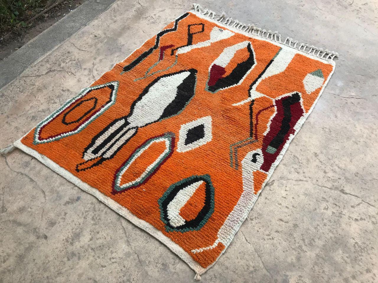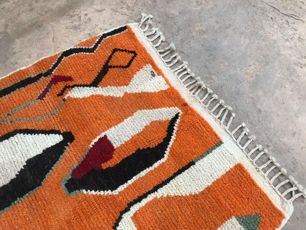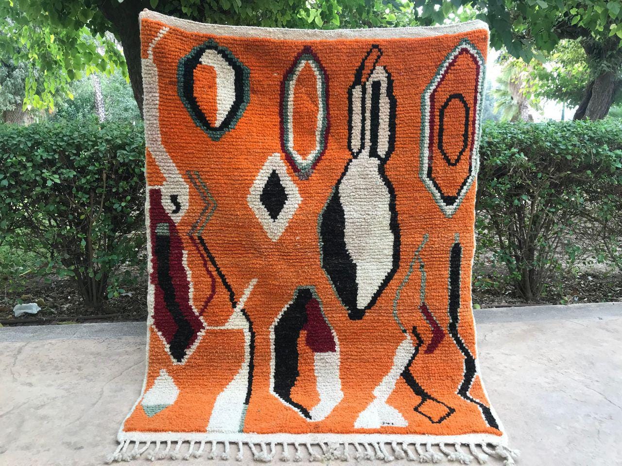 A Moroccan Berber colorful rug is a traditional handwoven floor covering that originates from the indigenous Berber people of Morocco. Each rugaziz piece features intricate patterns and bold, geometric designs, using a variety of natural dyes and high-quality wool. These rugs are a standout for anyone looking for an orange rug that brings character to your space and serves as a versatile area rug. Whether you're after a living room rug or seeking unique rugs for living room spaces, this boho rug living room style adds a touch of bohemian charm to any setting—from your living room to a bedroom, home office, or entryway.