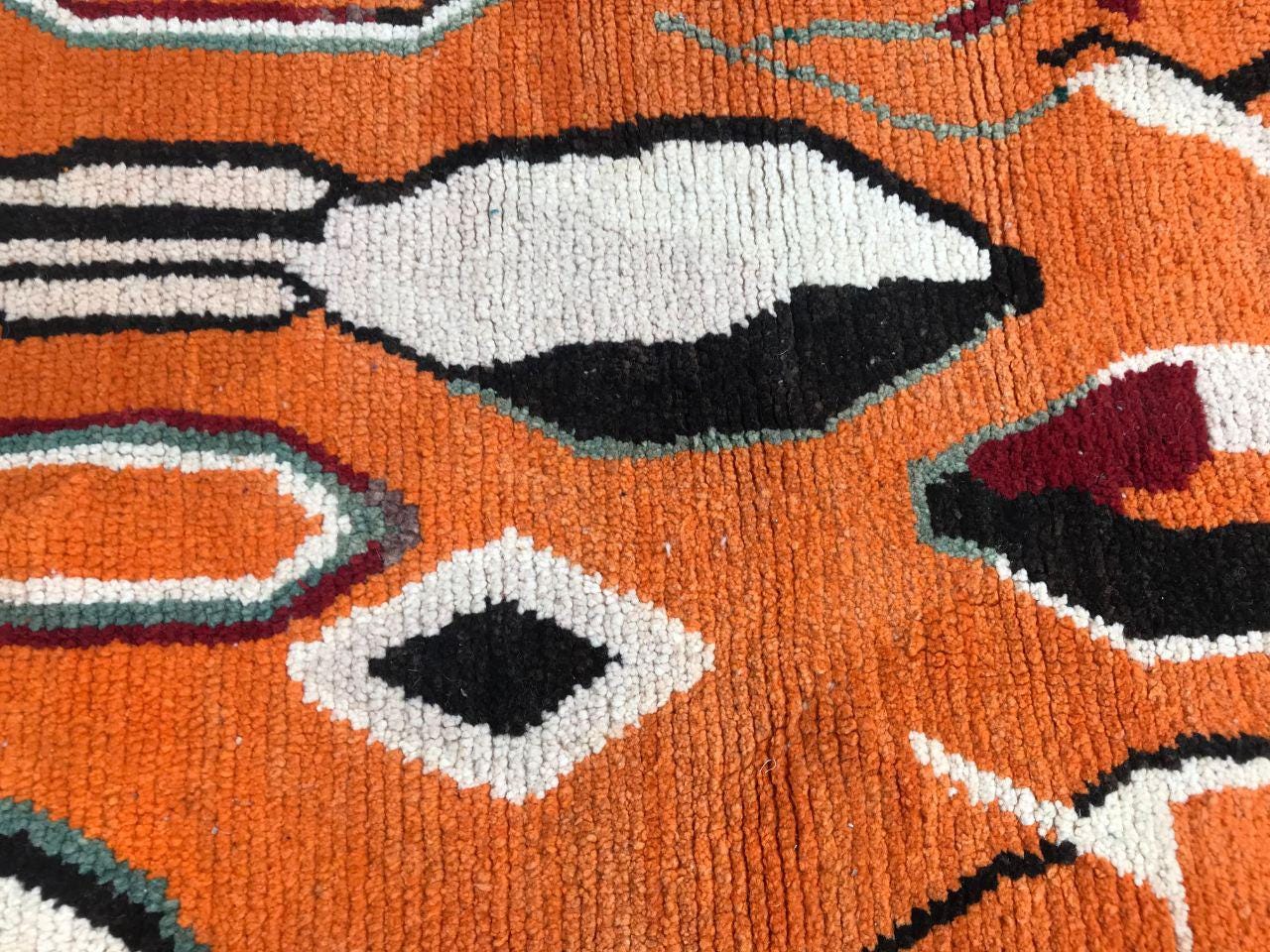 Moroccan Boujaad rugs are durable, easy to maintain, and perfect if you’re in need of a shag rug living room solution or a wool rug living room accent. Their plush texture feels soft underfoot, and each rug, like the rug living room 8x10 and the wavy rug living room designs, is hand-knotted for quality that lasts. The rich orange color stands out, while the occasional hint of rug living room teal complements a variety of decor styles, especially in spaces that call for rugs for living room or rug canada selections. If you’re looking for an arae rug that can brighten a high-traffic area or create a welcoming atmosphere, this wavy rug living room option fits right in.