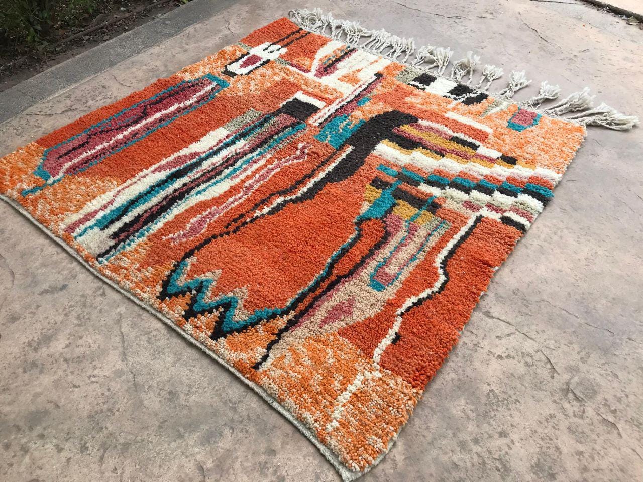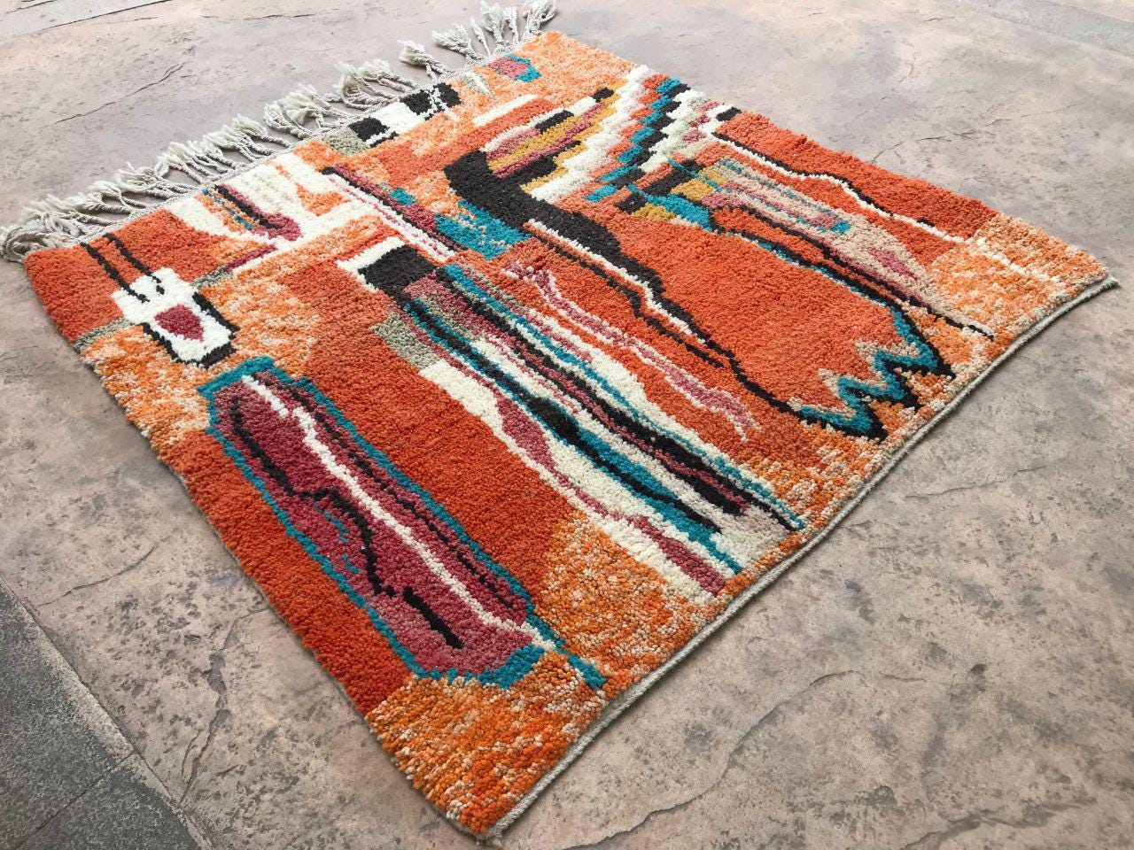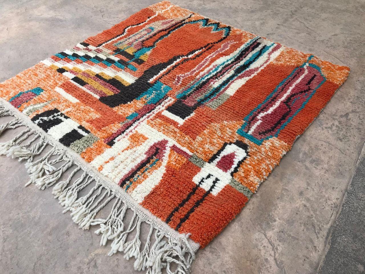 A Moroccan Berber colorful rug from rugaziz brings the charm of traditional Moroccan craftsmanship into your home. Each piece is inspired by the classic moroccan rug pattern, known for bold, graphic rugs with rich design. The orange moroccan rug features burnt orange tones that warm up any space and give your living room decor or rugs in bedroom a unique update.