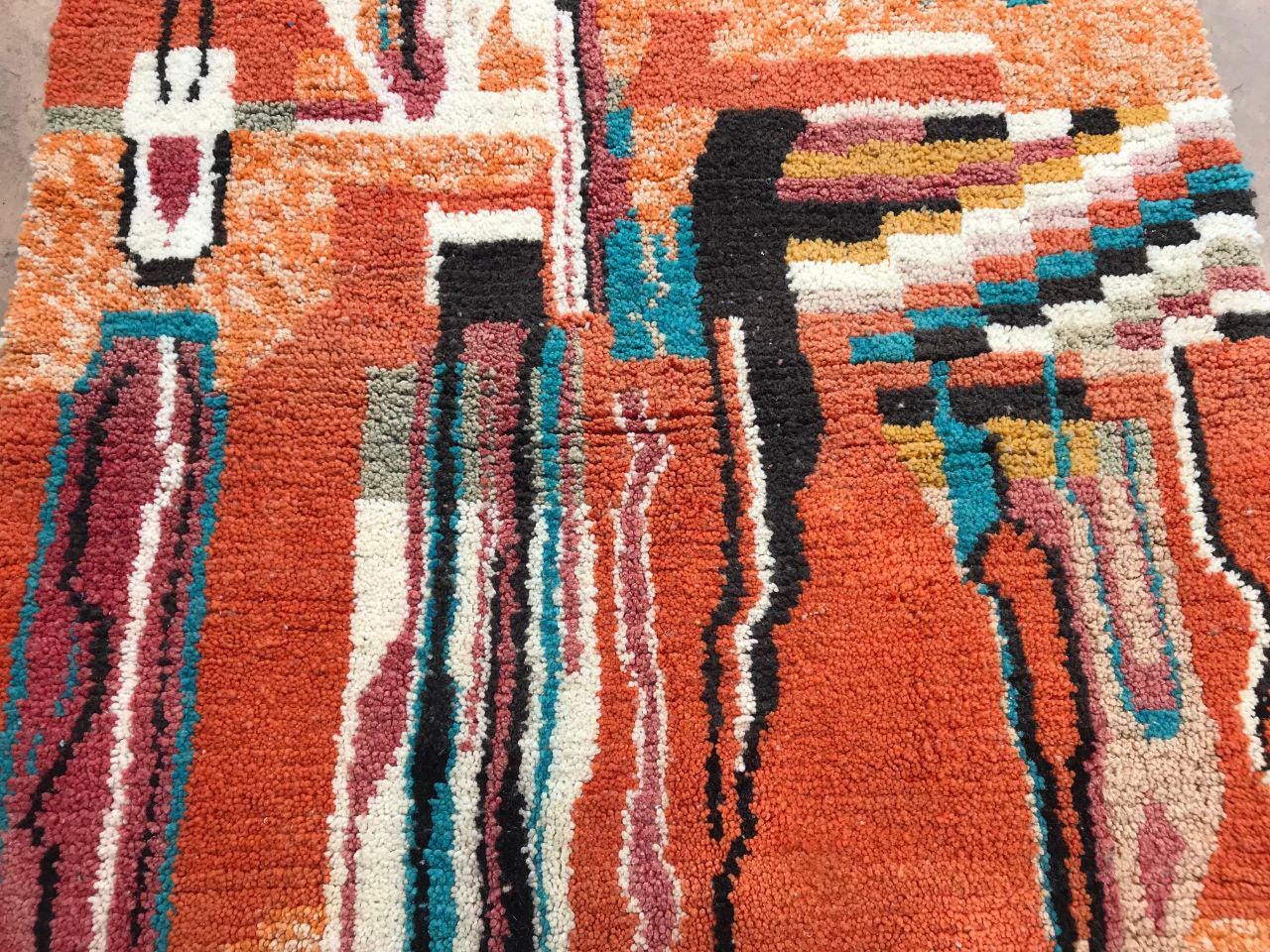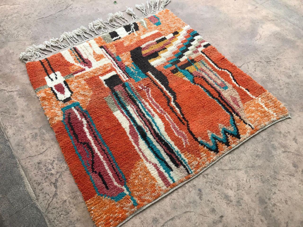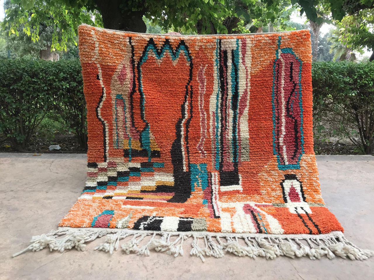 A Moroccan Berber colorful rug from rugaziz brings the charm of traditional Moroccan craftsmanship into your home. Each piece is inspired by the classic moroccan rug pattern, known for bold, graphic rugs with rich design. The orange moroccan rug features burnt orange tones that warm up any space and give your living room decor or rugs in bedroom a unique update.