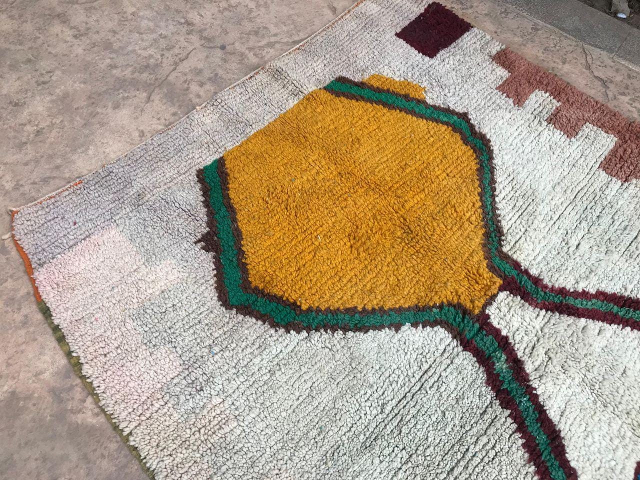 You’ll find this Moroccan rug is versatile enough to complement any space—use it as a living room rug, a carpet to elevate your bedroom, or even as a rug for bedroom spaces that need a pop of color and warmth. The durable craftsmanship ensures that this handmade rug stands up well in high-traffic areas, offering both style and practicality.