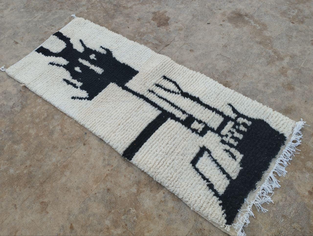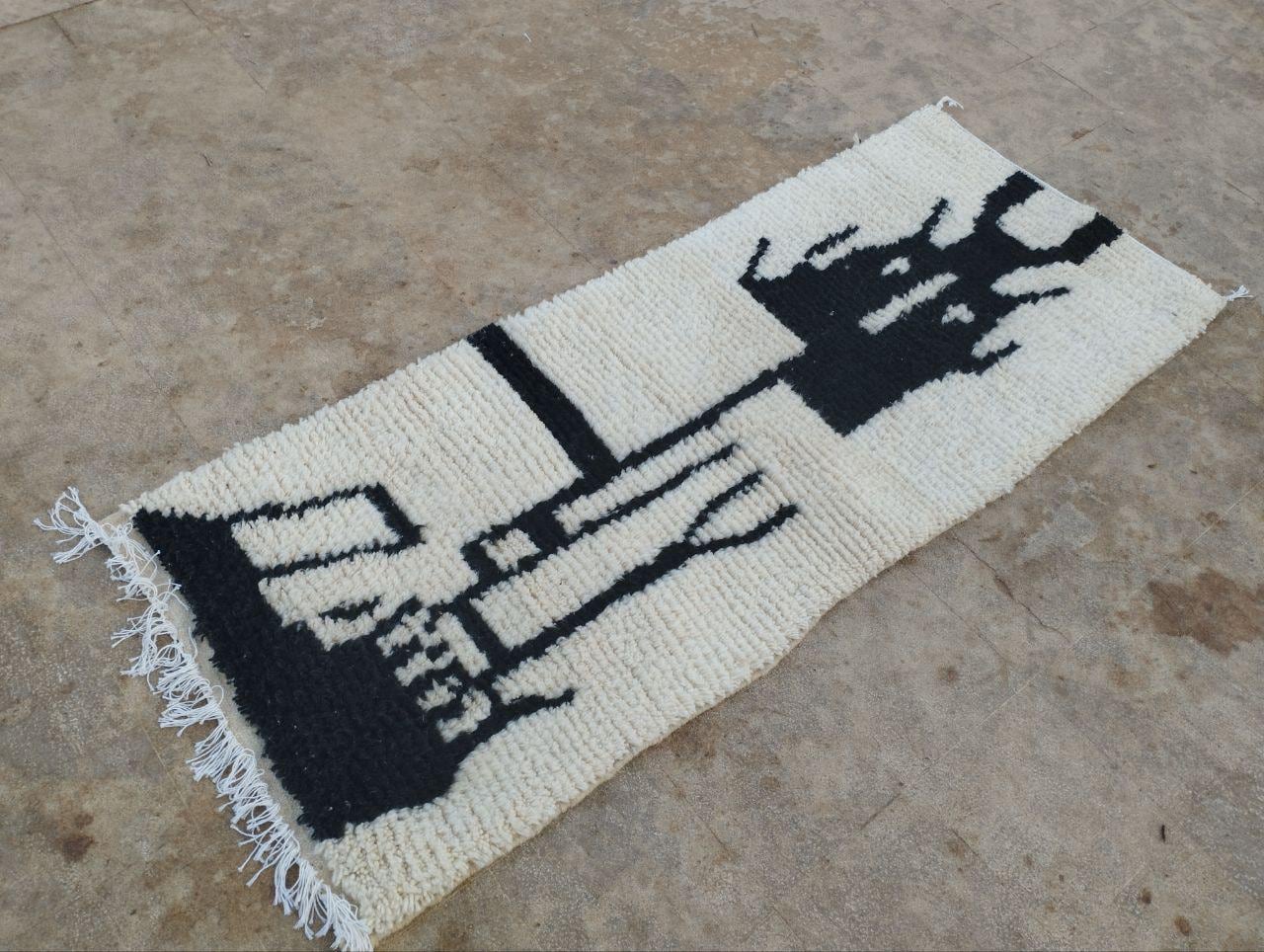 gift for boho lovers,wool floor rug moroccan white and black,sofa rug berber rugaziz moroccan,wool rug living room boho area