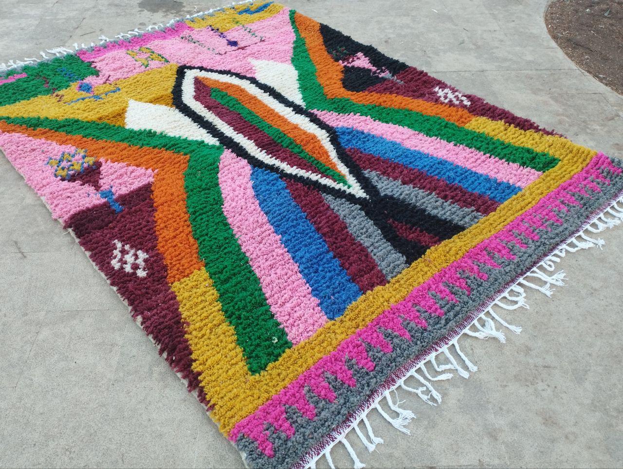 A Moroccan Berber colorful rug, like the ones from rugaziz, is a traditional, hand made carpet that’s created by the indigenous Berber people of Morocco. These authentic rugs, including the sought-after moroccan boujaad rug and vintage boujaad rug, are famous for their intricate patterns and bold, geometric designs produced with natural dyes and high-quality wool. Whether you choose a peach moroccan rug or a fluffy colorful rug, you’ll enjoy a unique touch of bohemian moroccan wool rug, beni ourain 5x8 character in any space.