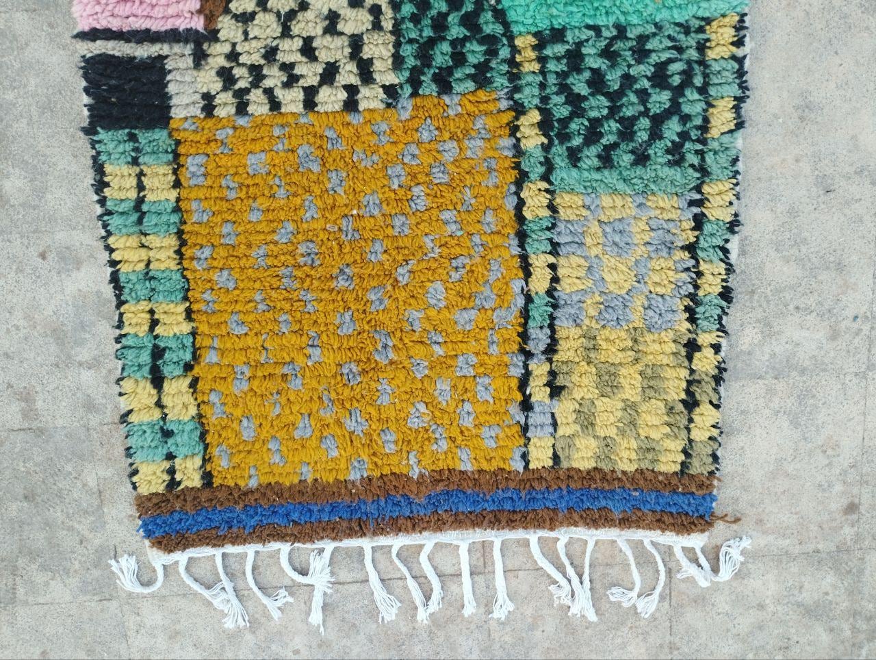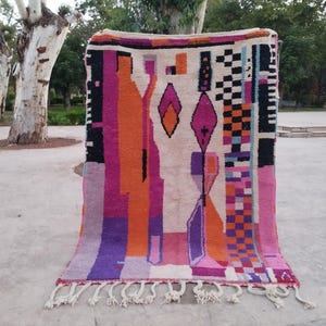 A Moroccan Berber colorful rug, like the ones from rugaziz, is a traditional, hand made carpet that’s created by the indigenous Berber people of Morocco. These authentic rugs, including the sought-after moroccan boujaad rug and vintage boujaad rug, are famous for their intricate patterns and bold, geometric designs produced with natural dyes and high-quality wool. Whether you choose a peach moroccan rug or a fluffy colorful rug, you’ll enjoy a unique touch of Beni boho moroccan carpet Handmade Wool, beni ourain 5x8 character in any space.