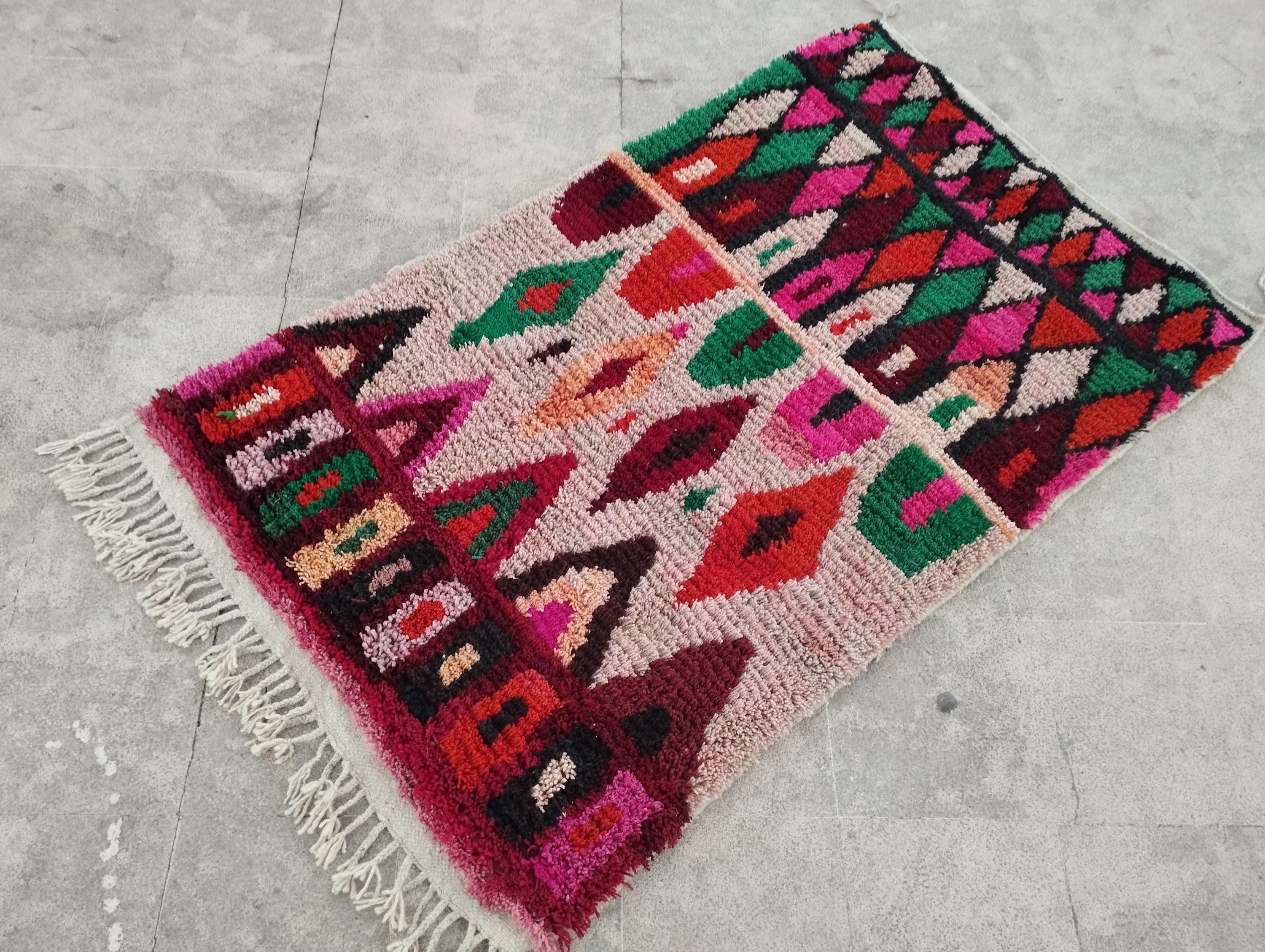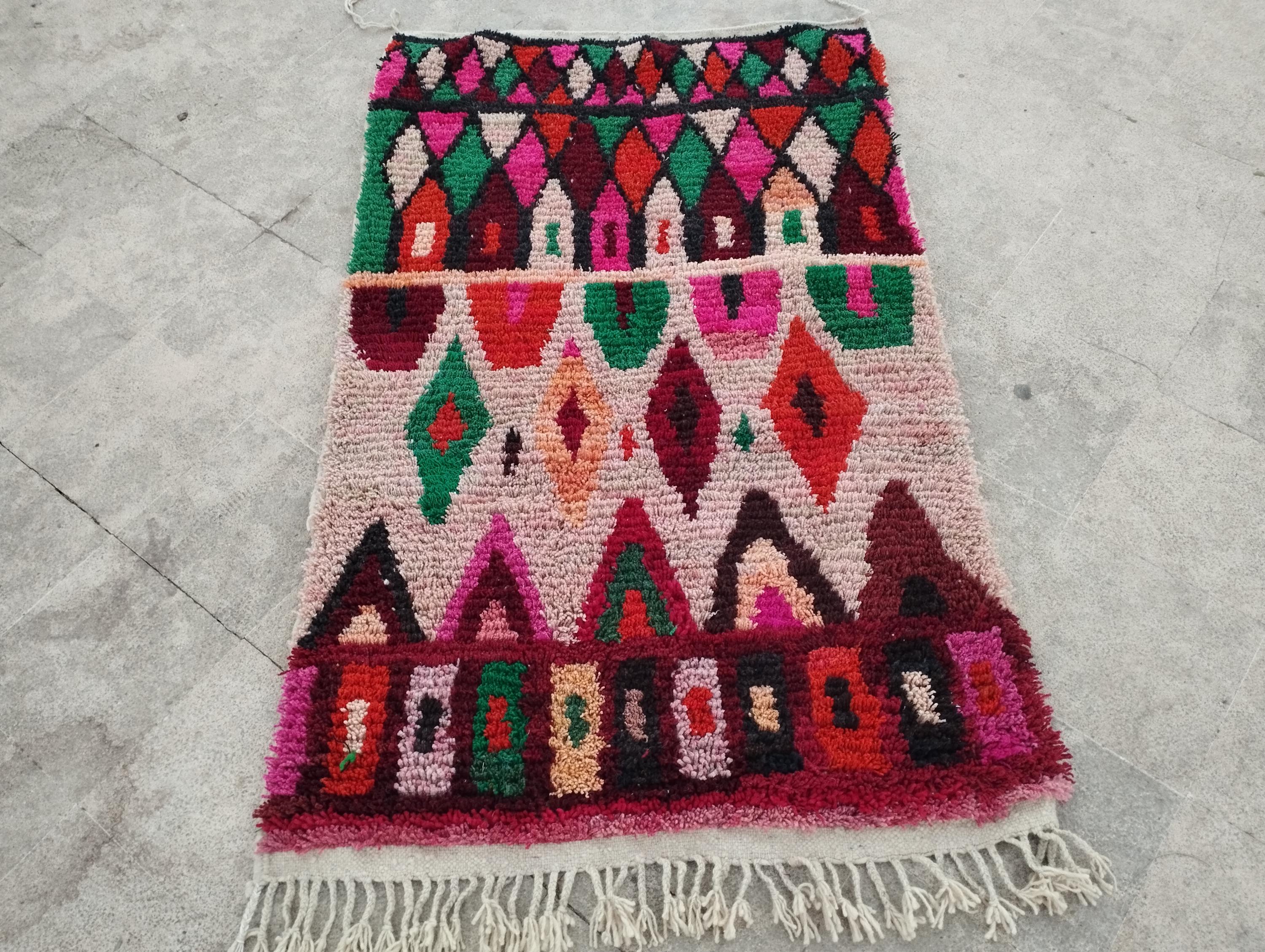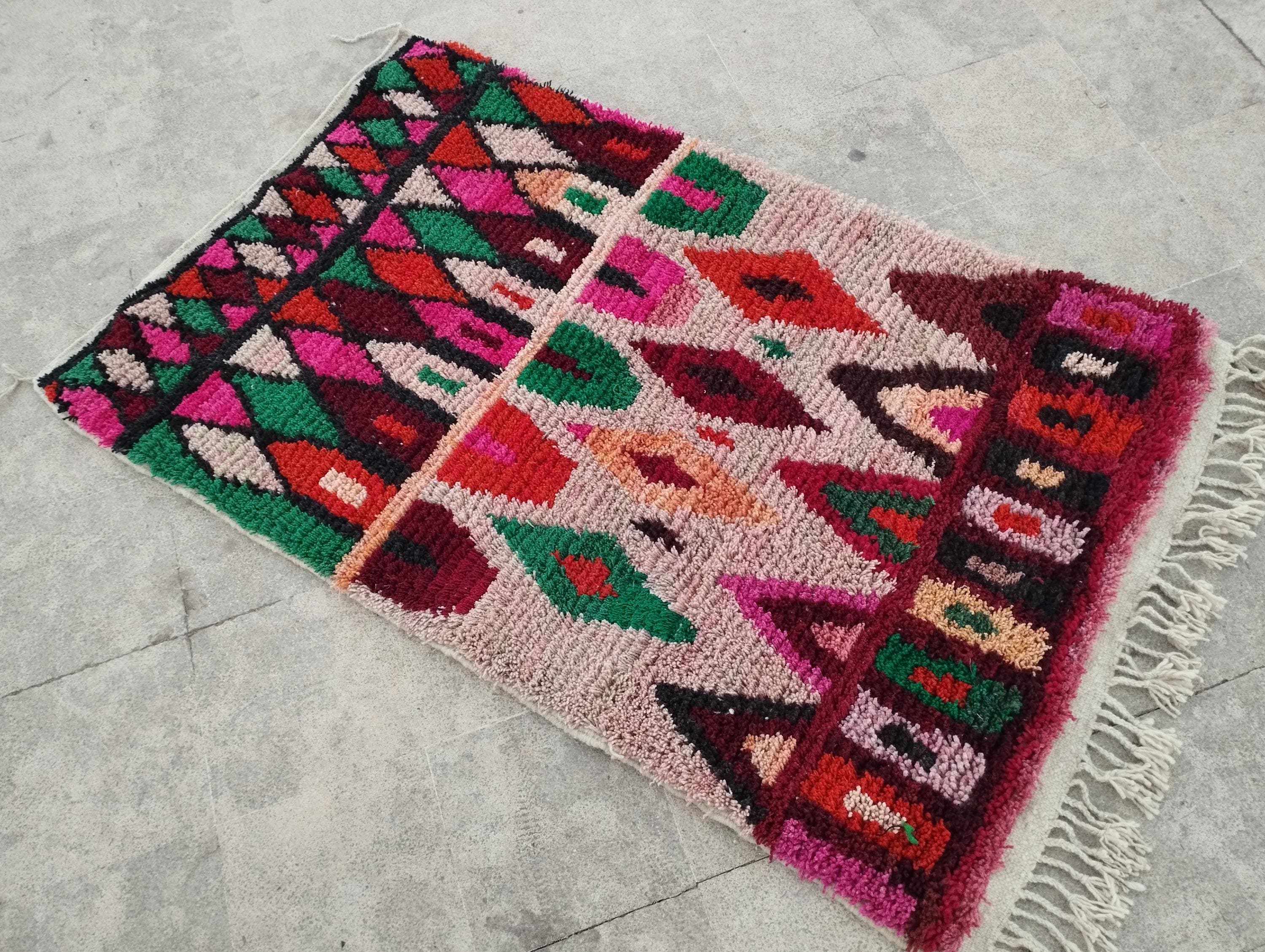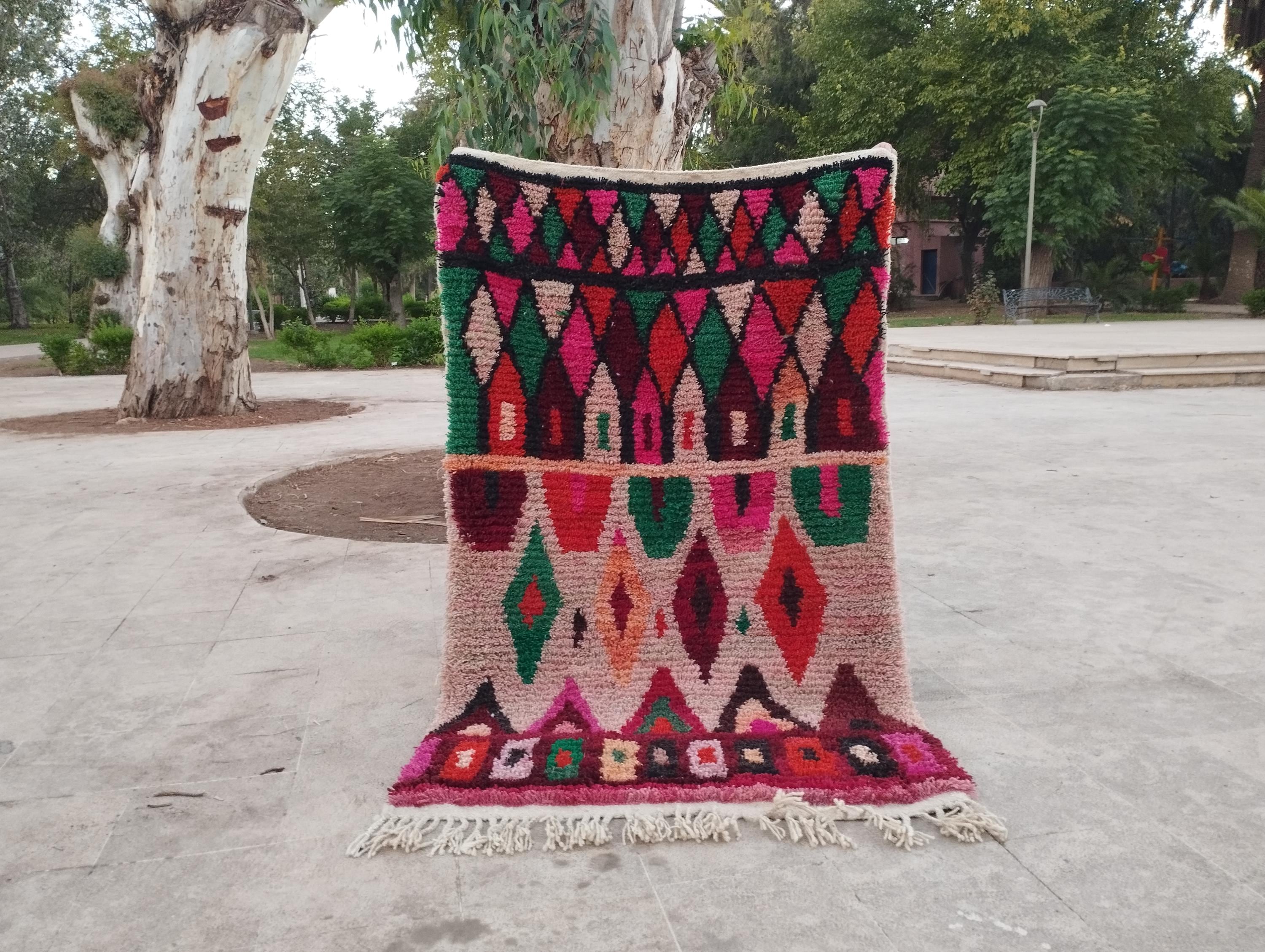 A tapis marocain, like this colorful Moroccan Berber rug, brings tradition and authentic craftsmanship to your home. Handwoven by the indigenous Berber people of Morocco, each morrocan rug showcases intricate patterns, bold geometric designs, and vibrant color — achieved through a mix of natural dyes and high-quality wool. Whether you’re seeking a classic beniourain rug, an abstract runner with unique visual interest, a soft moroccan shag rug, or even a washable runner rug for practical living, these pieces have you covered.Modern morocco rug boho boujaad rug