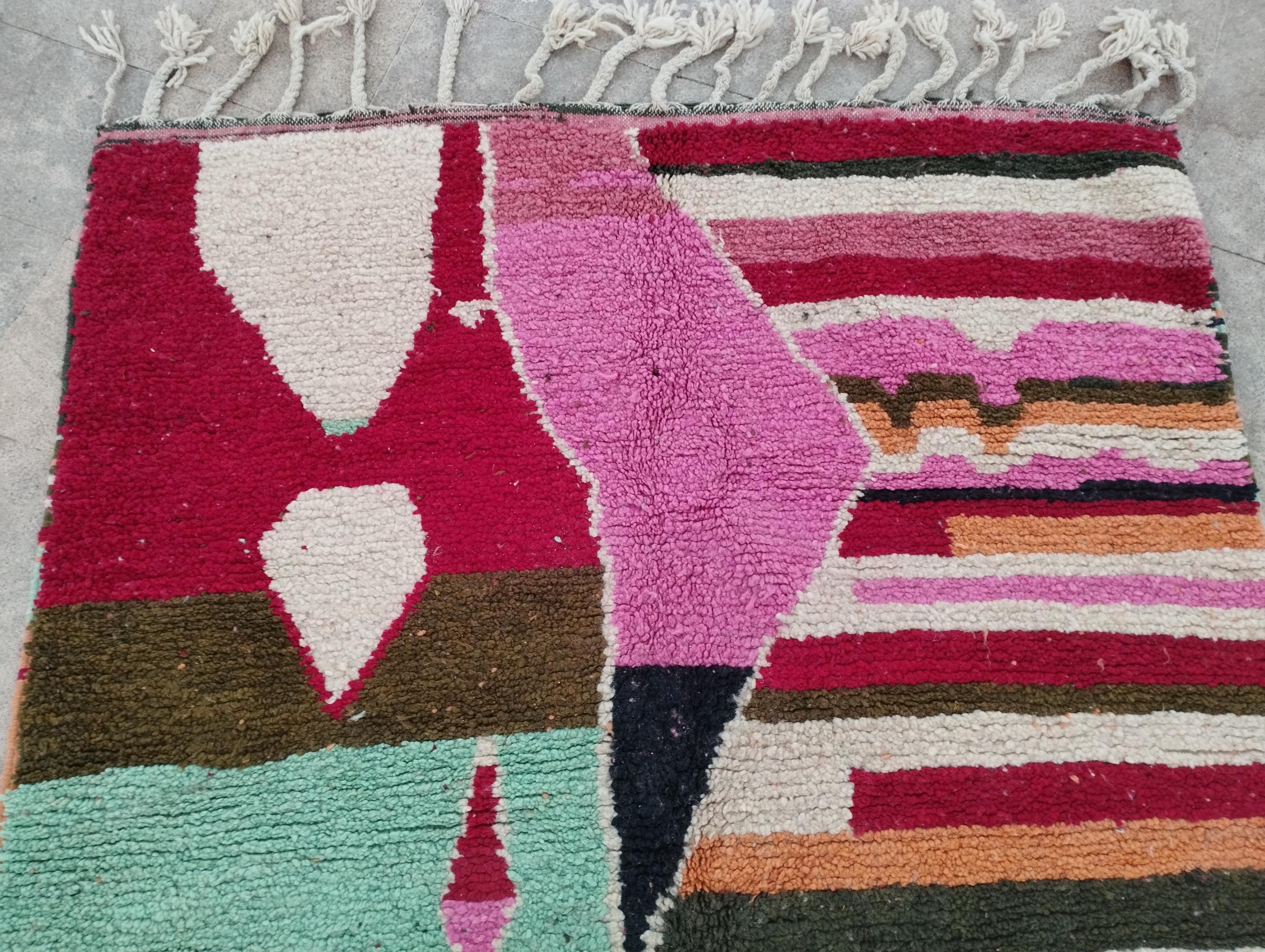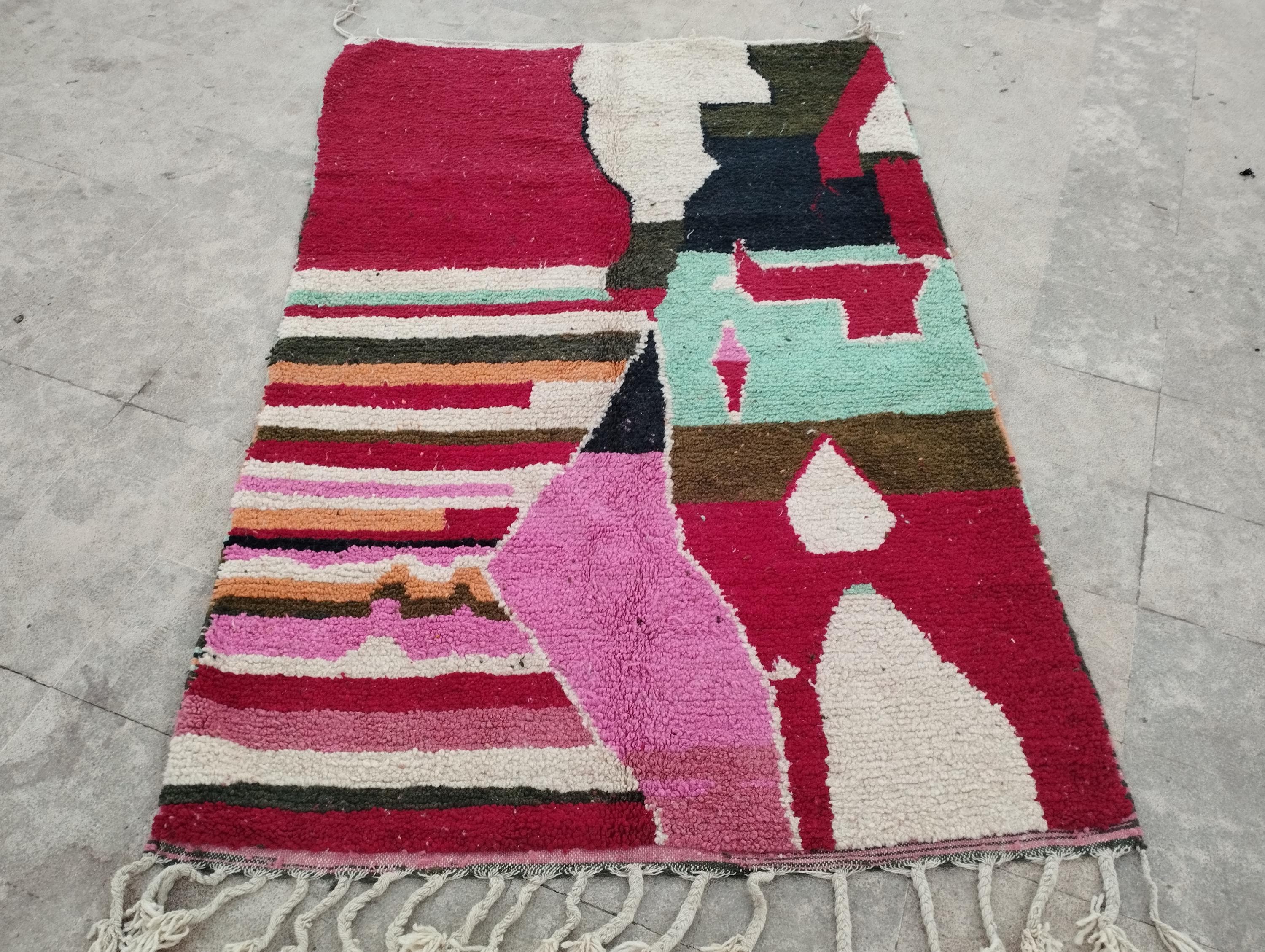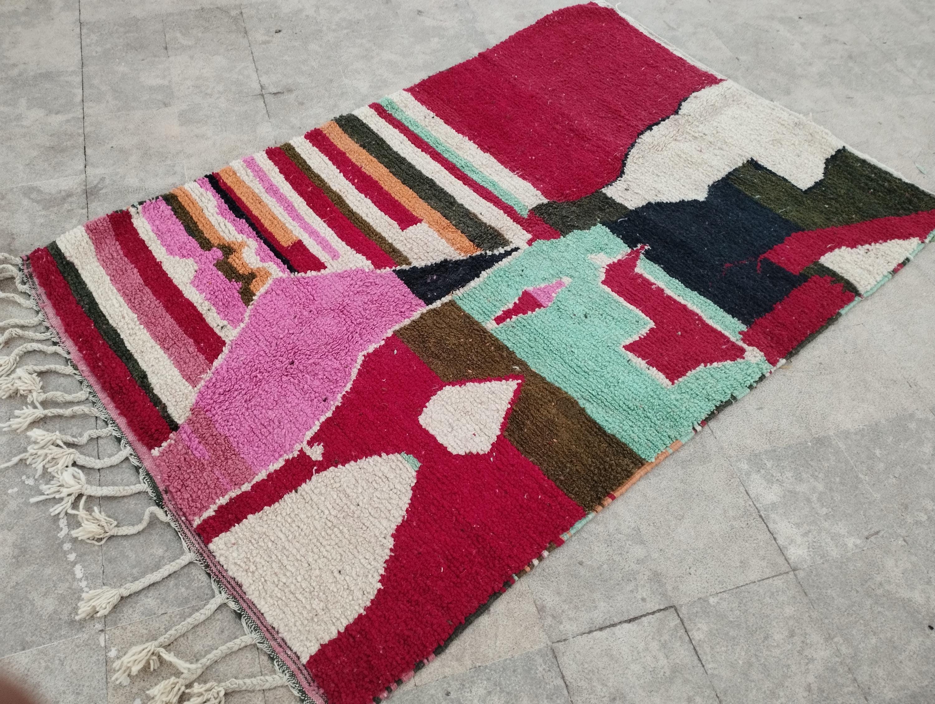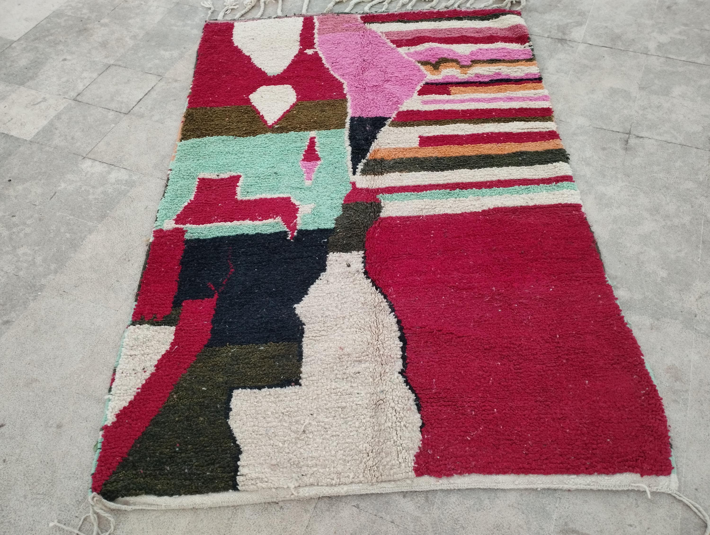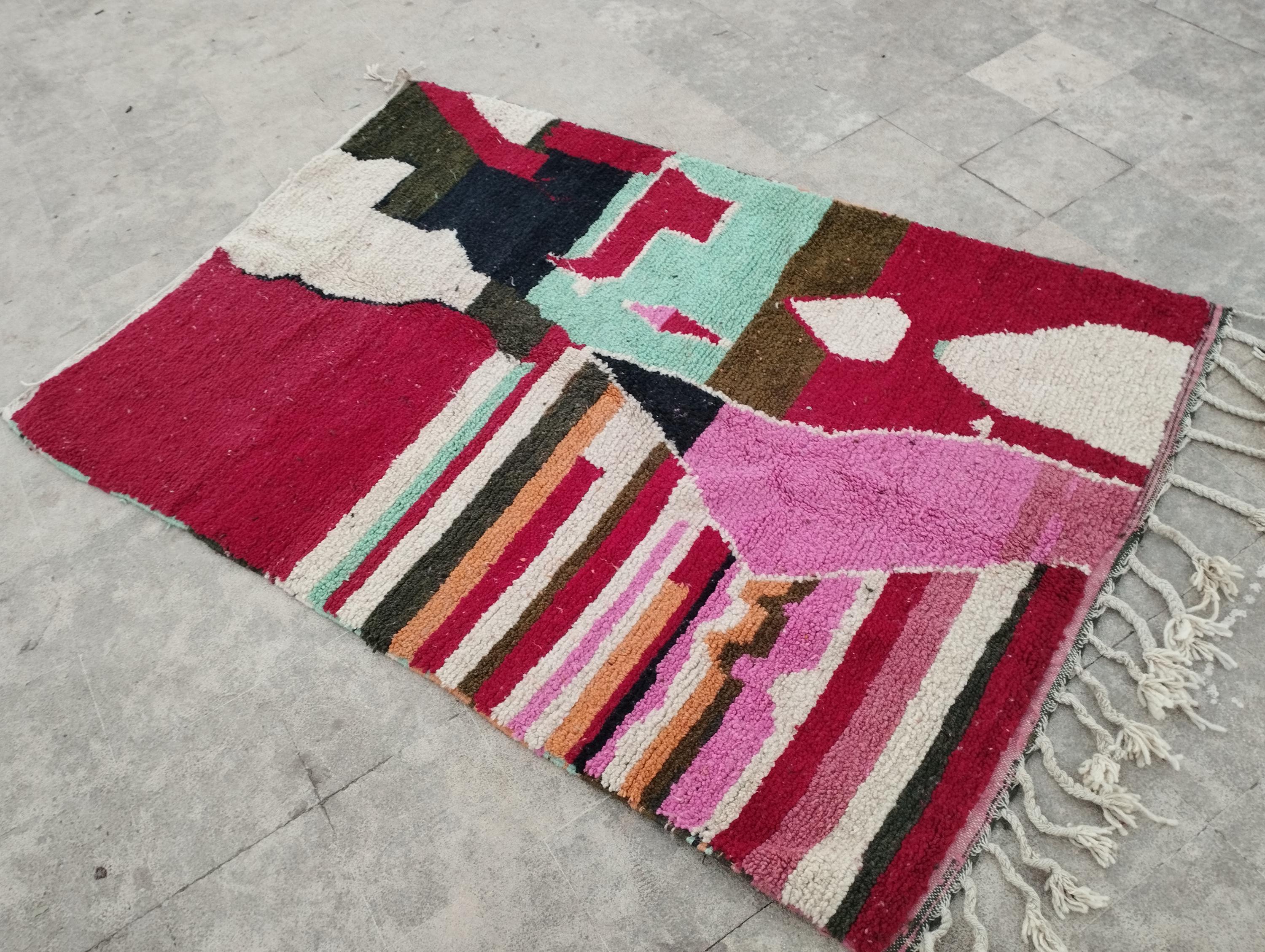A tapis marocain, like this colorful Moroccan Berber rug, brings tradition and authentic craftsmanship to your home. Handwoven by the indigenous Berber people of Morocco, each morrocan rug showcases intricate patterns, bold geometric designs, and vibrant color — achieved through a mix of natural dyes and high-quality wool. Whether you’re seeking a classic beniourain rug, an abstract runner with unique visual interest, a soft moroccan shag rug, or even a washable runner rug for practical living, these pieces have you covered. Large red Moroccan Handmade carpet