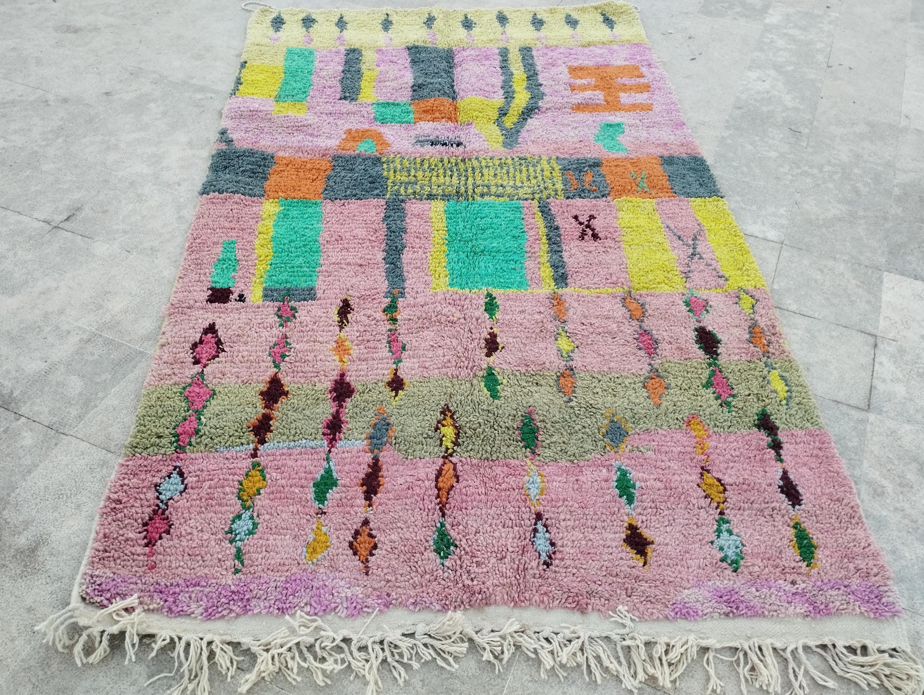 A tapis marocain, like this colorful Moroccan Berber rug, brings tradition and authentic craftsmanship to your home. Handwoven by the indigenous Berber people of Morocco, each morrocan rug showcases intricate patterns, bold geometric designs, and vibrant color — achieved through a mix of natural dyes and high-quality wool. Whether you’re seeking a classic beniourain rug, an abstract runner with unique visual interest, a soft moroccan shag rug, or even a washable runner rug for practical living, these pieces have you covered.handmade rug berber decor,natural wool rug living room rug