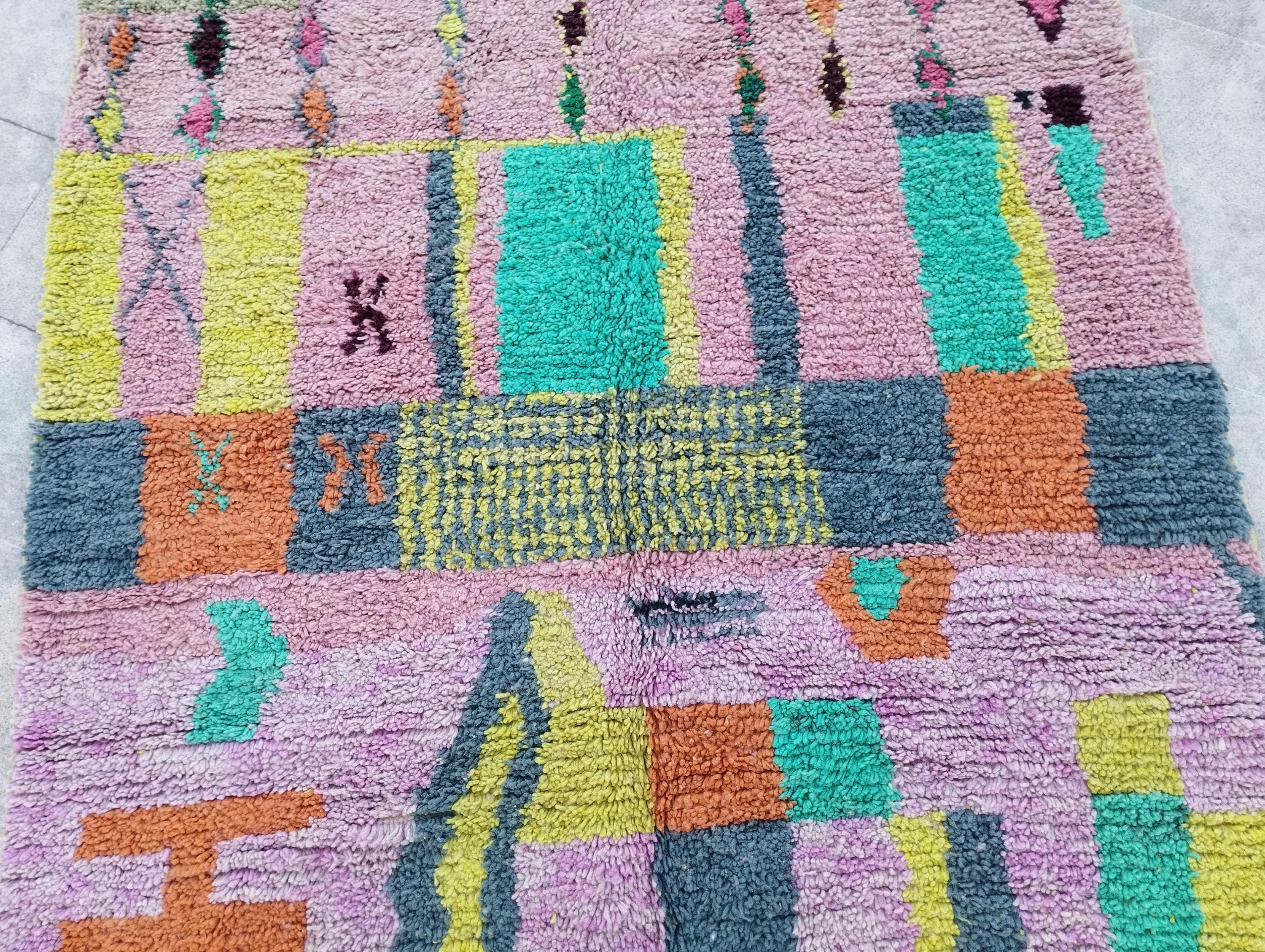Your rug will ship tightly rolled in protective packaging; any creasing will smooth out after a few days, and some initial shedding is normal (regular vacuuming helps). If you have questions about finding the ideal tapis marocain, beniourain rug, moroccan runner, abstract runner, azilal rug, boucherouite, pink runner rug, pastel moroccan rug, berber runner, or any washable moroccan rug runner style, please feel free to message me,boho Modern decor berber
