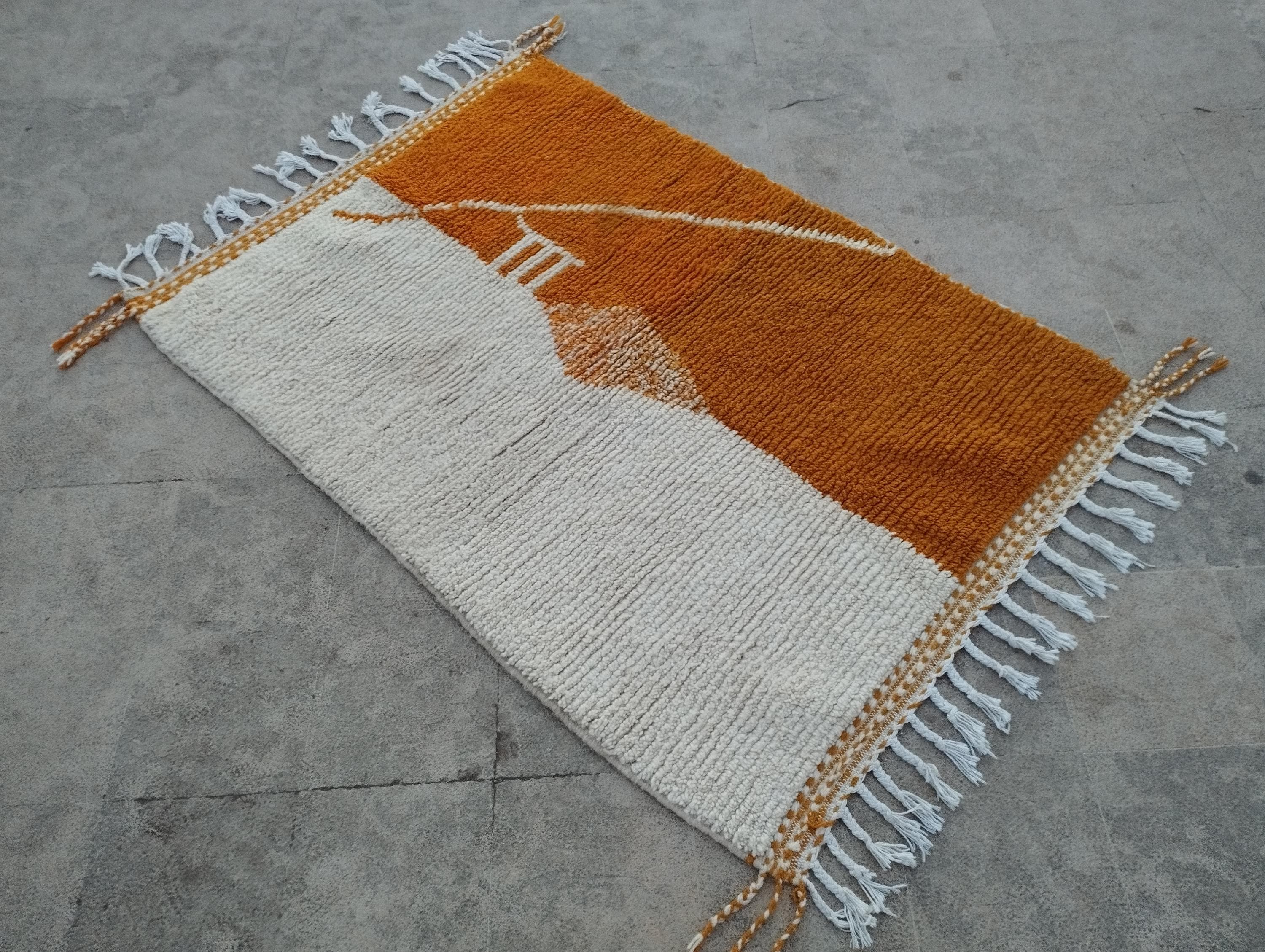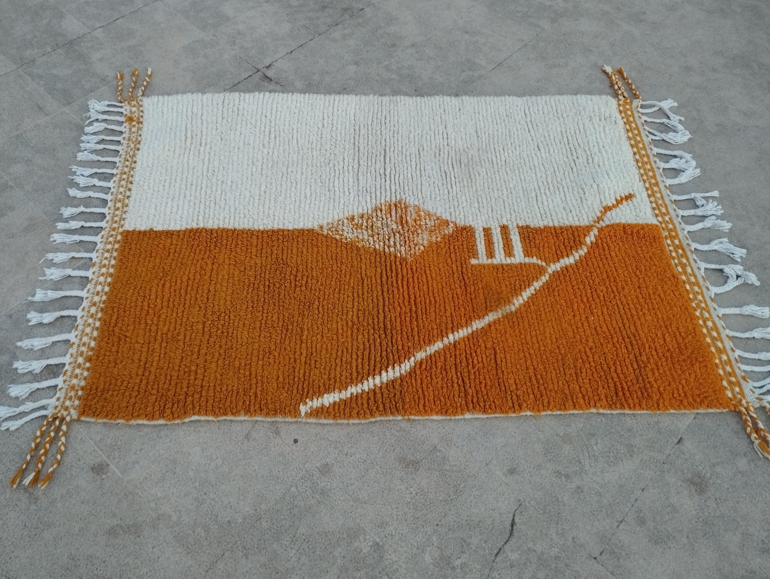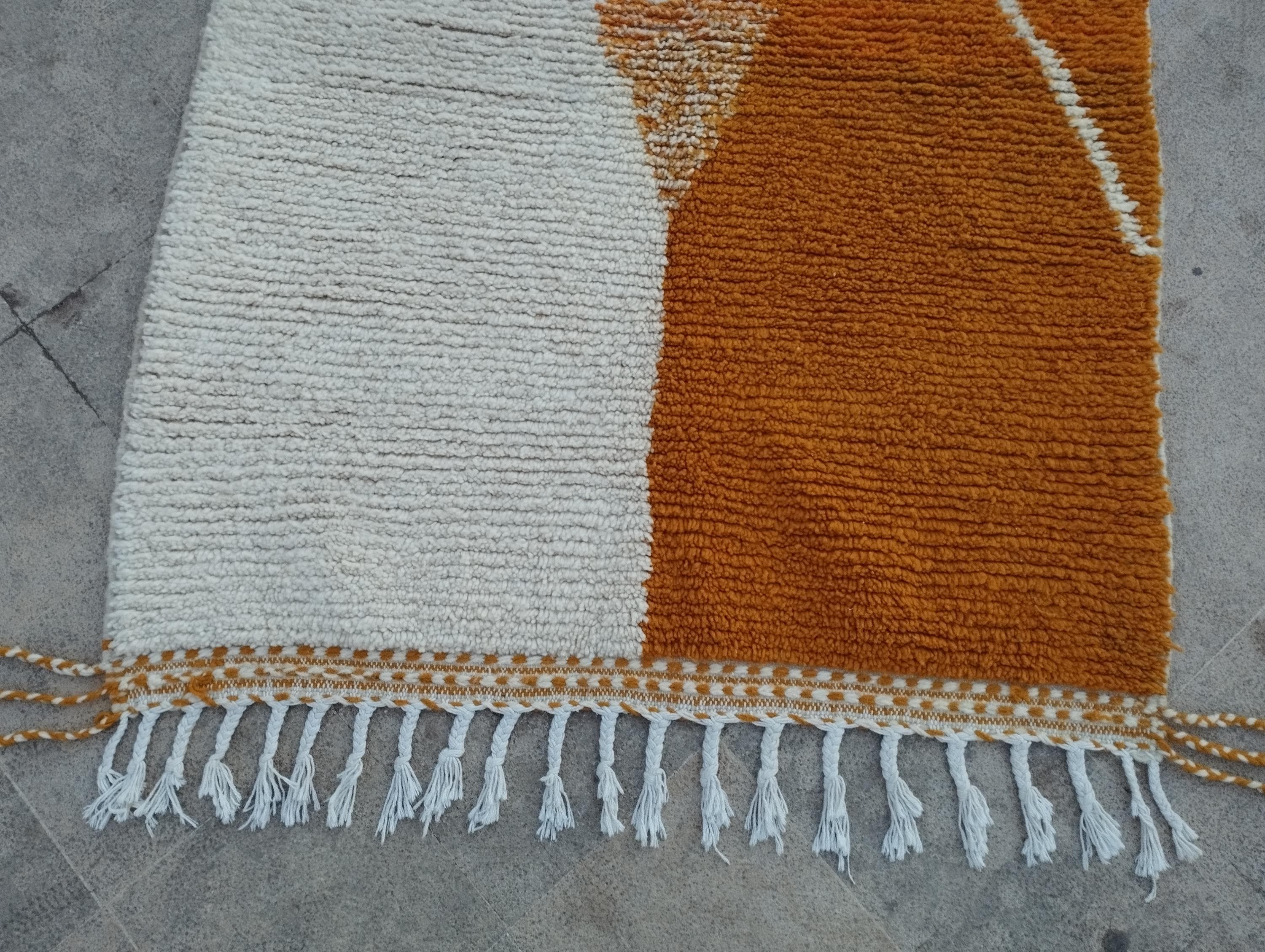 These rugs are meticulously handmade from natural wool, making each one-of-a-kind. Since every piece is handcrafted, you may notice small variations in pattern and color – these make your moroccan rug even more special. Final sizes may differ by a few inches more or less, and traditional rug tassels are added on one side for an authentic finish.wool beni ourain rug