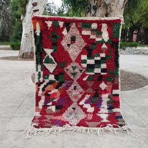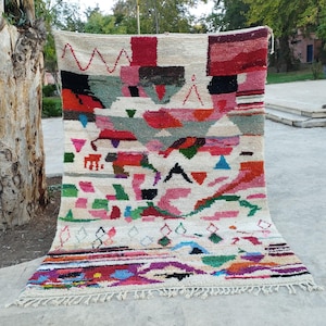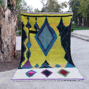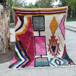 A rugaziz Moroccan Berber colorful rug is a traditional handwoven floor covering that originates from the indigenous Berber people of Morocco. Each artisan rug stands out with its intricate patterns and bold, geometric designs, created using a variety of natural dyes and high-quality wool. These pieces can be ordered as a custom Morrocan rug, allowing you to bring home a one-of-a-kind work of art.