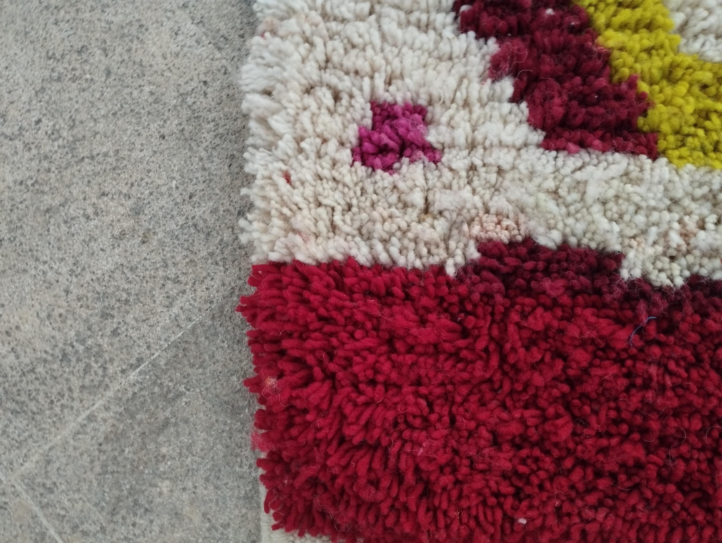Your rug will ship tightly rolled in protective packaging; any creasing will smooth out after a few days, and some initial shedding is normal (regular vacuuming helps). If you have questions about finding the ideal tapis marocain, beniourain rug, moroccan runner, abstract runner, azilal rug, boucherouite, pink runner rug, pastel moroccan rug, berber runner, or any washable moroccan rug runner style, please feel free to message me,