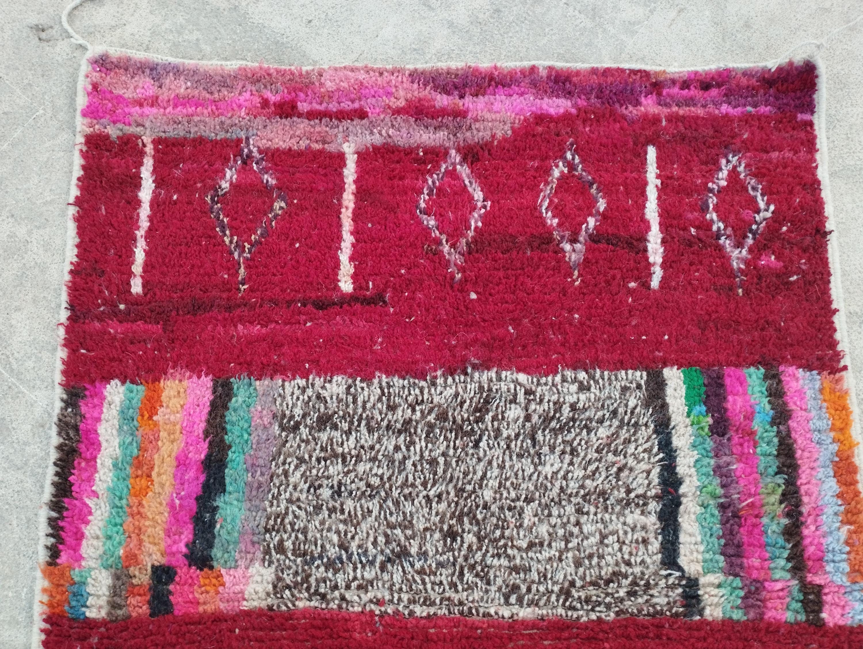 Handmade Red Moroccan Wool Rug, Small Berber Entrance Carpet