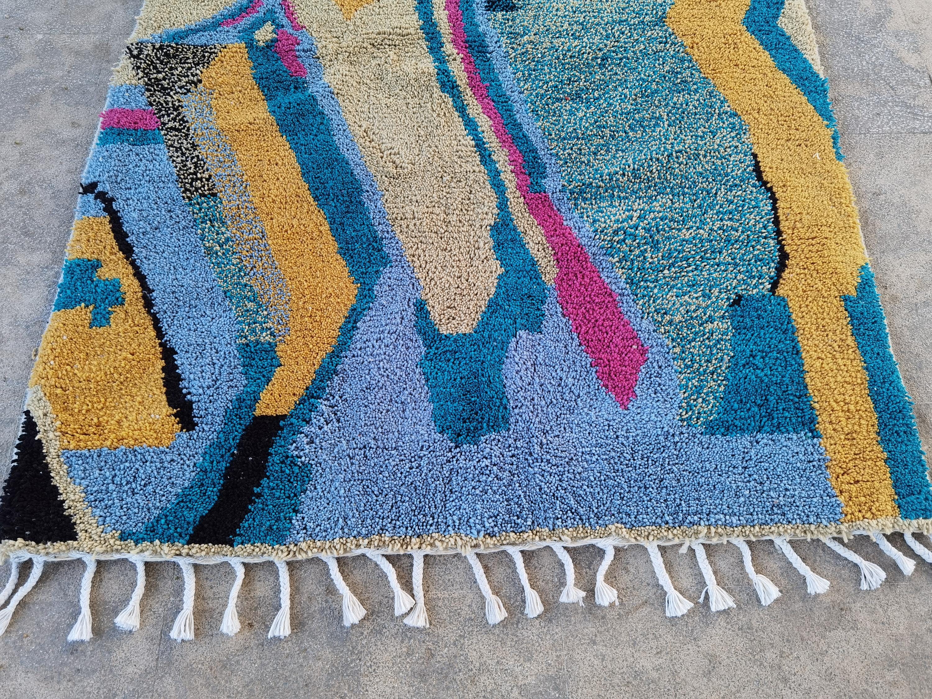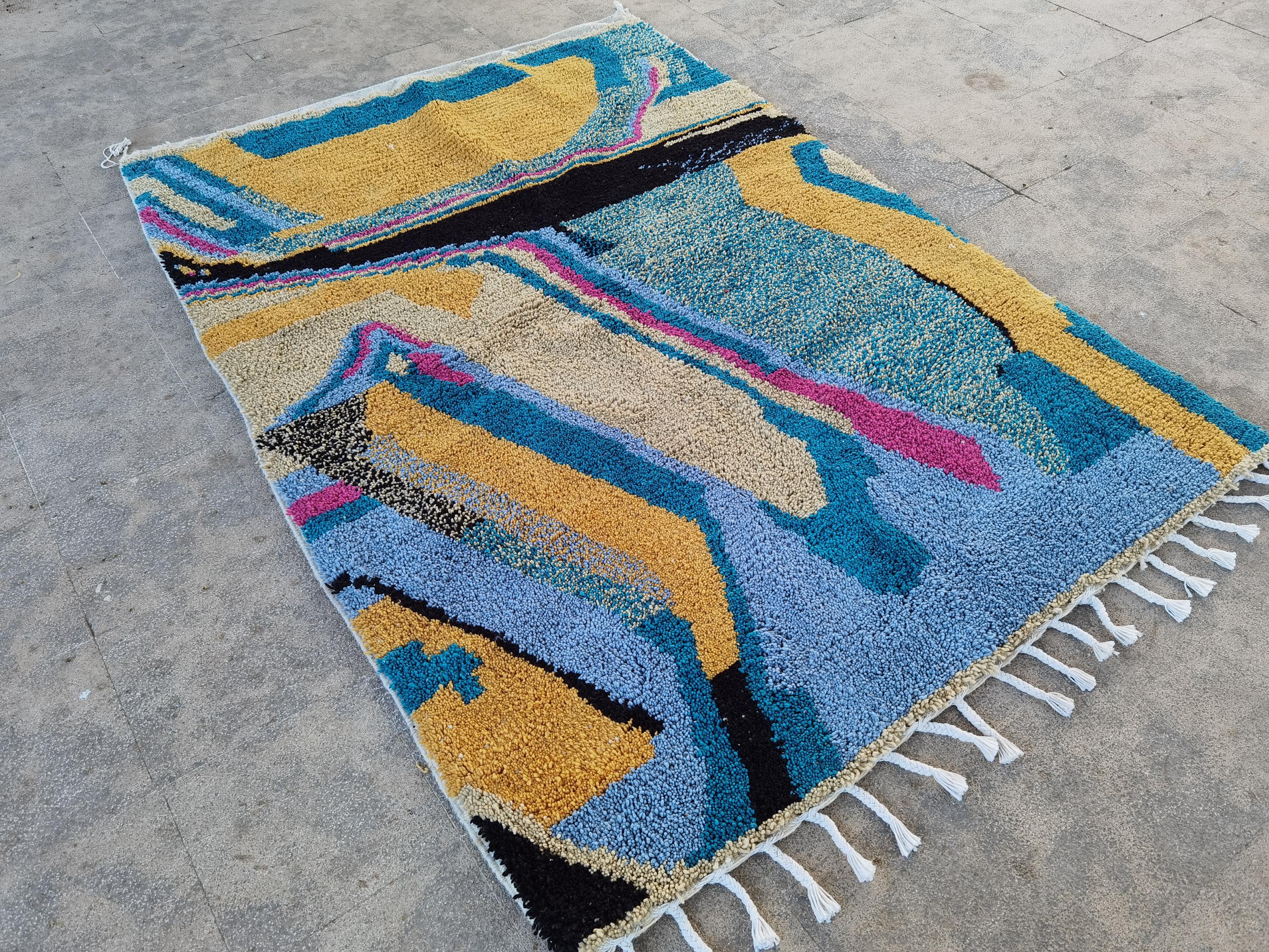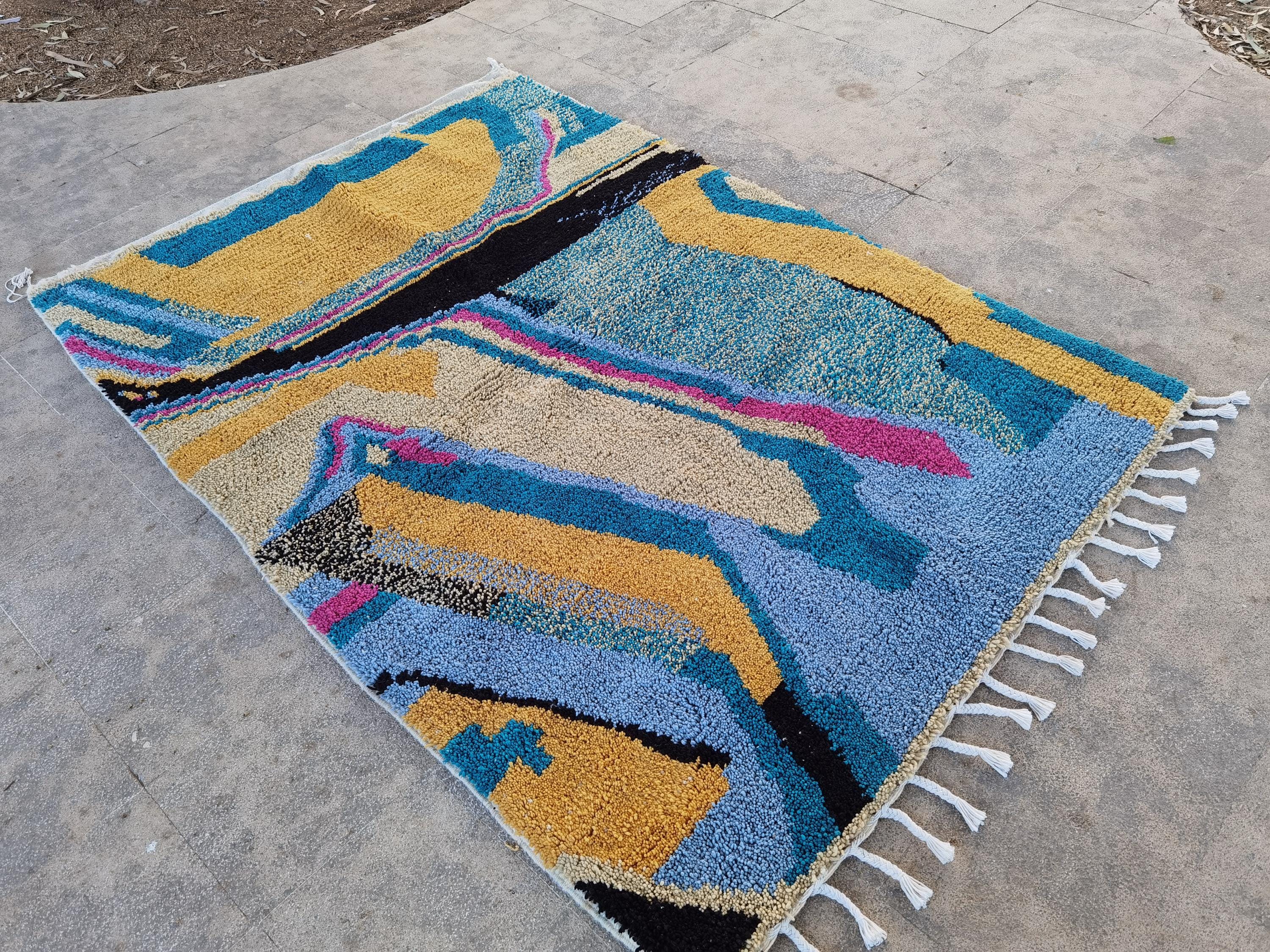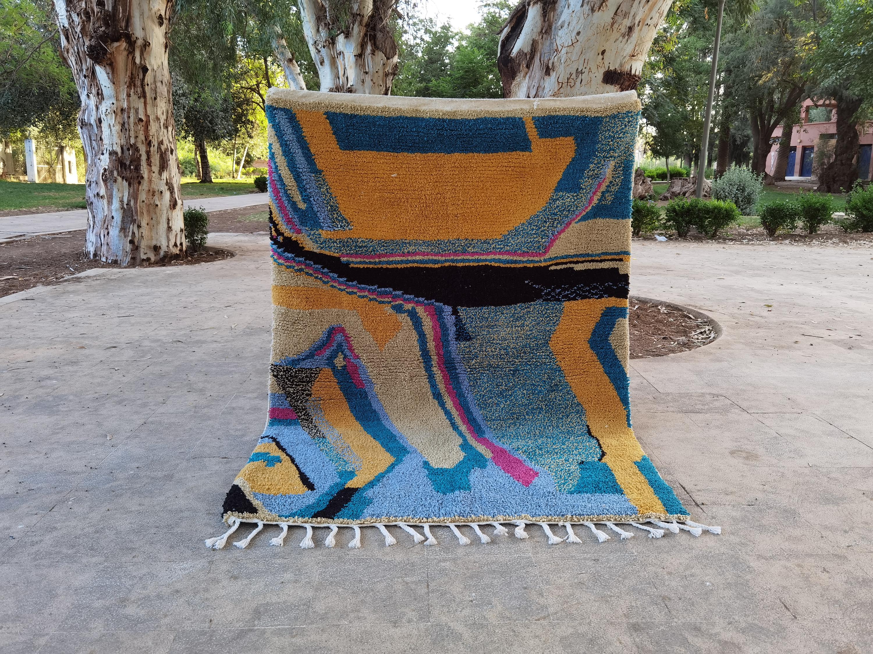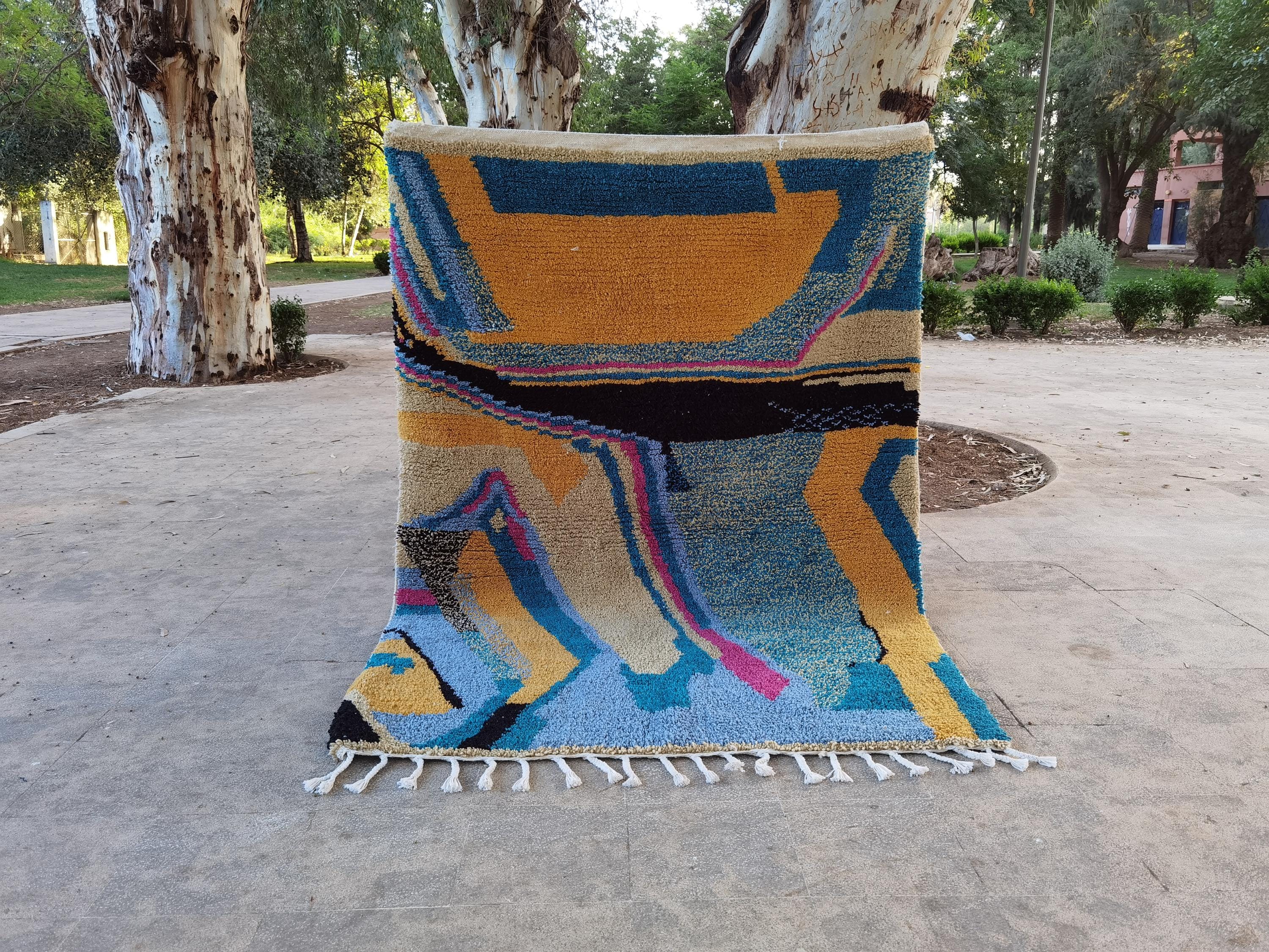 Our beni ourain rug design brings a cozy and timeless boho rug vibe to any room. The handmade rug is soft and durable, making it a practical addition to high-traffic areas and ideal for all indoor spaces. Every wool rug is constructed with care, embracing slight variations in pattern and color for a truly unique piece.red multi-color rug